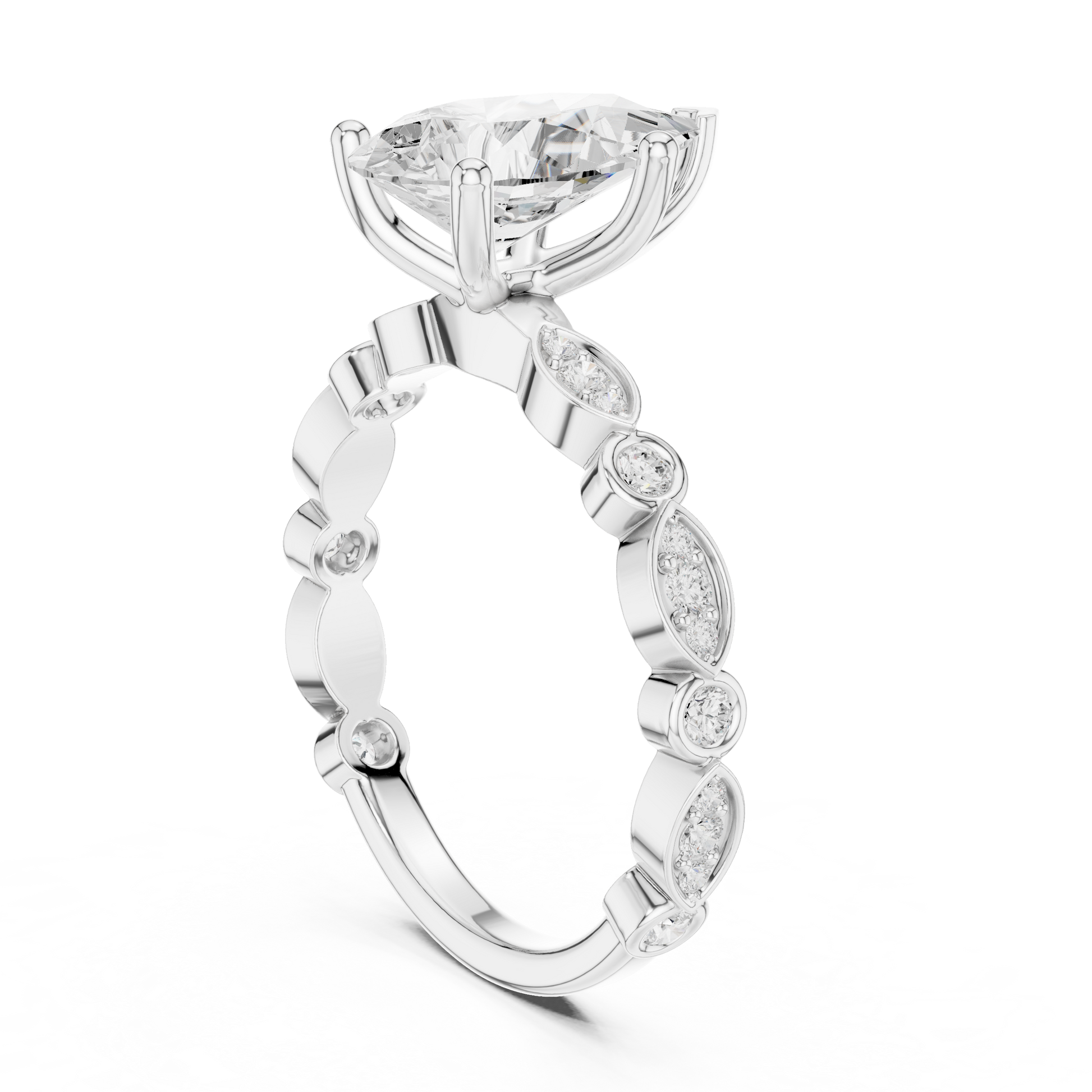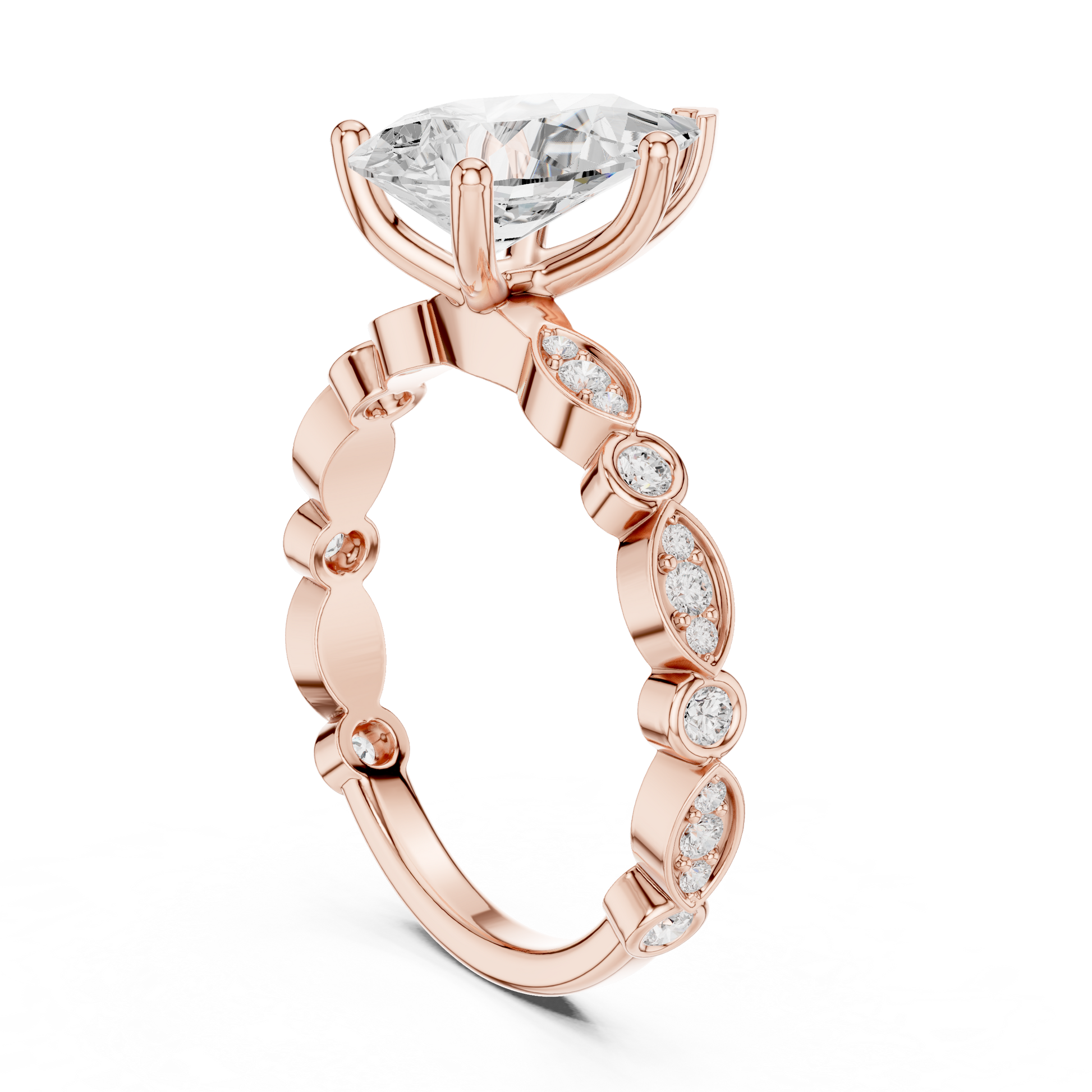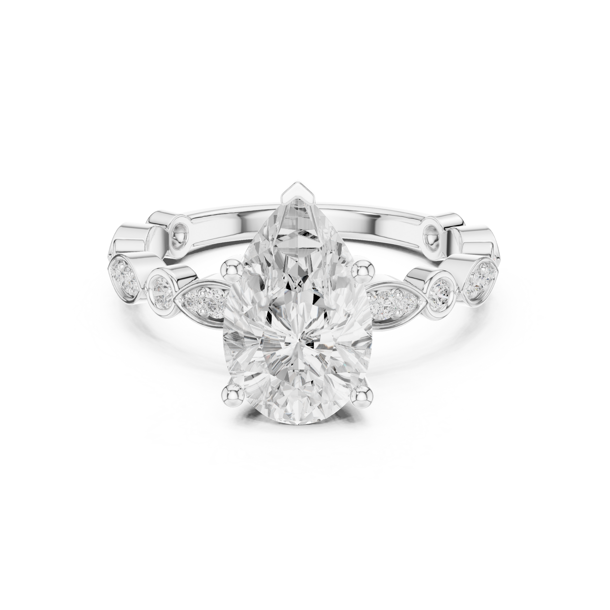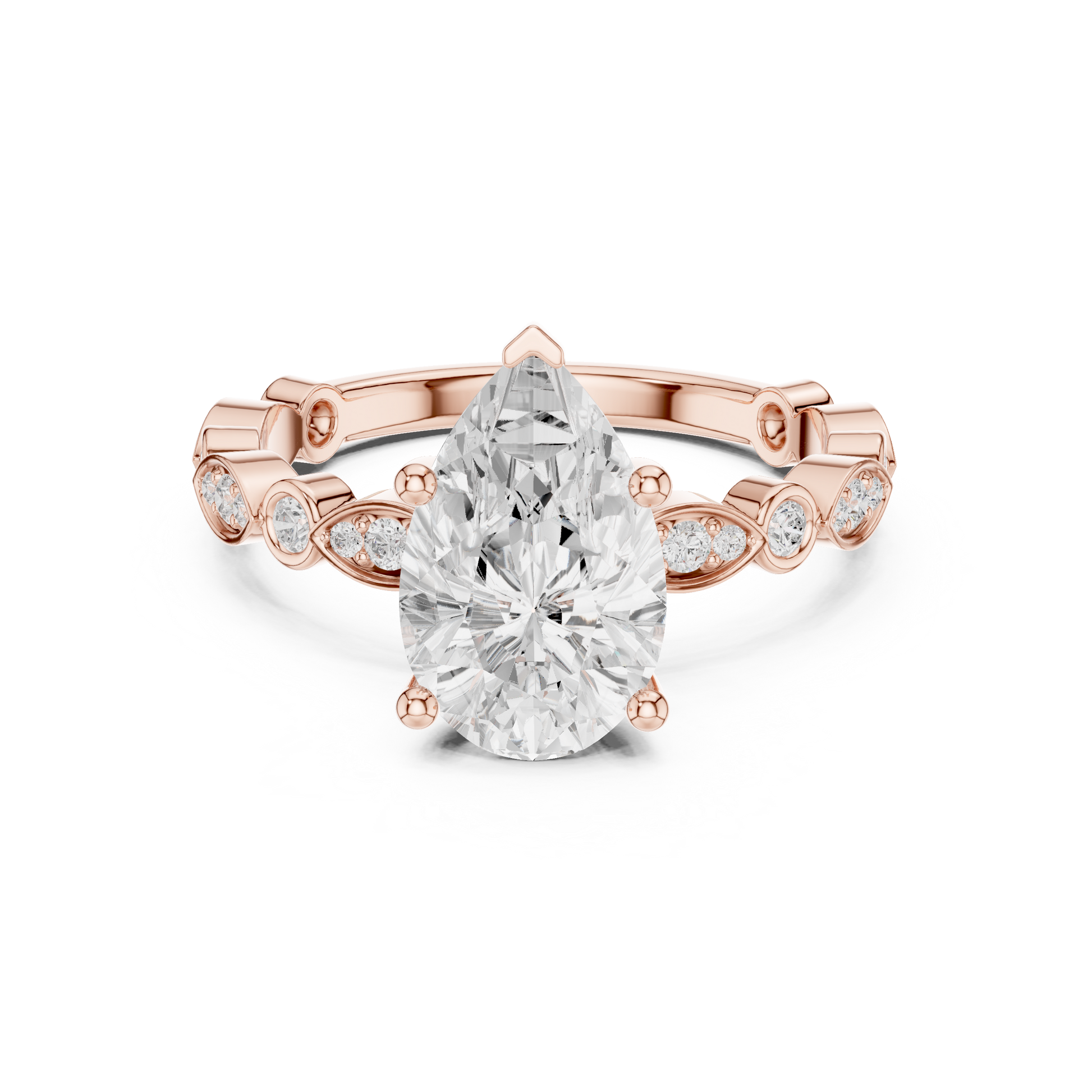 2.00 CT Vintage Inspired Pear Cut Solitaire Lab Grown Ring with Diamond Accented Gold Band