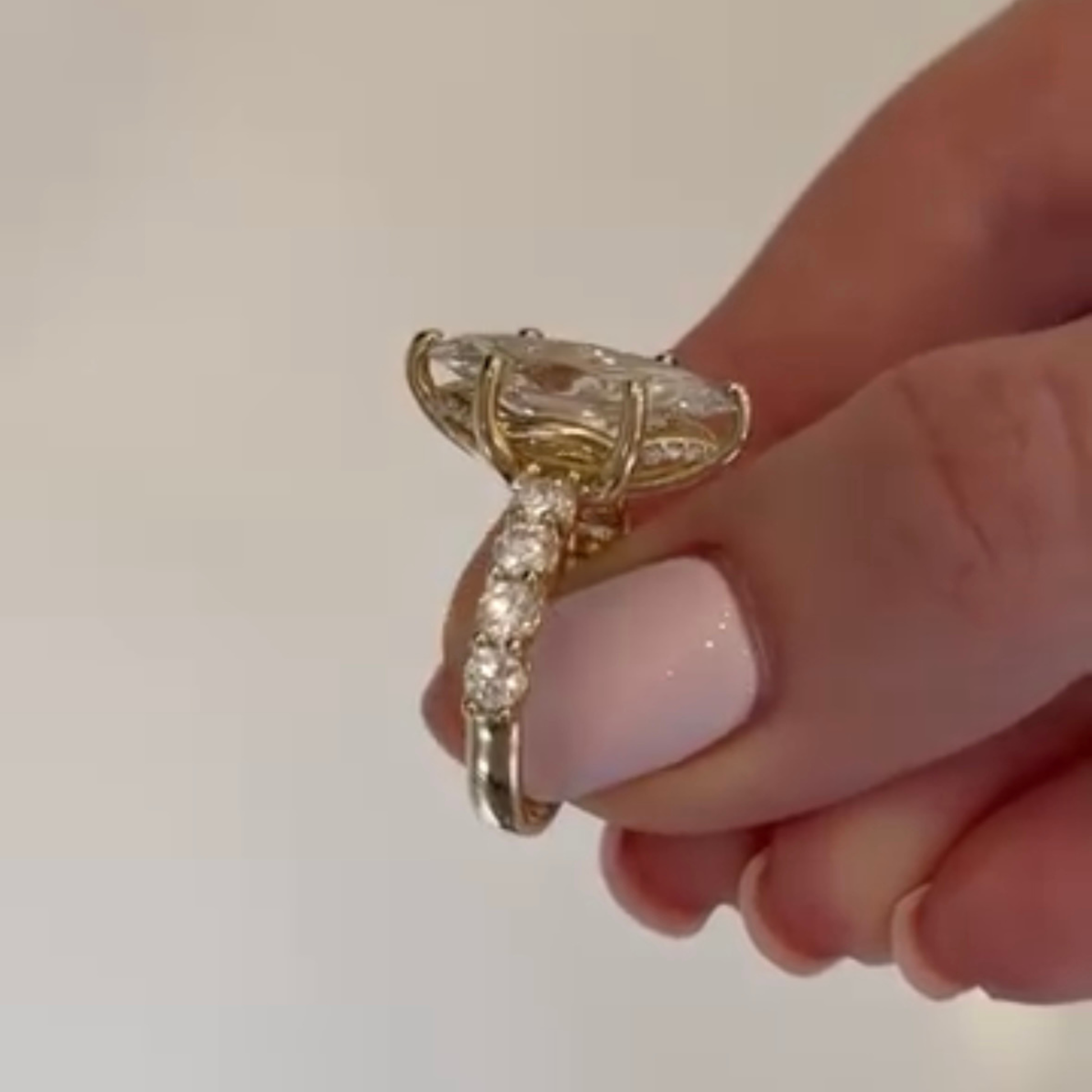This exquisite ring highlights a stunning marquise-cut diamond, celebrated for its elongated shape and captivating brilliance. Framed with delicate accent diamonds, the design enhances sparkle while adding a touch of vintage-inspired elegance. Set in a band with refined prong detailing, this ring offers a perfect balance of grace, luxury, and timeless beauty. A meaningful symbol of love, commitment, and individuality, designed to shine forever.