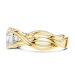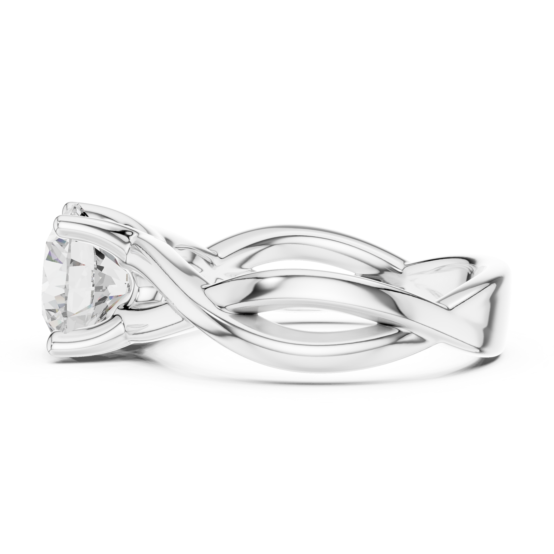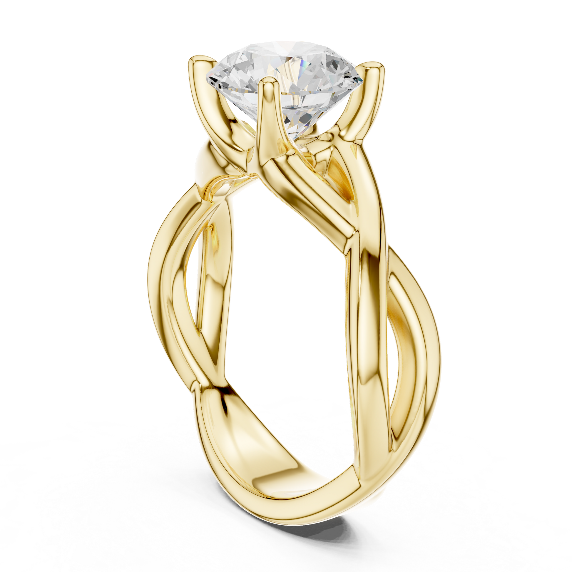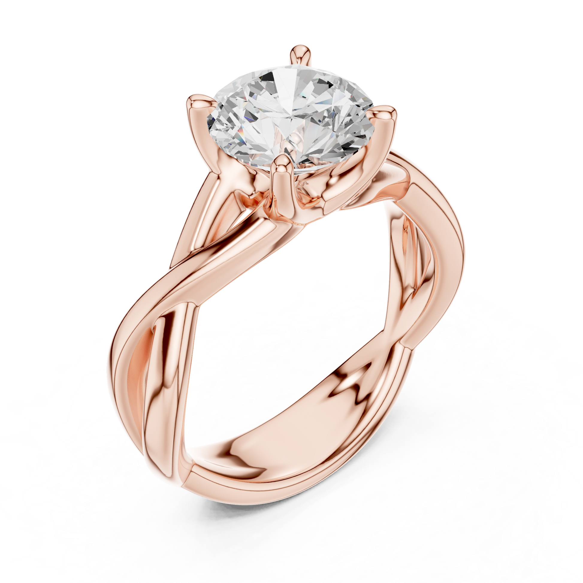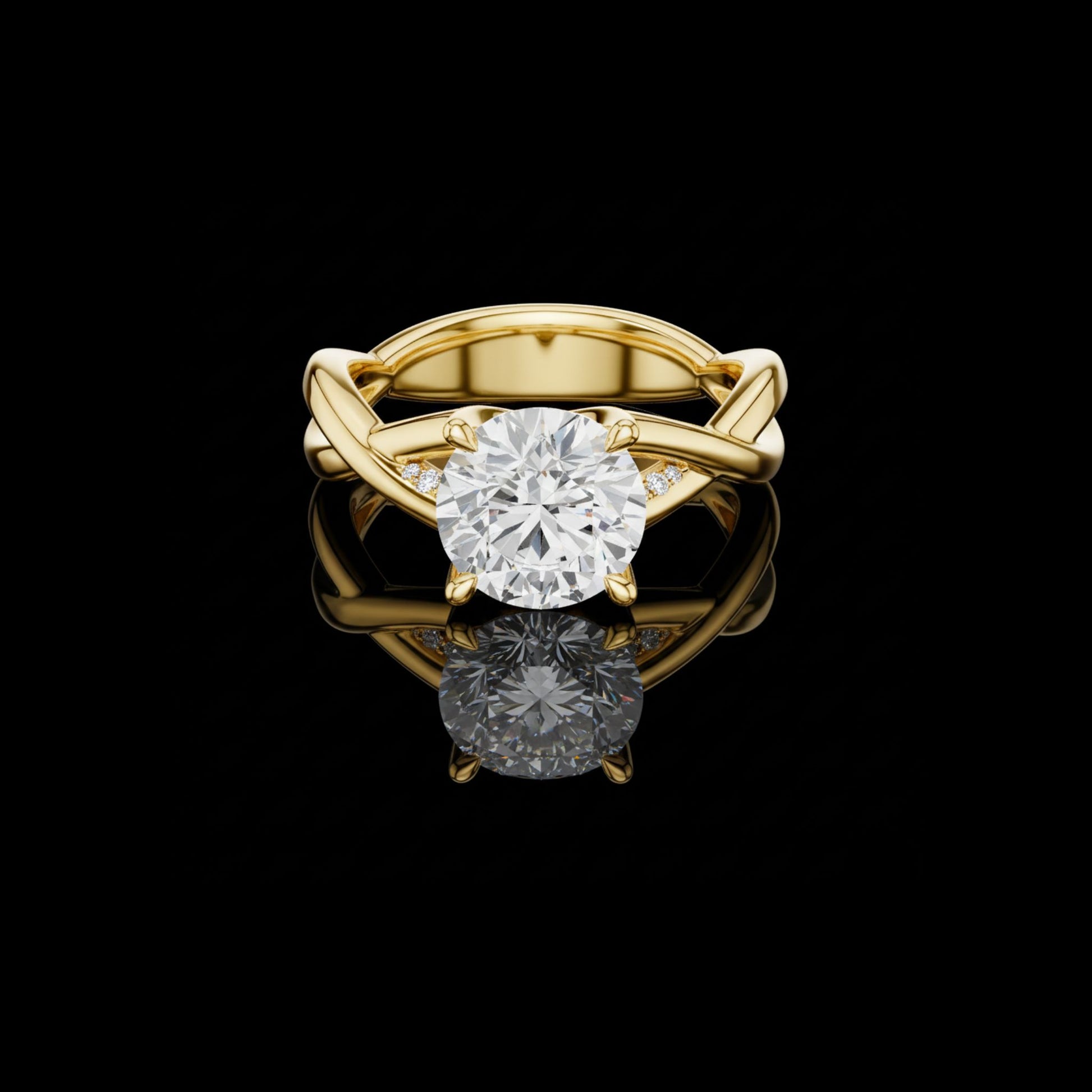 Experience modern elegance with this stunning round brilliant diamond solitaire ring, beautifully crafted in premium gold. The captivating twisted band design adds a unique artistic touch, enhancing the brilliance of the center round diamond. Subtle accent stones on the sides bring additional sparkle, making this ring a true symbol of luxury, fine craftsmanship, and timeless beauty. Perfect for engagements or anyone seeking premium handcrafted diamond jewelry with a sophisticated and contemporary look.
