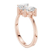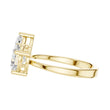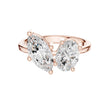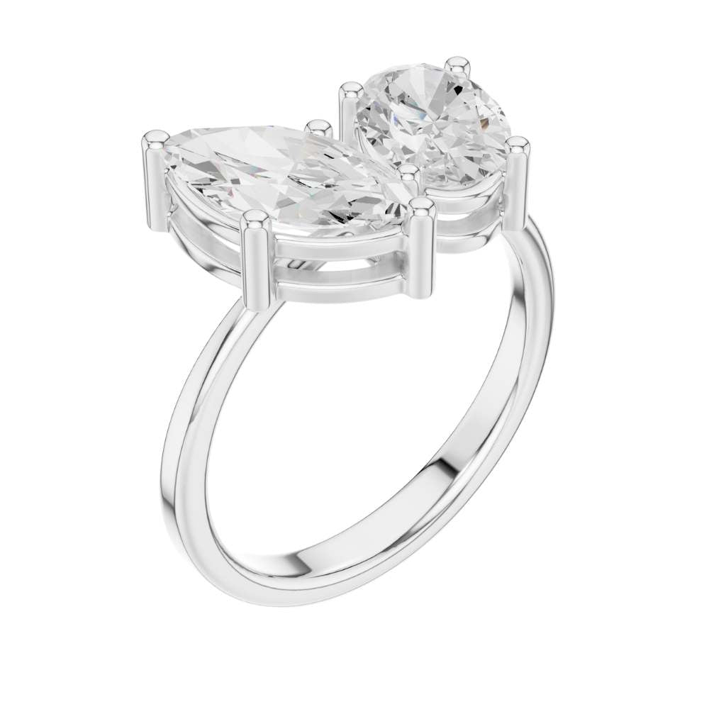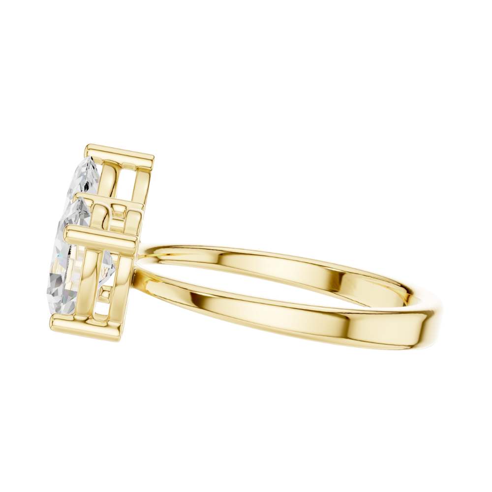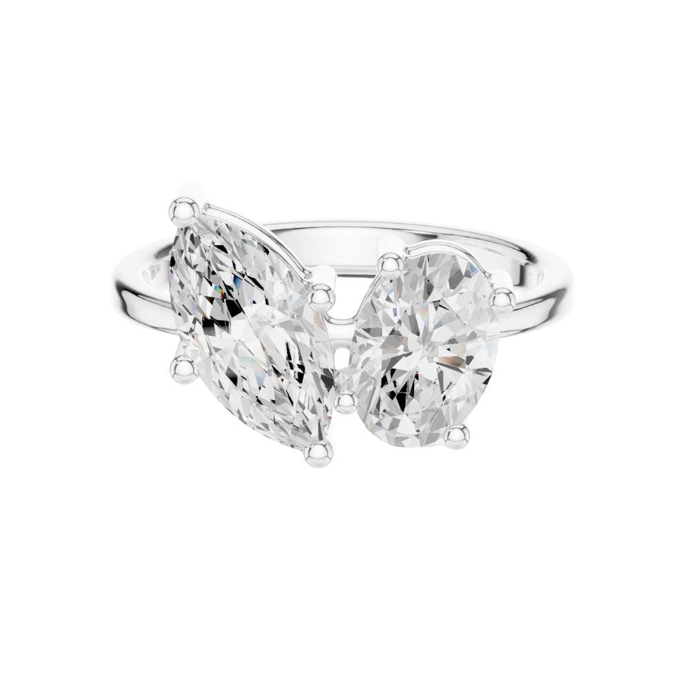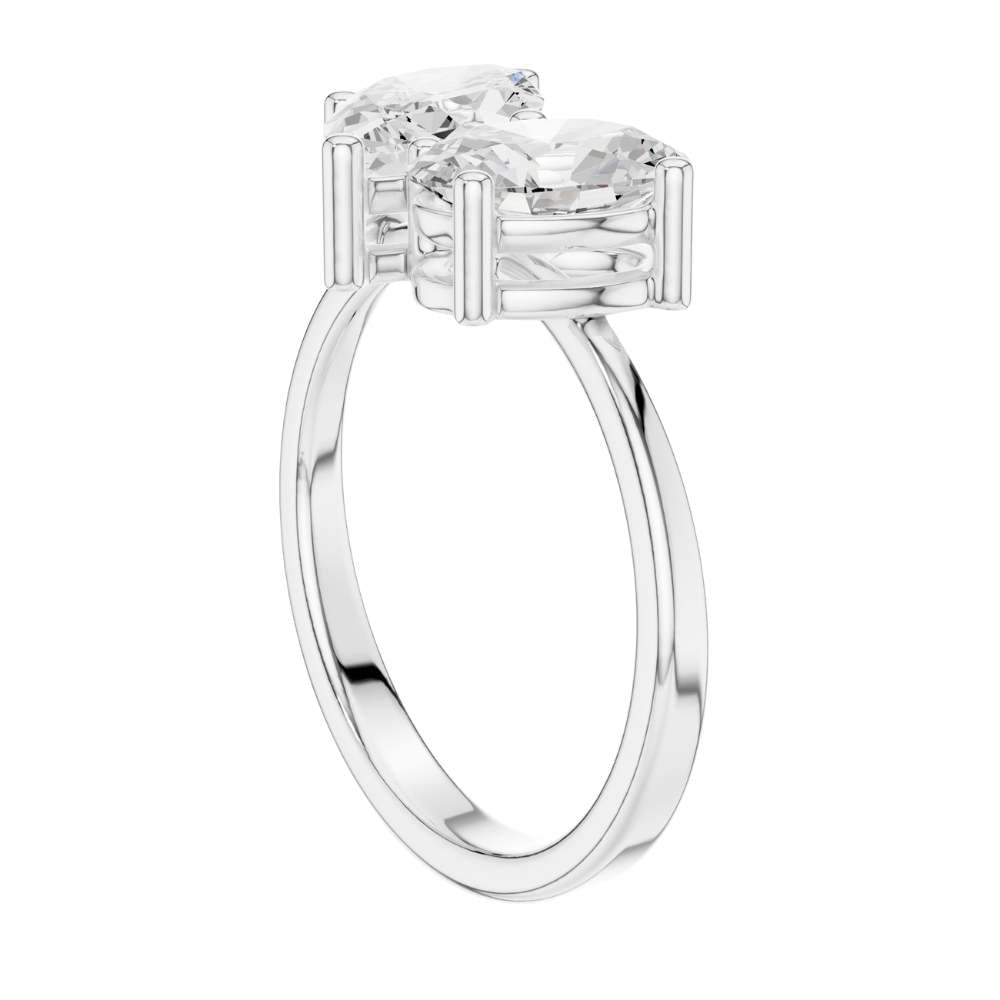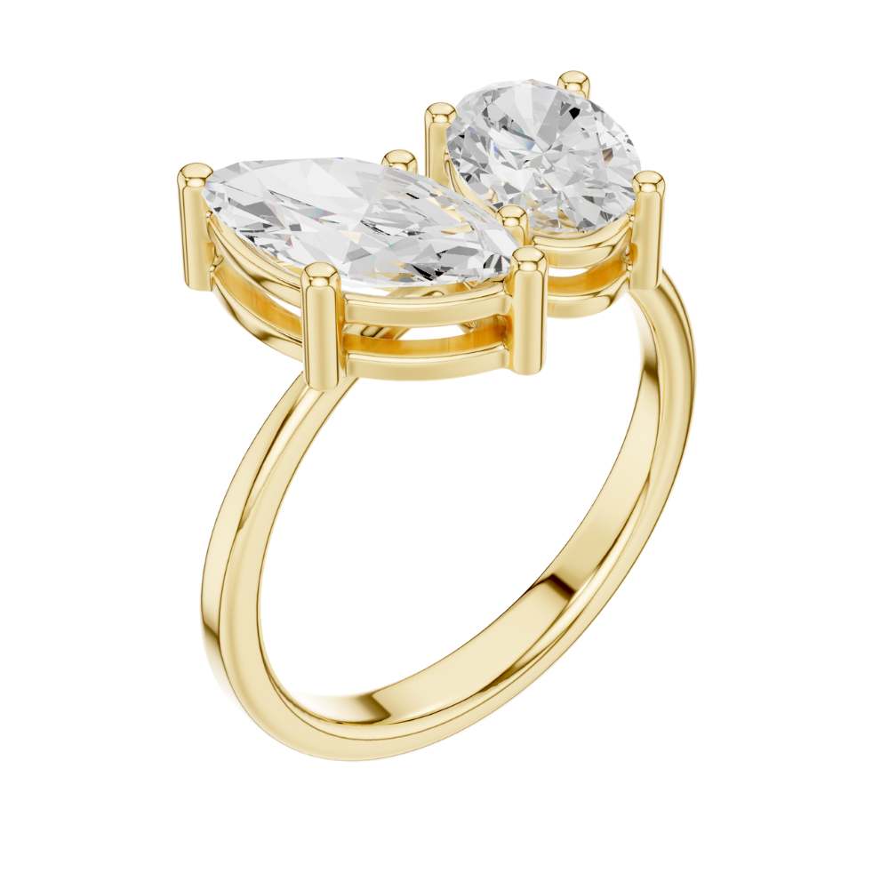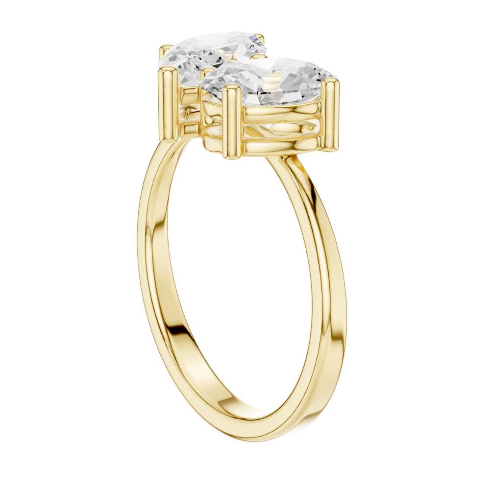 This exquisite gold ring features a stunning pair of center stones—a sleek marquise-cut diamond and a brilliant oval-cut diamond—set side by side for a bold and contemporary look. The minimalist design emphasizes the natural beauty and sparkle of the diamonds, held securely in classic four-prong settings. Perfect for those who appreciate modern elegance with a touch of timeless sophistication, this two-stone ring makes a striking statement for any special occasion or everyday luxury.