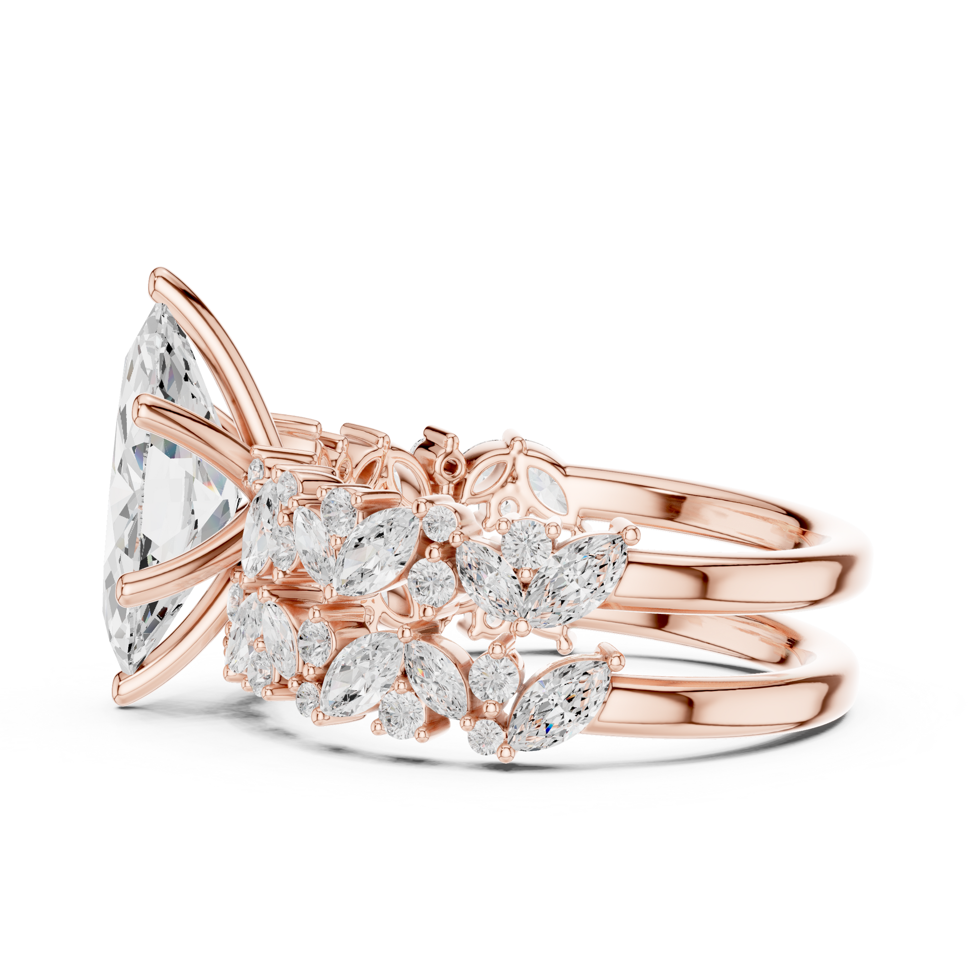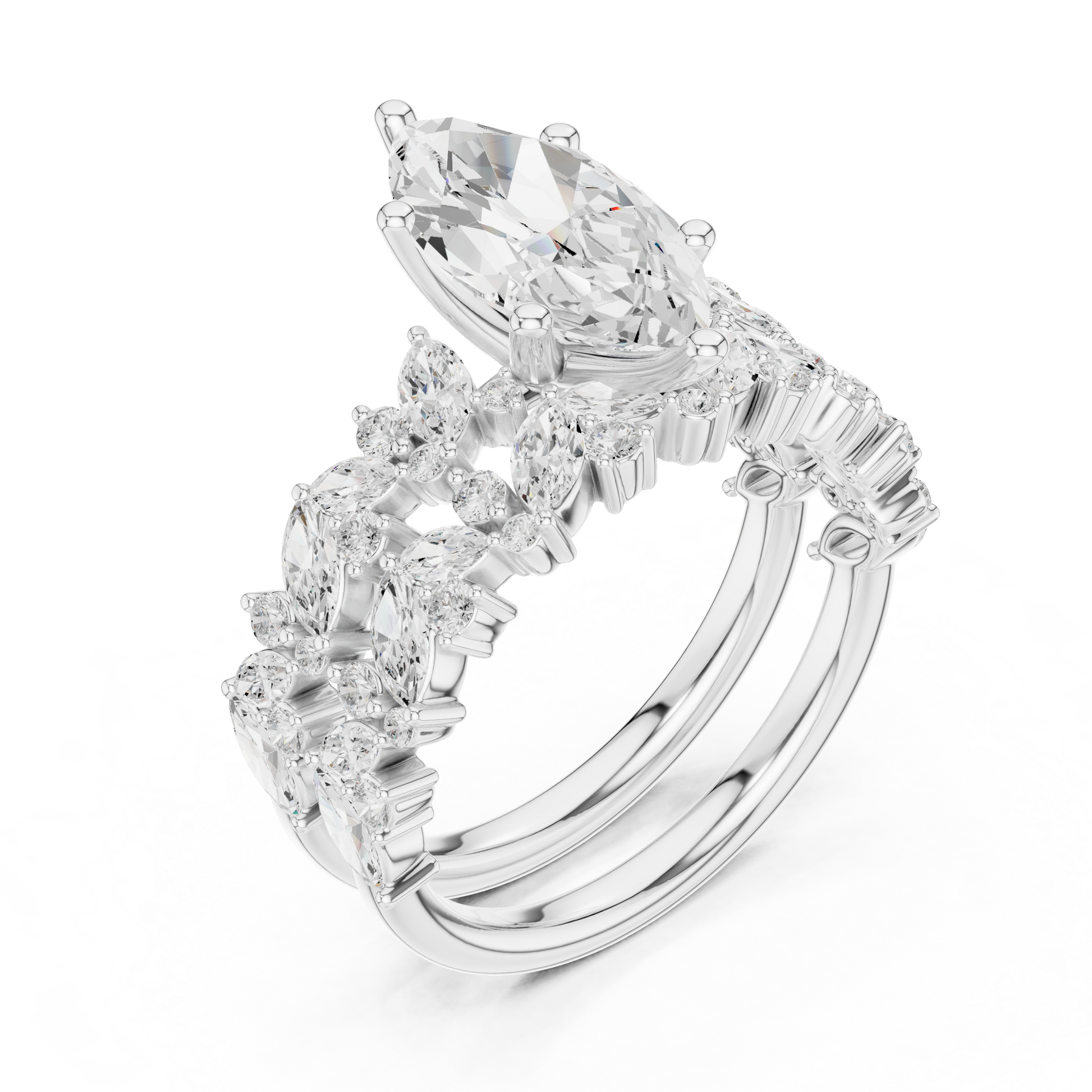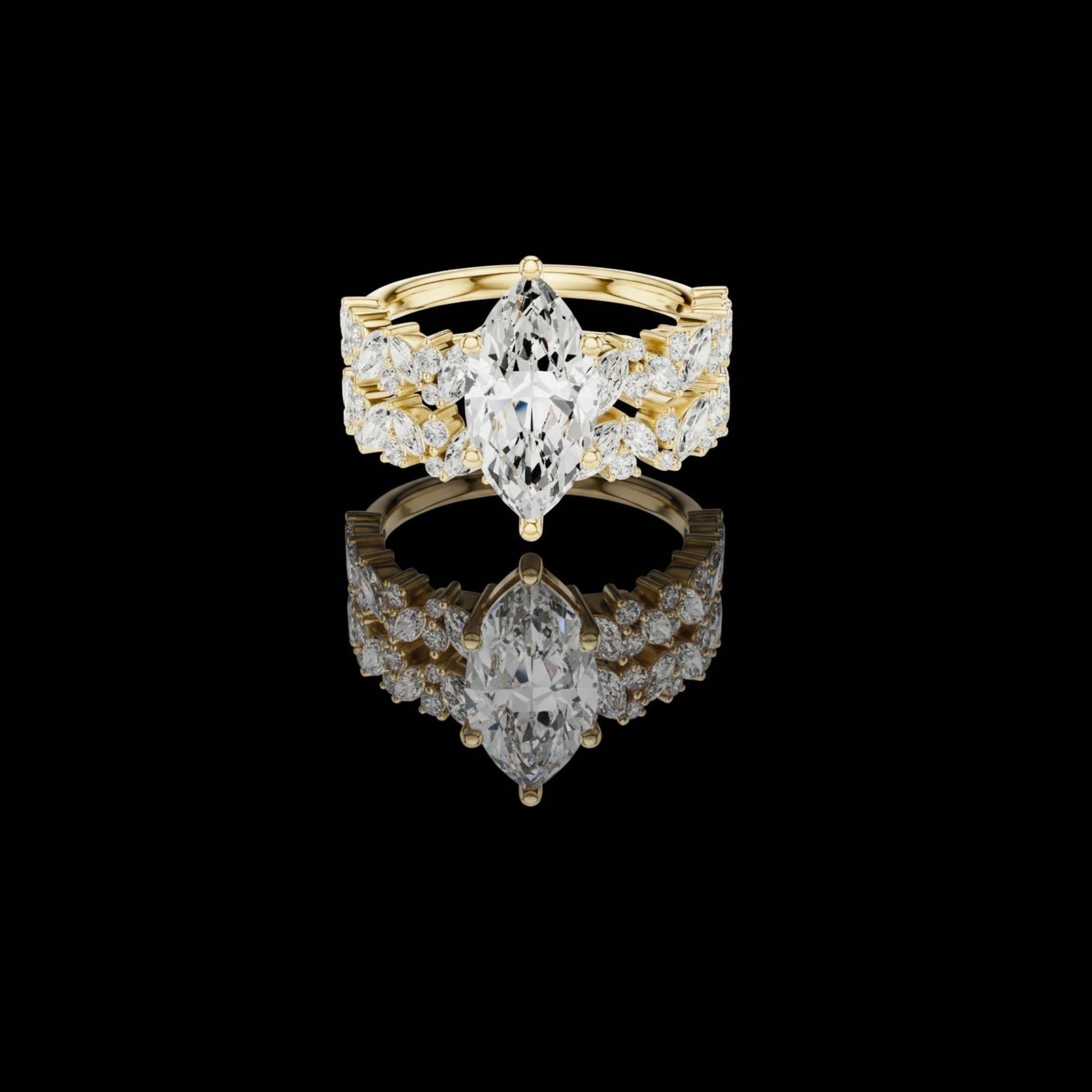 This breathtaking marquise-cut diamond ring is paired with a stunning wide floral-inspired band, fully encrusted with brilliant diamonds for maximum glamour. Designed to stand out, this lavish piece offers unmatched shine, elegance, and luxury—perfect for special occasions and high-end gifting by Ivevar Luxury. Floral Shine, Marquise Diamond, Luxury Band, Premium Gold.