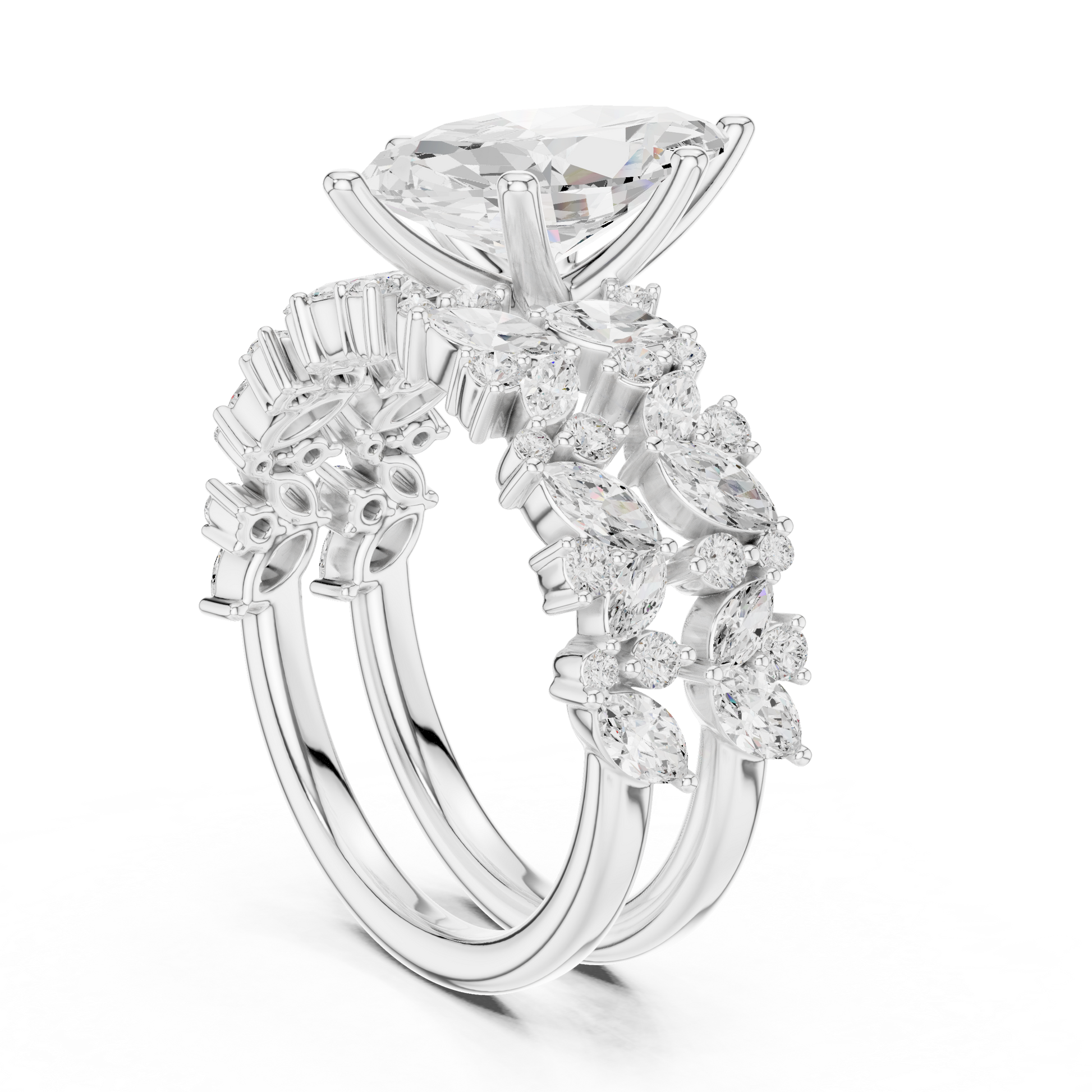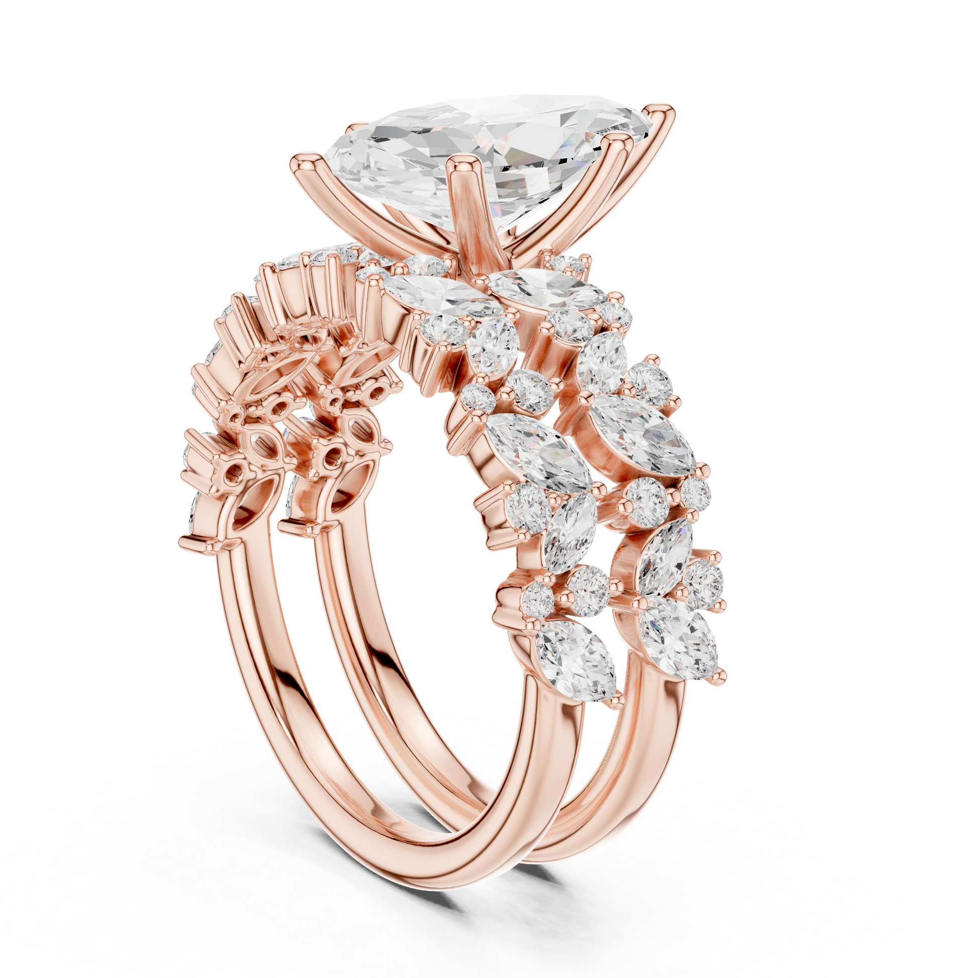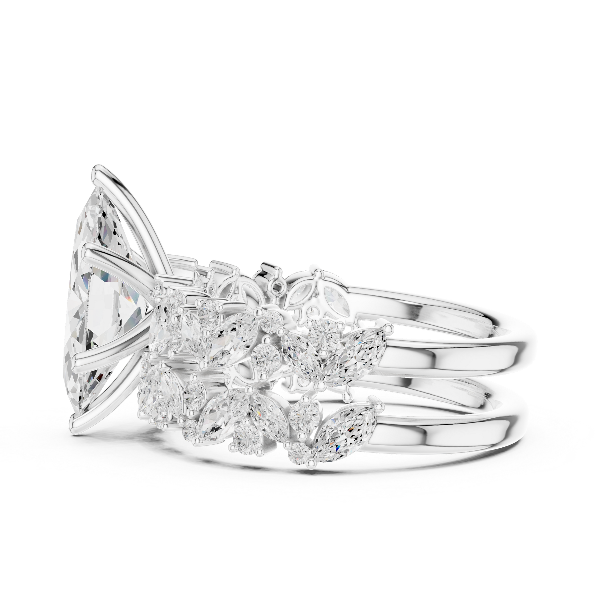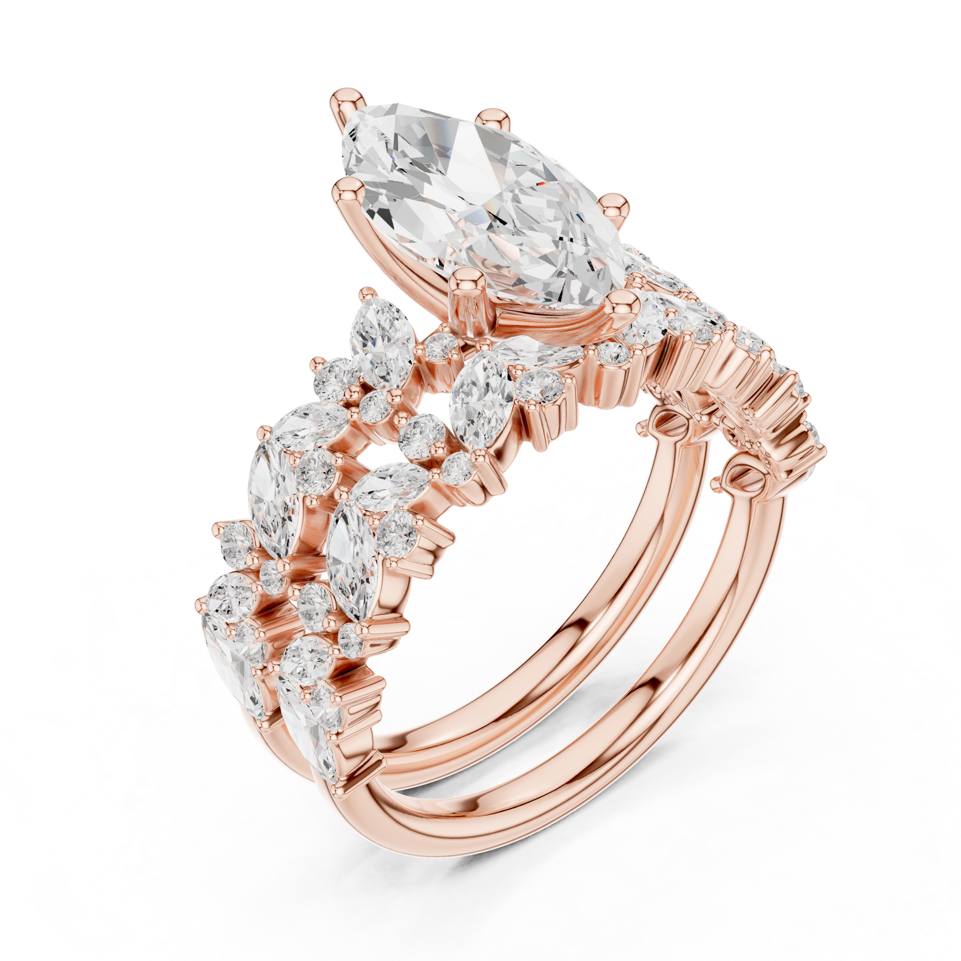 This breathtaking marquise-cut diamond ring is paired with a stunning wide floral-inspired band, fully encrusted with brilliant diamonds for maximum glamour. Designed to stand out, this lavish piece offers unmatched shine, elegance, and luxury—perfect for special occasions and high-end gifting by Ivevar Luxury. Floral Shine, Marquise Diamond, Luxury Band, Premium Gold.