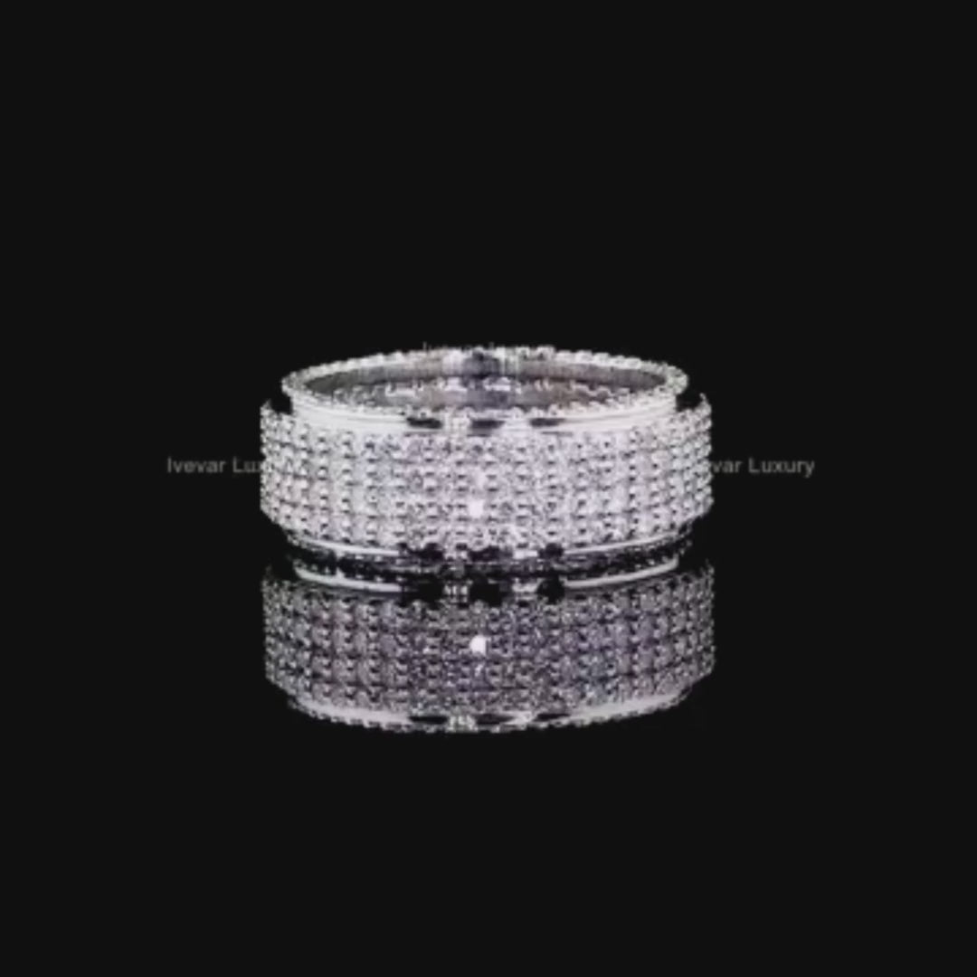 Make an unforgettable impression with this four-row pave diamond eternity band, designed for those who appreciate maximum brilliance and high-end craftsmanship. Each row is meticulously set with shimmering round cut stones, creating a continuous display of intense sparkle and refined luxury. The premium silver-tone finish adds a modern, sophisticated touch, while the full-circle pavé design symbolizes endless strength, commitment, and timeless elegance.