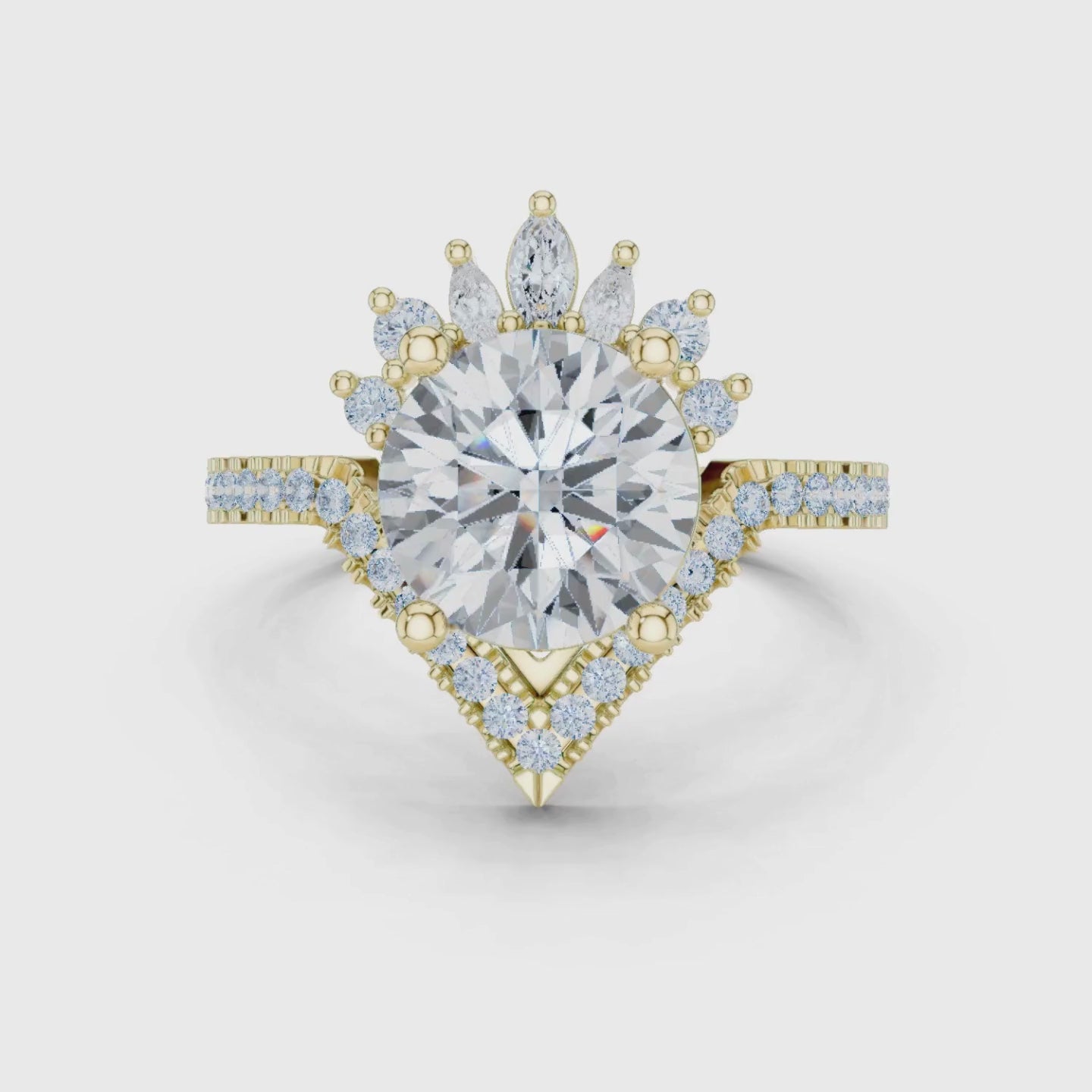 2.10 CT Regal Crown Halo and Pave Band Round Lab Diamond Ring in Gold For Pure Love