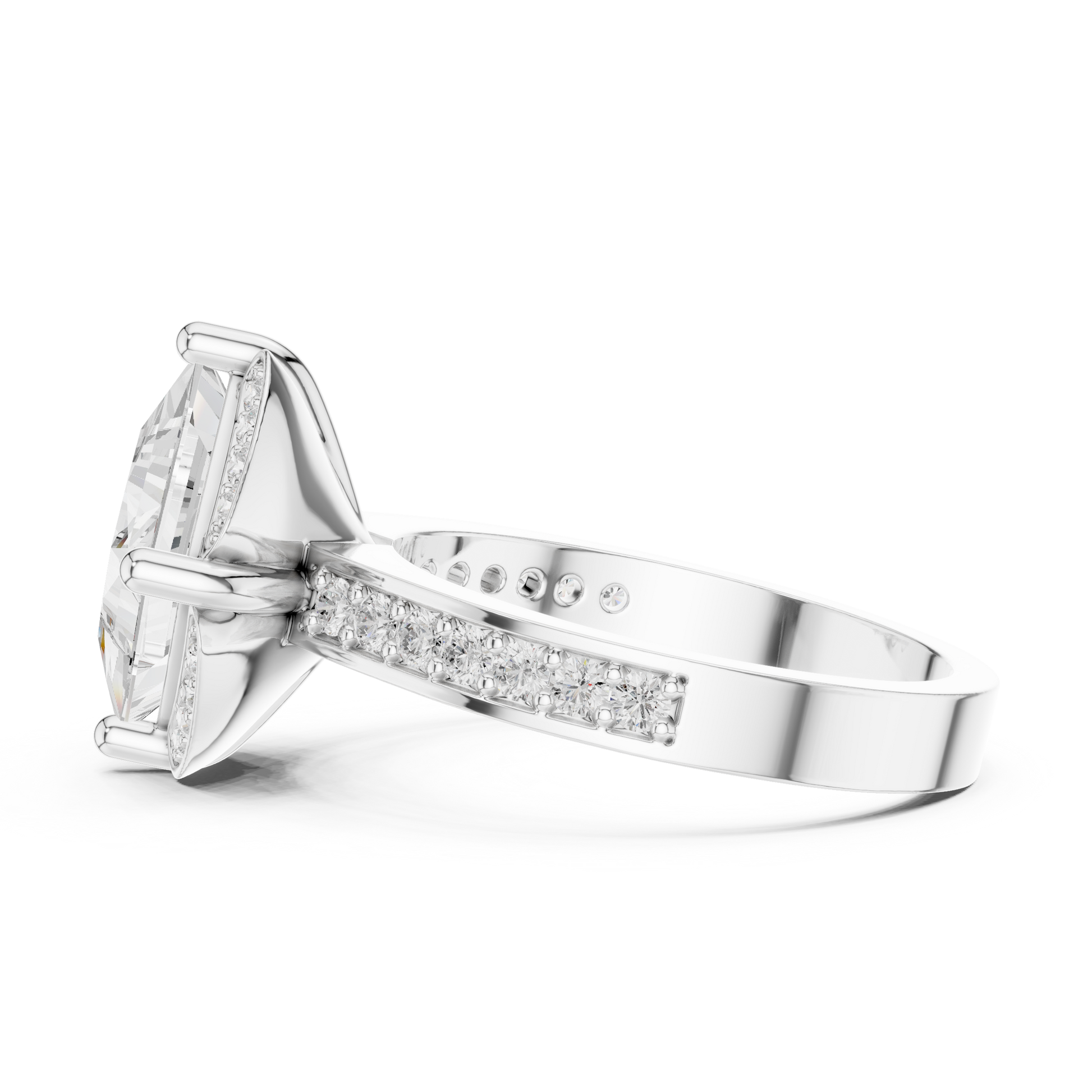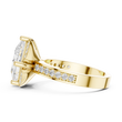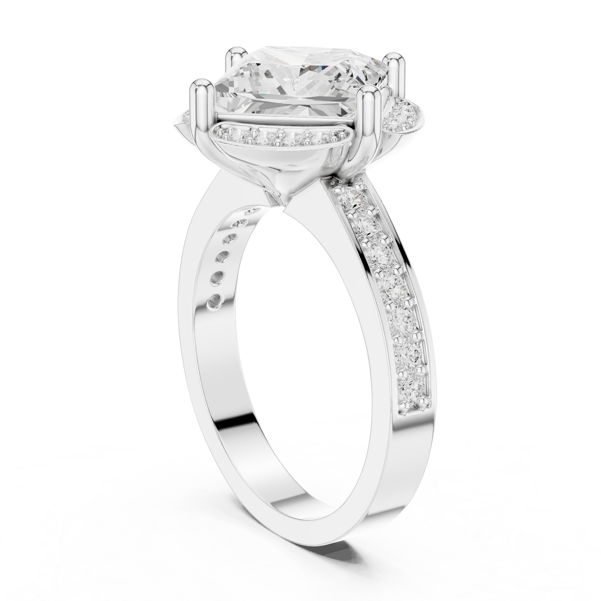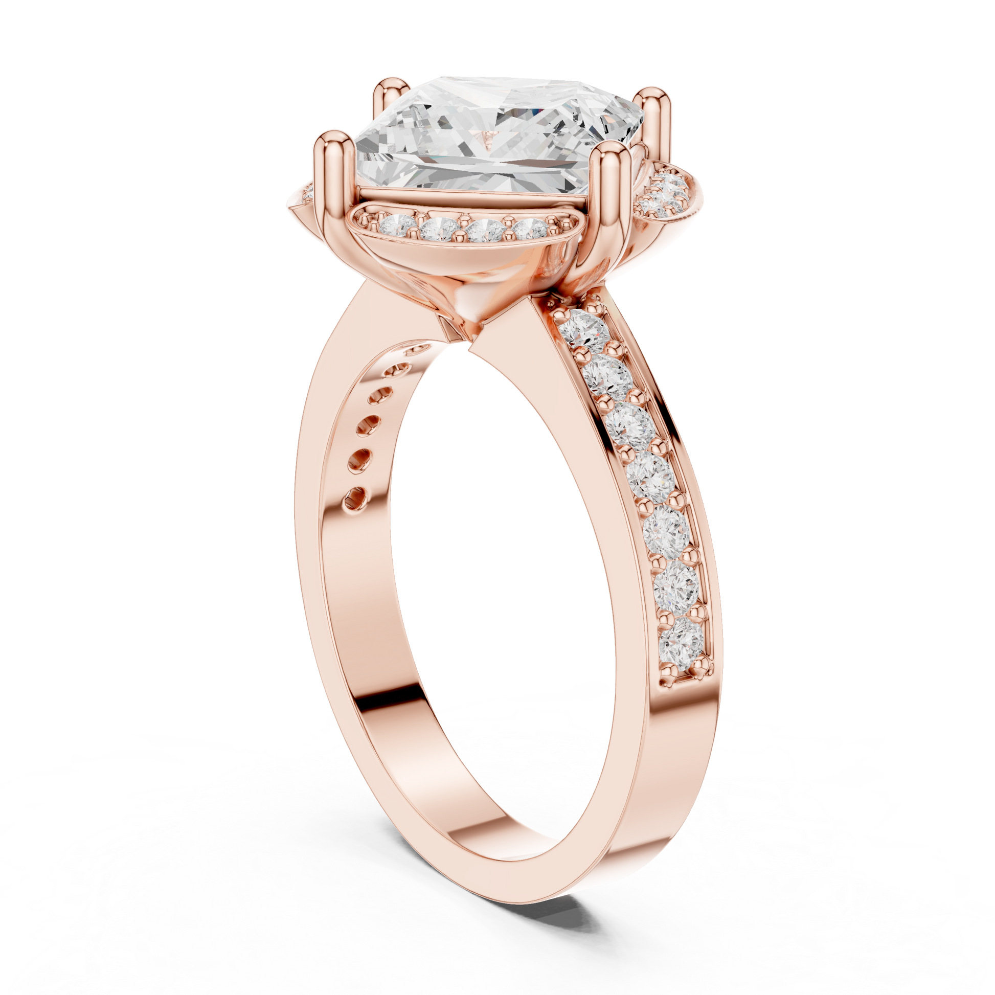 This ring showcases a striking princess-cut center stone set in a dramatic square orientation, framed by a vintage-inspired pavé halo on all four sides. Crafted in rich gold, the ring blends bold geometry with timeless sparkle, creating a luxurious and eye-catching statement. Perfect for engagements or special celebrations, this design delivers brilliance, uniqueness, and refined sophistication.