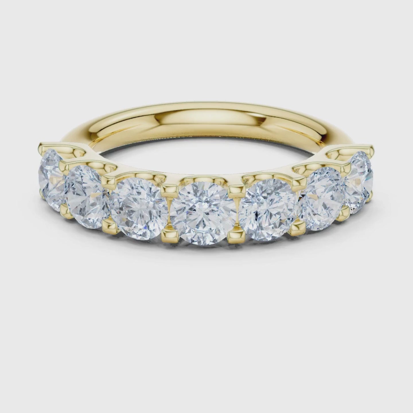 This exquisite half-eternity diamond band features a row of brilliant round-cut diamonds set in polished gold. Designed to offer maximum sparkle while maintaining everyday comfort, each diamond is perfectly aligned to create a radiant and timeless look. Ideal as a wedding band, anniversary gift, or elegant stacking piece, this ring combines classic charm with luxurious craftsmanship. Its refined shine and bold diamonds make it an essential addition to any jewelry collection.