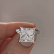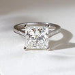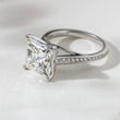 This elegant engagement ring features a striking princess-cut center stone secured in a refined four-prong setting. The slim gold band is adorned with delicate pave set round accent stones, adding subtle brilliance while keeping the focus on the bold square silhouette of the center. Designed with timeless proportions and modern refinement, this ring is perfect for those who appreciate clean lines and classic luxury.