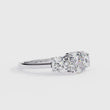 This breathtaking piece features a commanding center cushion-cut diamond, flanked by two equally dazzling brilliant side stones. Set in rich, the design emphasizes perfect symmetry and timeless refinement. Each diamond is held in secure four-prong mounts, allowing maximum light reflection and exceptional fire and clarity.