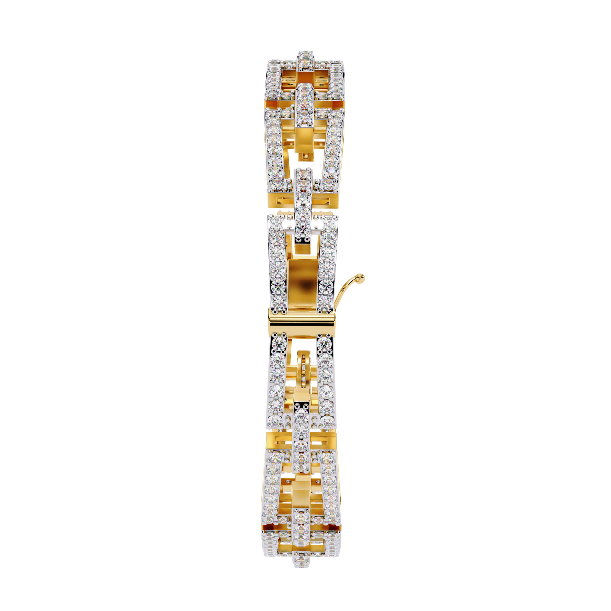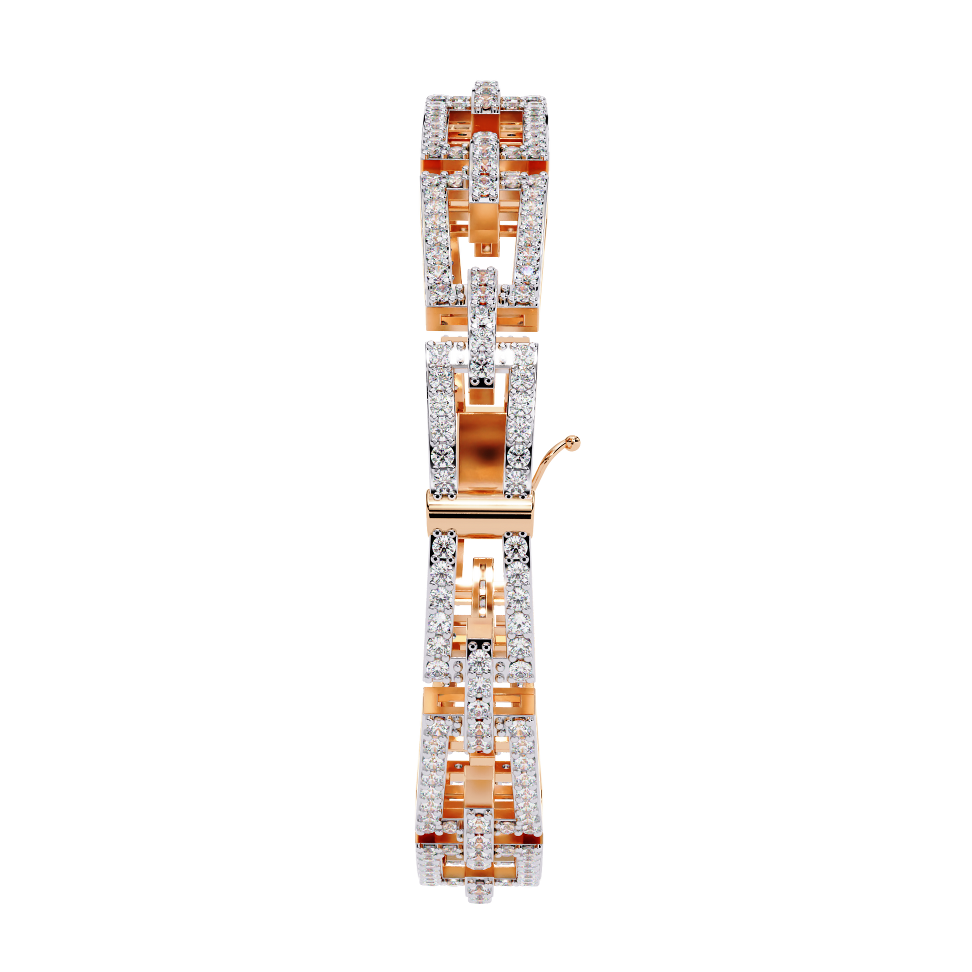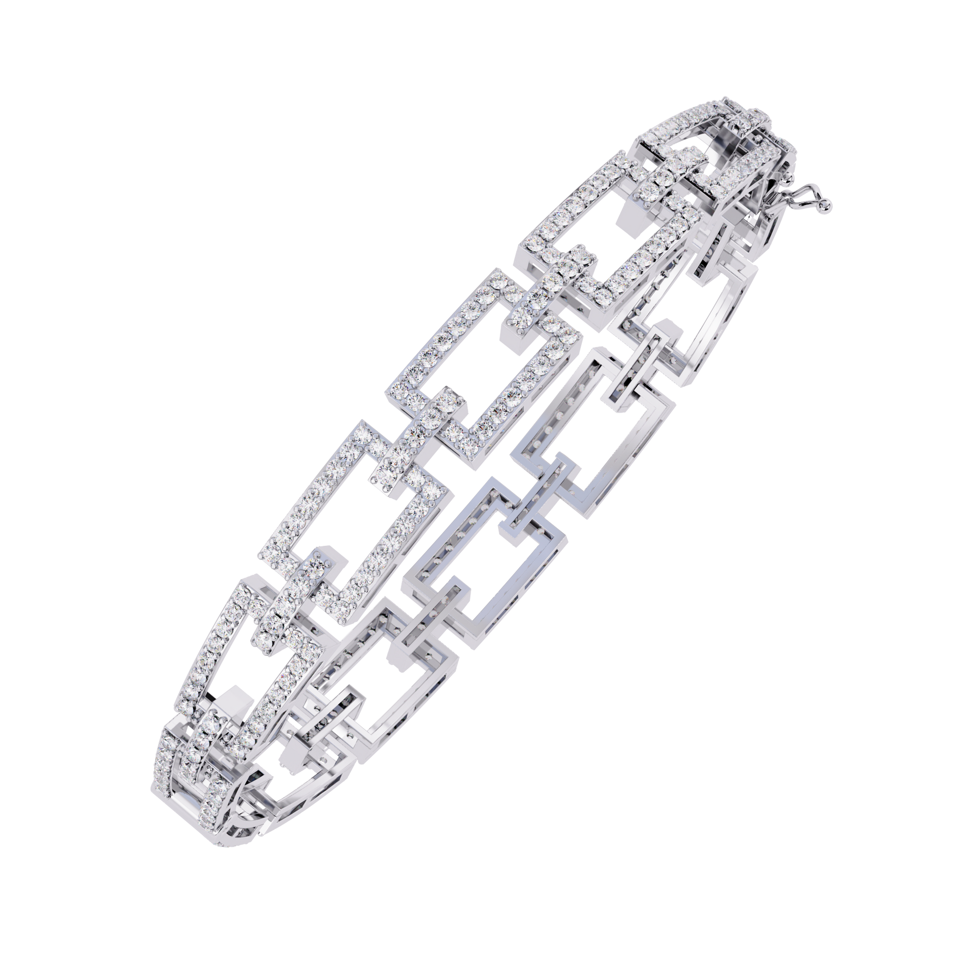 This luxurious bracelet features a modern rectangular link design crafted . Each link is meticulously adorned with round brilliant-cut diamonds, creating a sparkling and elegant appearance. Perfect for both formal occasions and sophisticated daily wear, this piece reflects timeless craftsmanship and refined style.