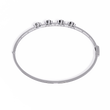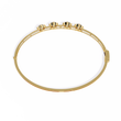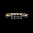 This exquisite bracelet showcases a sophisticated design featuring four large brilliant round-cut diamonds evenly spaced along a slender gold band. Complementing the main stones, a delicate row of smaller pave-set diamonds runs parallel beneath, adding an extra layer of shimmering elegance. The combination of bold, sparkling gems with fine detailing creates a perfect balance between modern glamour and timeless luxury, making it an ideal statement piece for special occasions or refined everyday wear.
