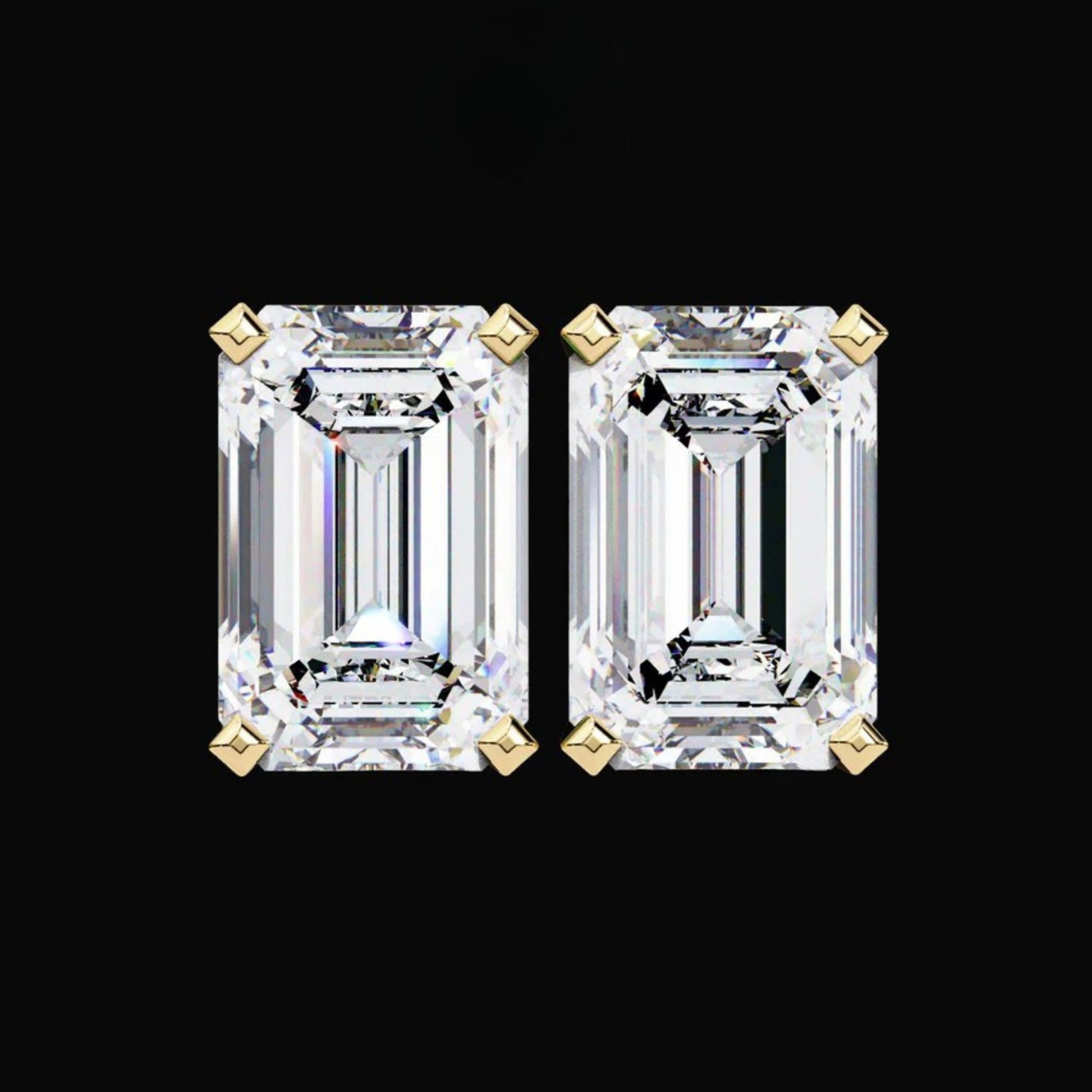 Embrace the sophistication and clean lines of the Emerald-Cut Diamond Stud Earrings. These striking rectangular diamonds are defined by their unique step-cut faceting, which creates a mesmerizing hall-of-mirrors effect rather than a typical sparkle. The long, crisp facets showcase the exceptional clarity of the stones. The diamonds are secured by modern, corner-set prongs in luminous, which protect the delicate corners while emphasizing the architectural shape.