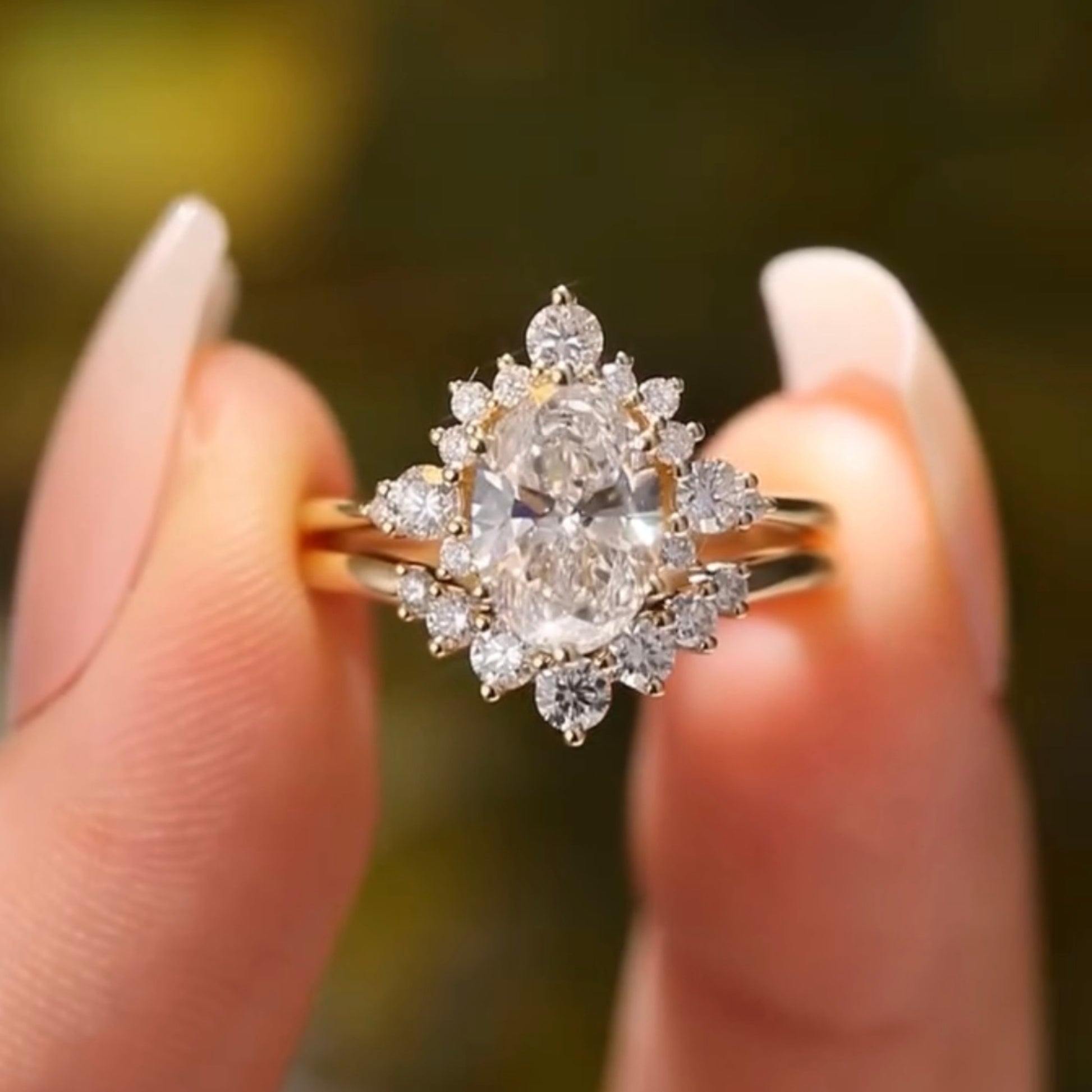 2.40 CT Elegant Oval Cut Lab Grown Diamond Halo Ring with Floral Cluster Ring
