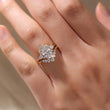 This stunning ring features a radiant oval cut lab grown diamond at its center, celebrated for its brilliance and elongated elegance. Surrounding the center stone is a delicate floral-inspired halo of round diamonds, creating a soft bloom effect that enhances sparkle from every angle. The intricate halo setting adds depth and dimension, making this ring a perfect blend of romantic design and timeless sophistication. Ideal for an engagement, anniversary, or heirloom-worthy gift, this ring reflects ethical luxury, refined craftsmanship, and enduring beauty designed to be cherished for a lifetime.