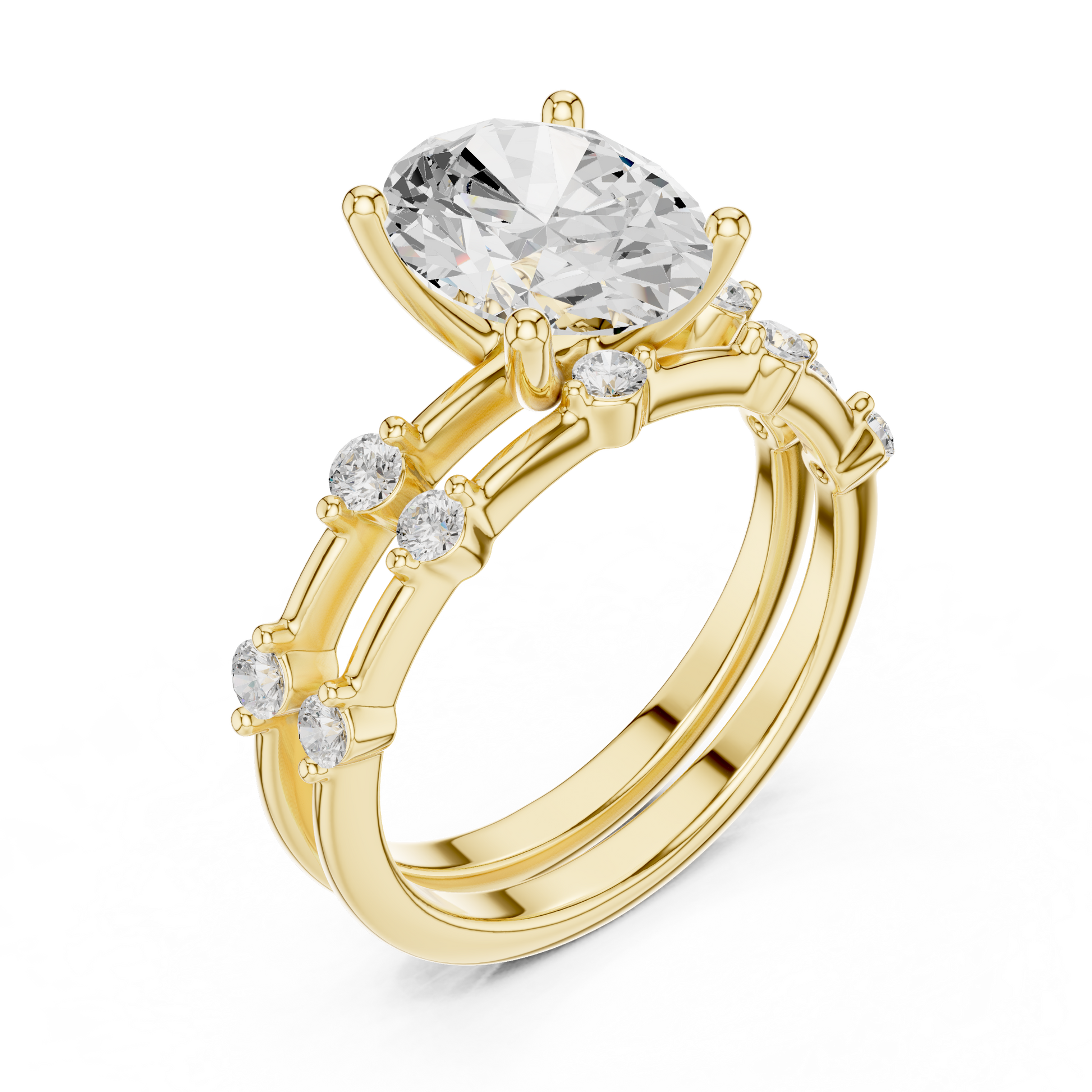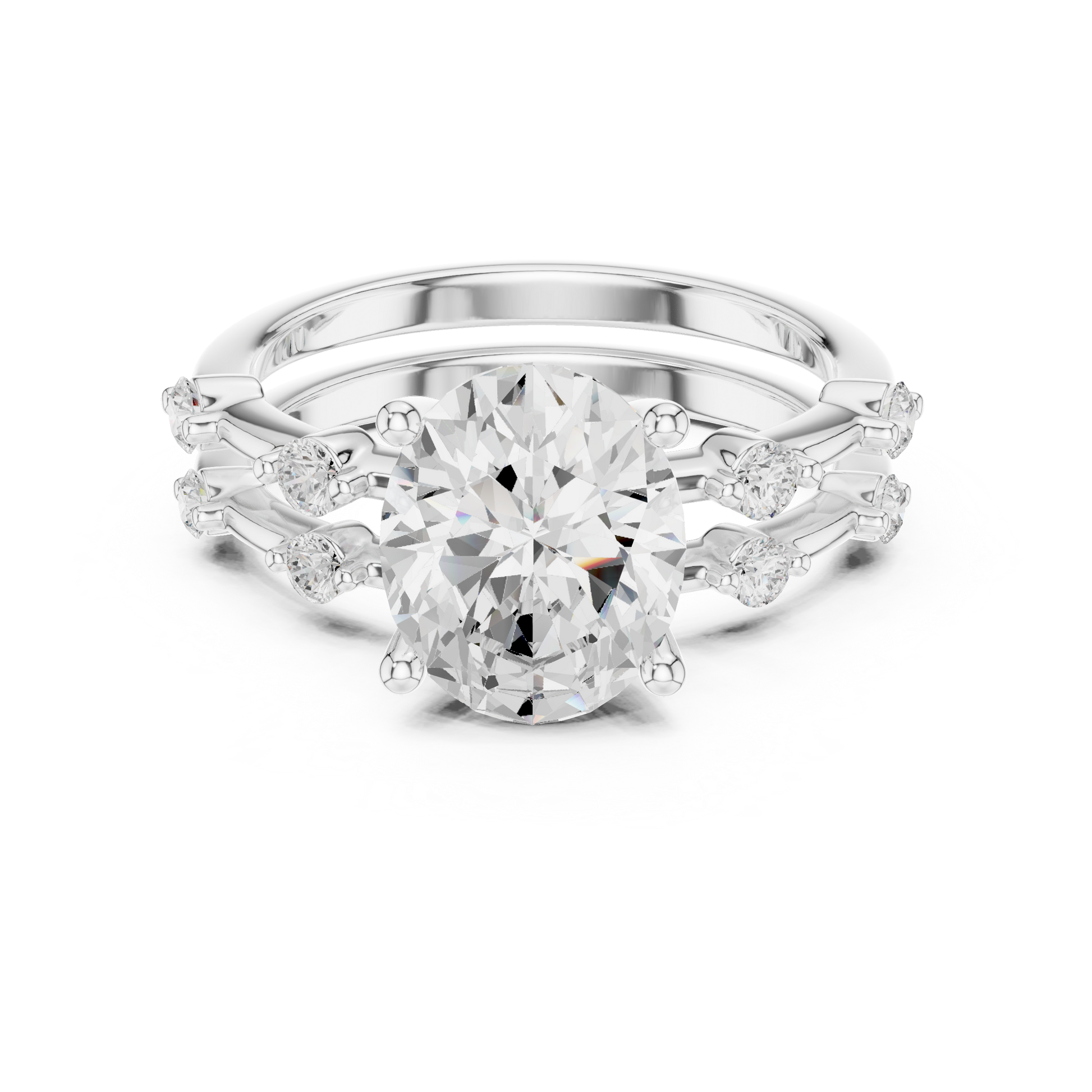 2.42 CT Timeless Oval Solitaire Lab Grown Diamond Ring with Accent Diamond Band