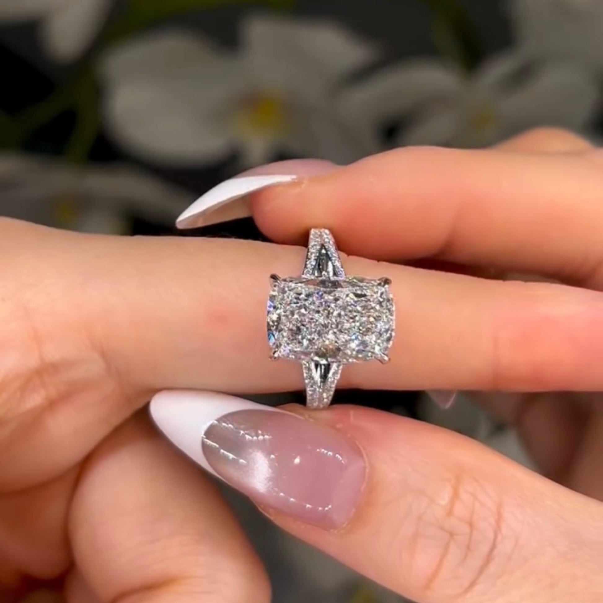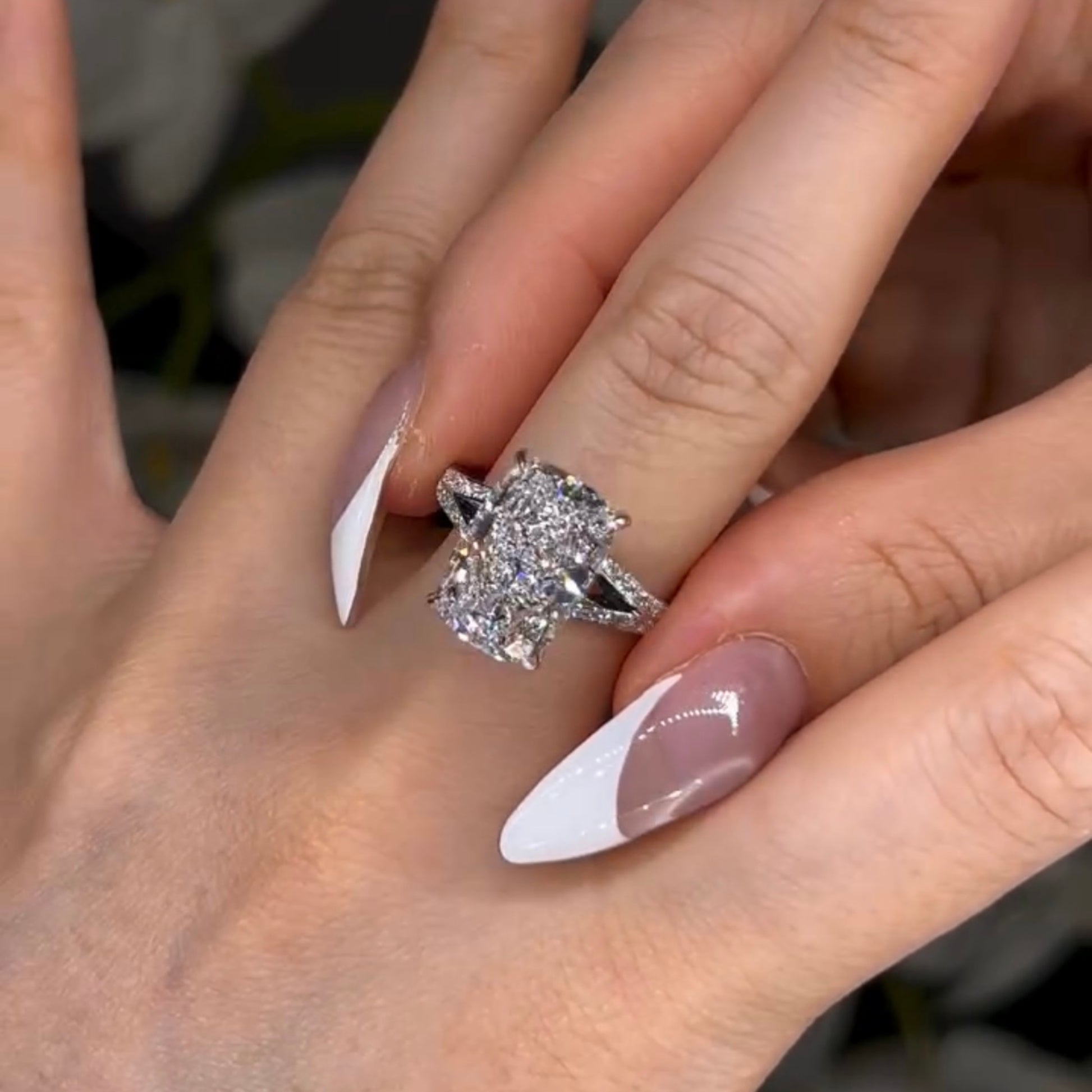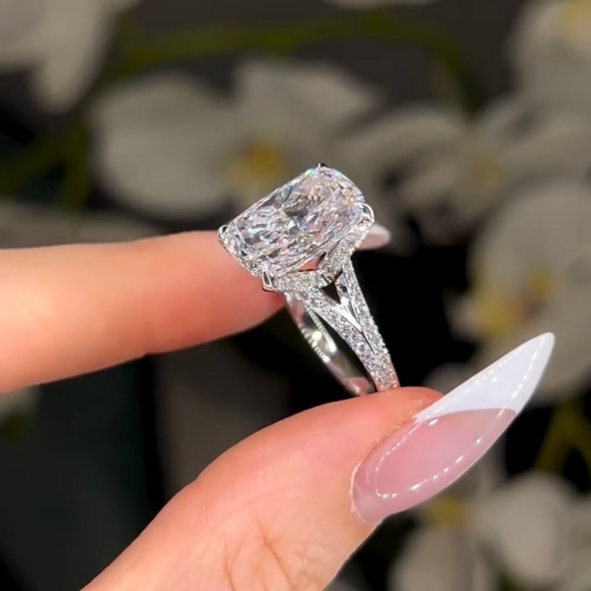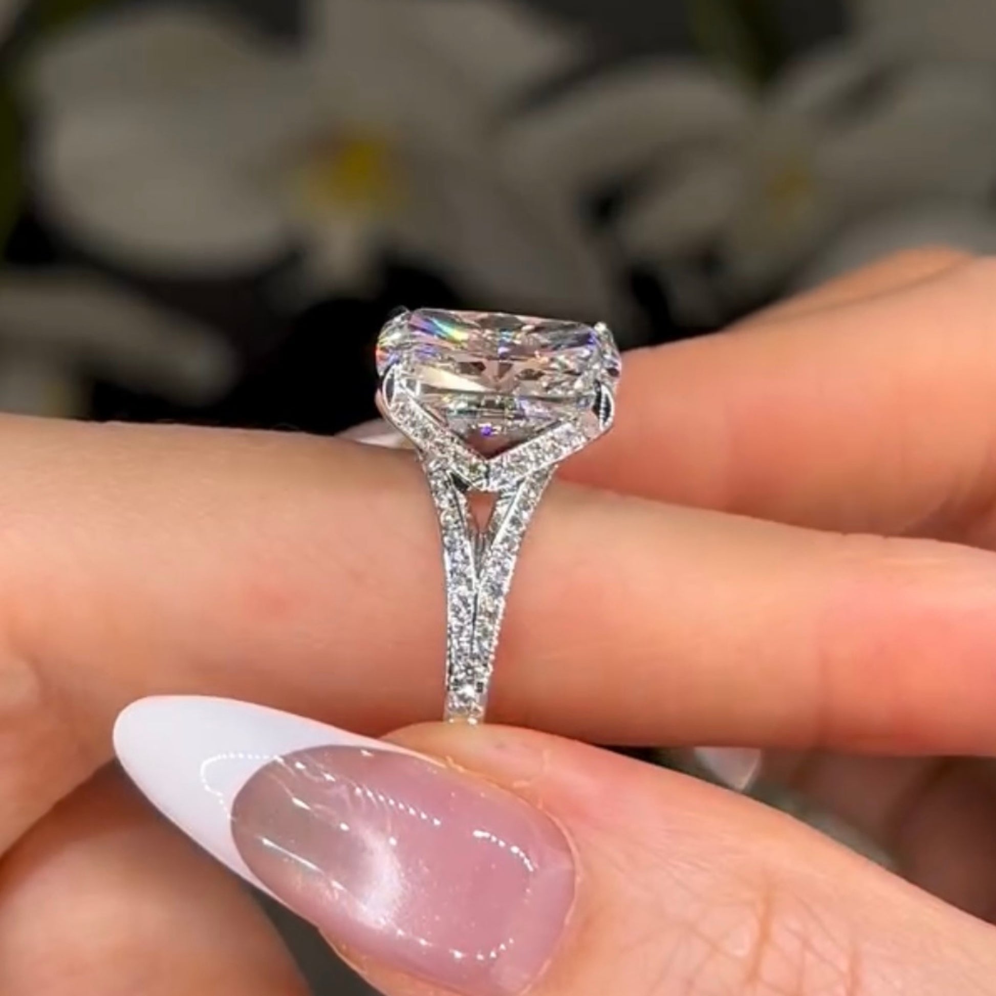 2.5 CT Elevated Four Prong Setting Cushion Cut Lab Diamond Ring with Pave Split Shank For Her