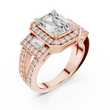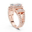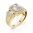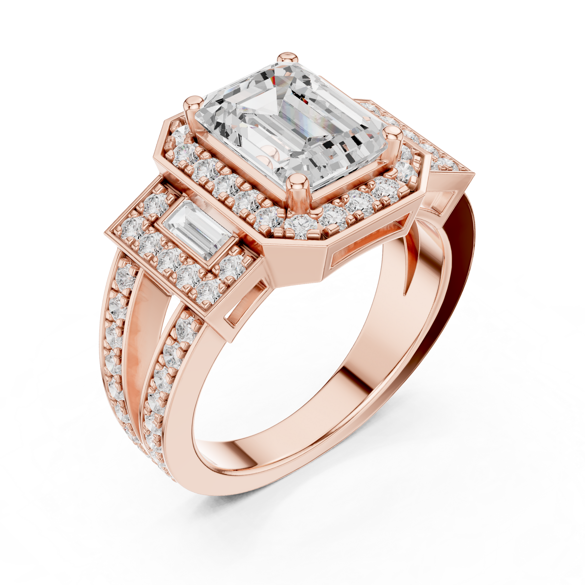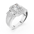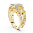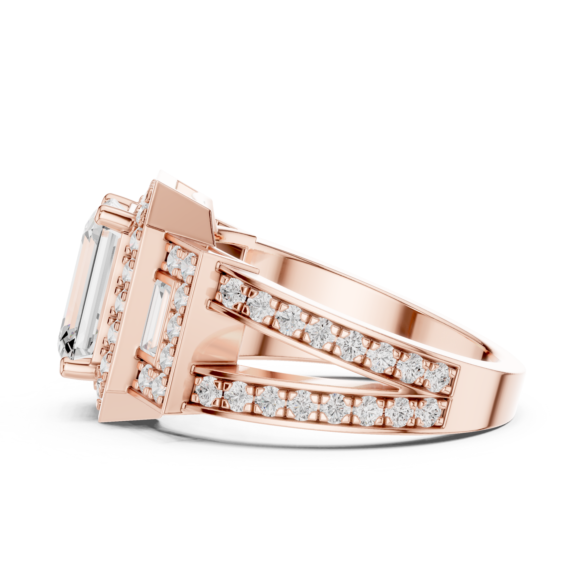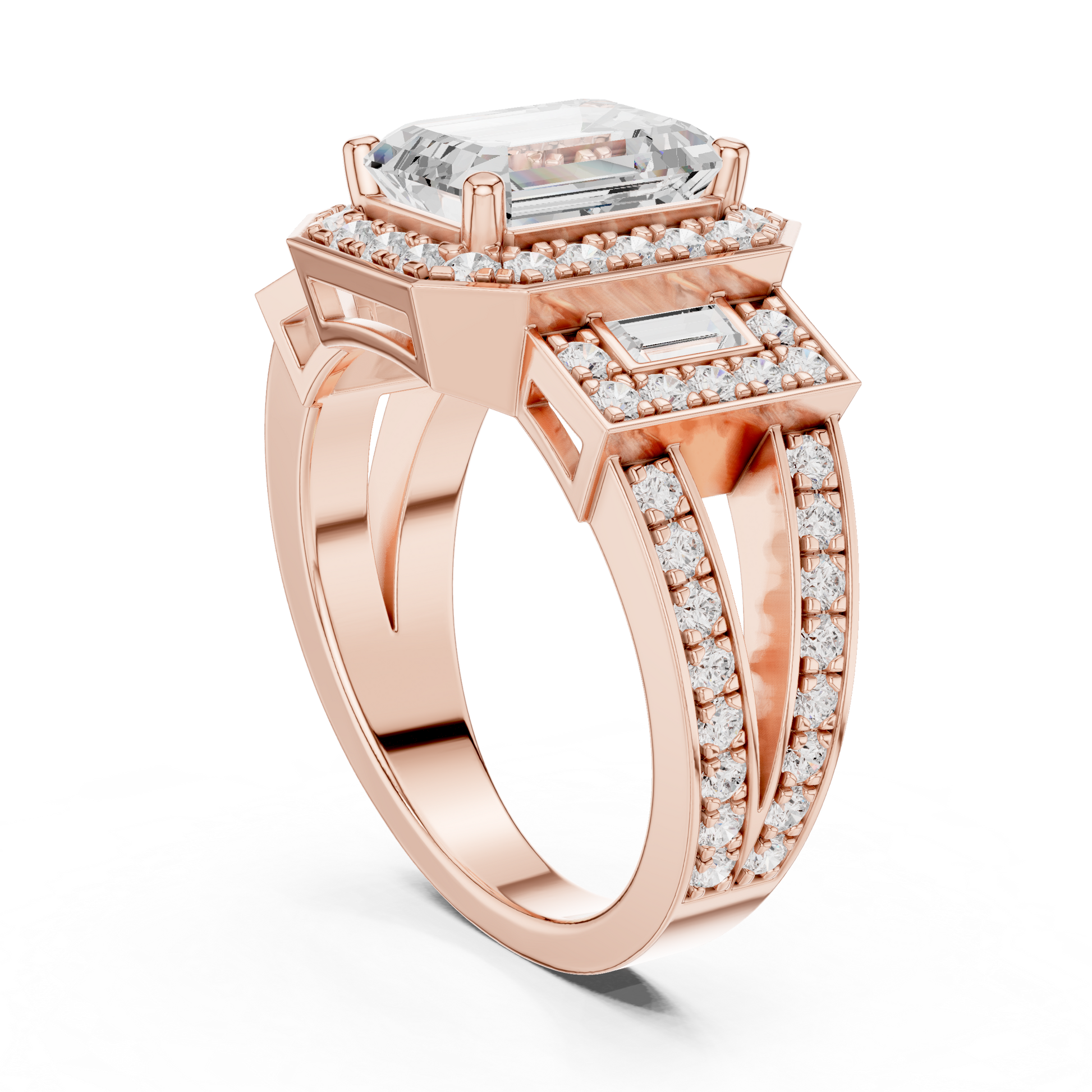2.5 CT Iconic Statement Emerald Cut Center with Side Baguette Three Stone Double Halo Moissanite Diamond Ring