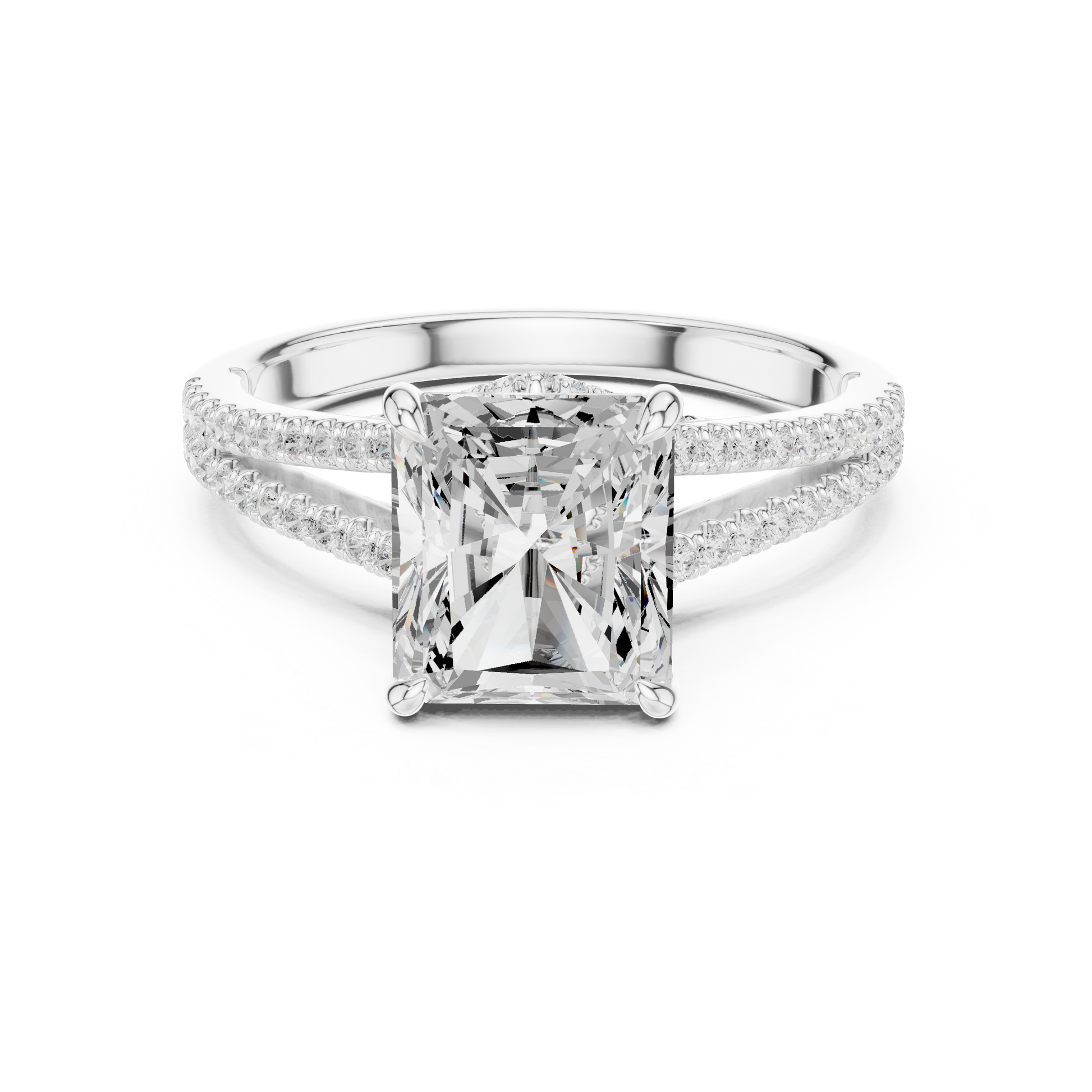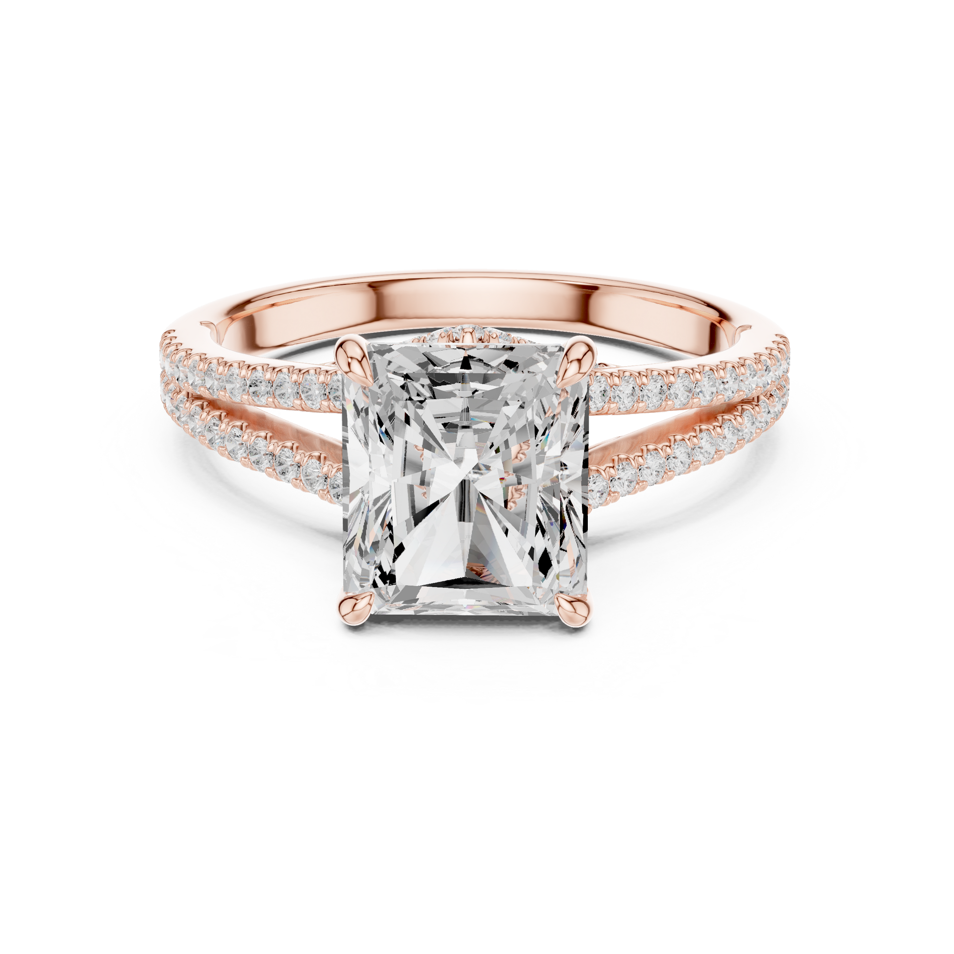 Experience pure brilliance with this radiant-cut diamond engagement ring, crafted in glowing gold. The exquisite split-shank design features shimmering pavé-set diamonds that enhance the center stone’s fire and elegance. Perfect for proposals, anniversaries, or luxury gifting, this ring embodies modern sophistication and timeless romance.