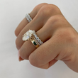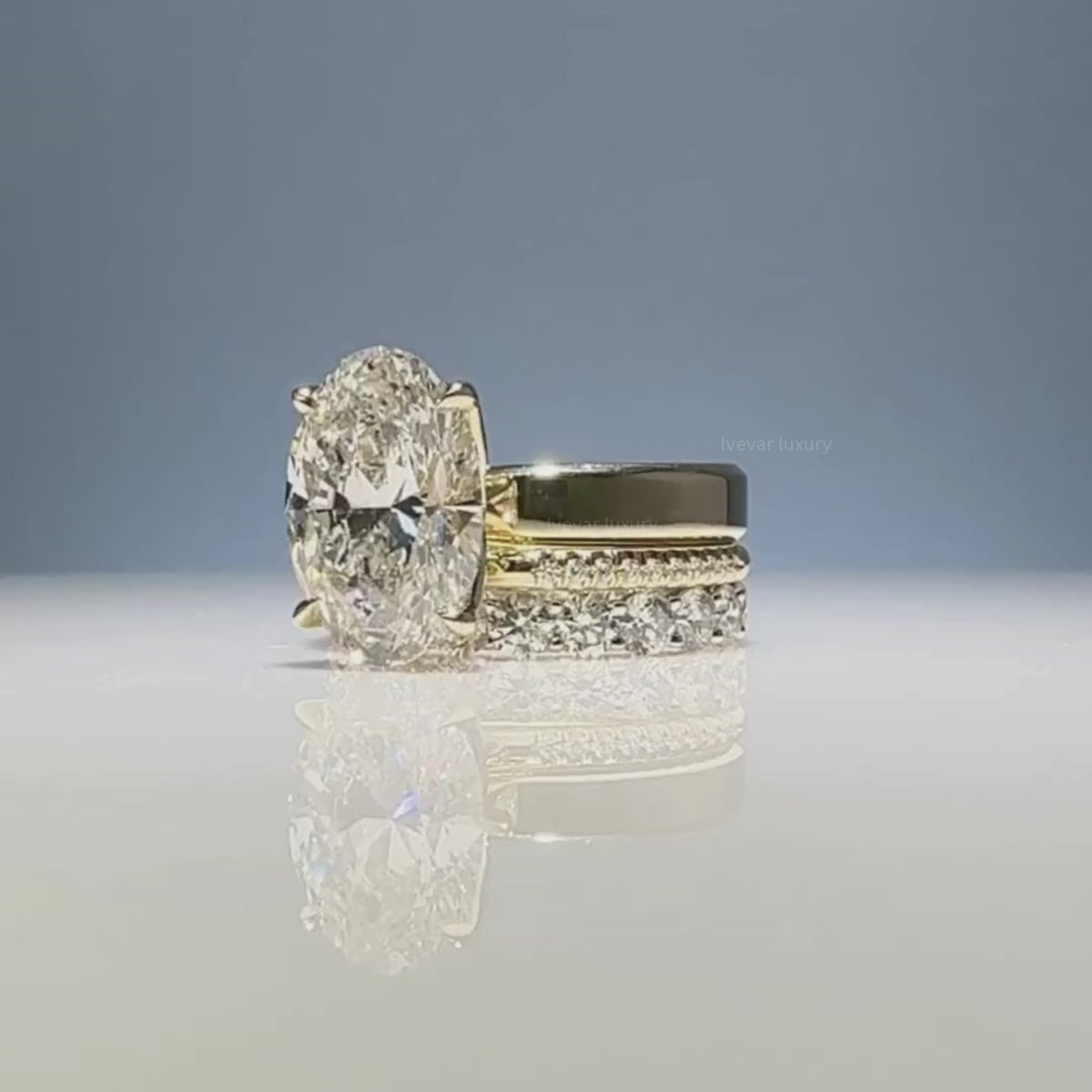 This breathtaking ring features a brilliant oval-cut diamond set as the radiant centerpiece, designed to command attention from every angle. The luxurious band is elevated with layered detailing, combining a smooth polished finish with sparkling pavé diamond accents for added depth and dimension.Perfectly balancing modern sophistication and timeless romance, this design is ideal for those who desire a non-solitaire statement ring that still feels elegant and refined. A stunning choice for engagements, anniversaries, or heirloom-worthy celebrations, this ring embodies bold beauty, craftsmanship, and everlasting sparkle.