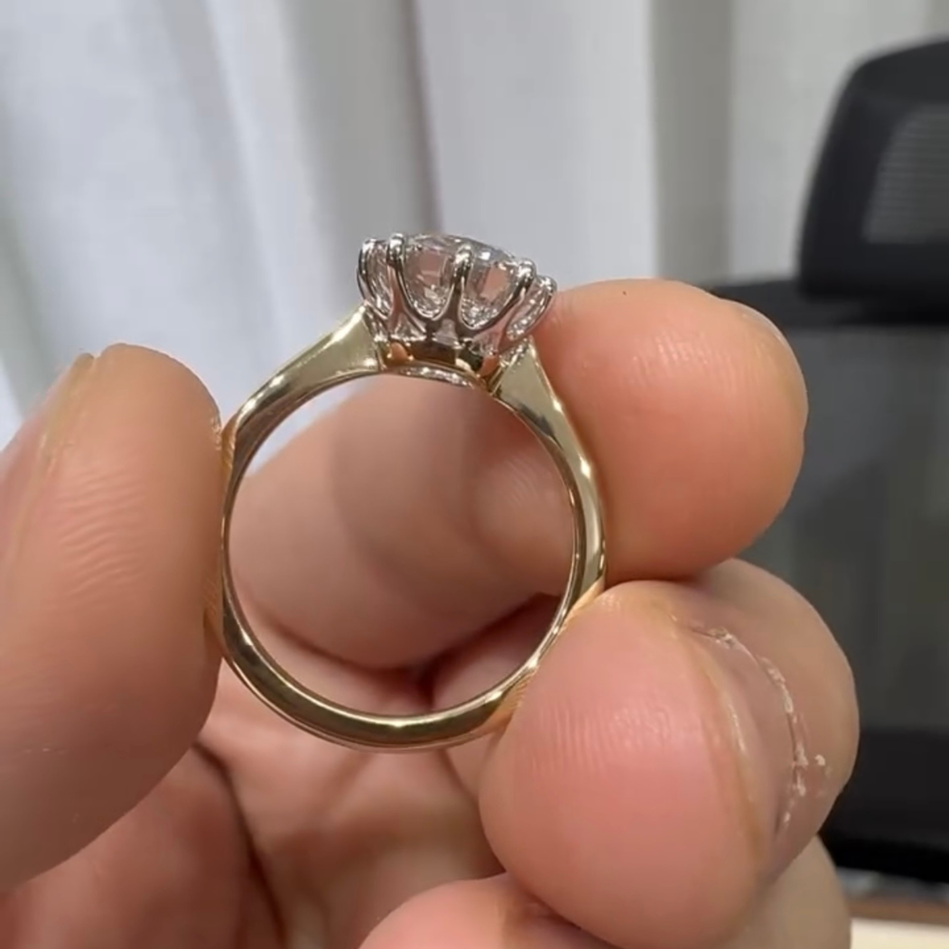 This exquisite ring features a dazzling Round-Cut Diamond, renowned for its exceptional brilliance and fire. Held securely in a traditional prong setting, the diamond is elevated to capture light from every angle.The band offers a refined contrast, creating a look that is both timeless and sophisticated. Perfect as an engagement ring, anniversary gift, or signature solitaire, this piece embodies classic beauty, elegance, and enduring love.