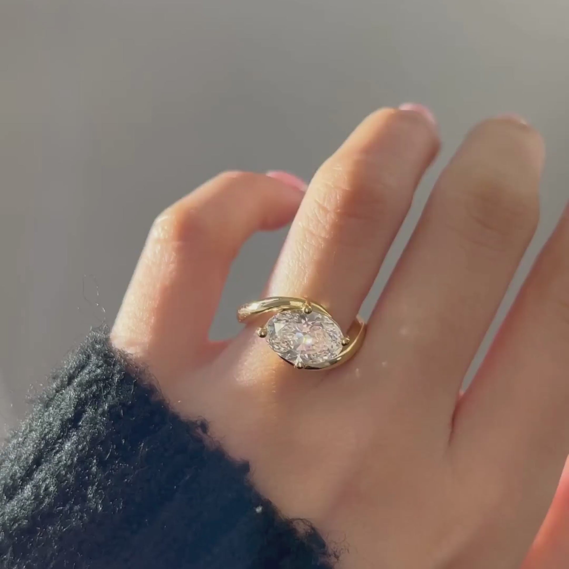 This contemporary oval solitaire ring features a brilliant oval-shaped center stone held securely within a refined bypass-style gold band. The smooth, high-polish finish enhances the stone’s natural sparkle while the sculpted setting offers a modern yet timeless appeal. Designed for everyday elegance and special moments alike, this ring blends minimalism with sophistication, making it an ideal engagement or statement piece.
