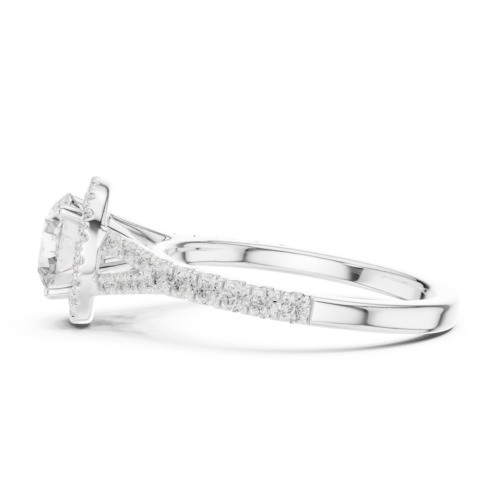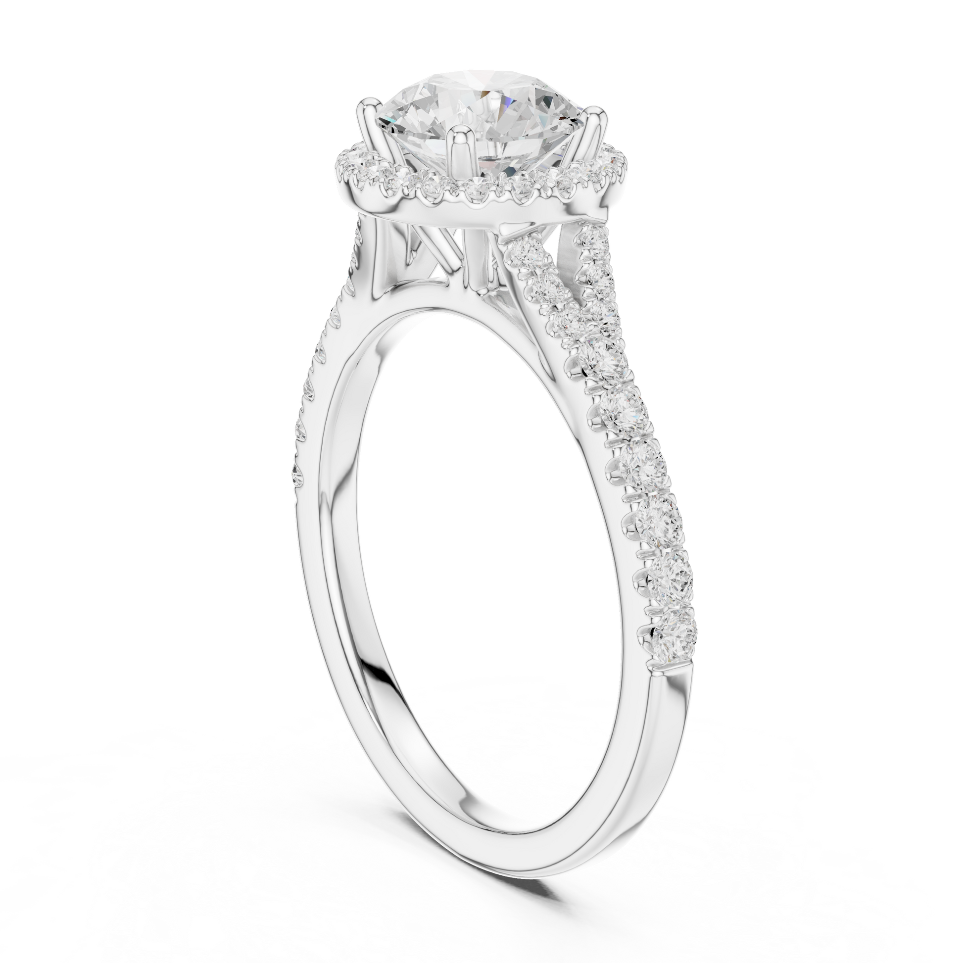 This exquisite Round Cut Halo Diamond Ring from Ivevar Luxury is crafted to radiate brilliance from every angle. The center round diamond is surrounded by a shimmering halo of micro-pave stones, intensifying its sparkle and creating a breathtaking focal point. The band features a continuous line of pave-set diamonds, giving the ring a luxurious and elegant finish.
