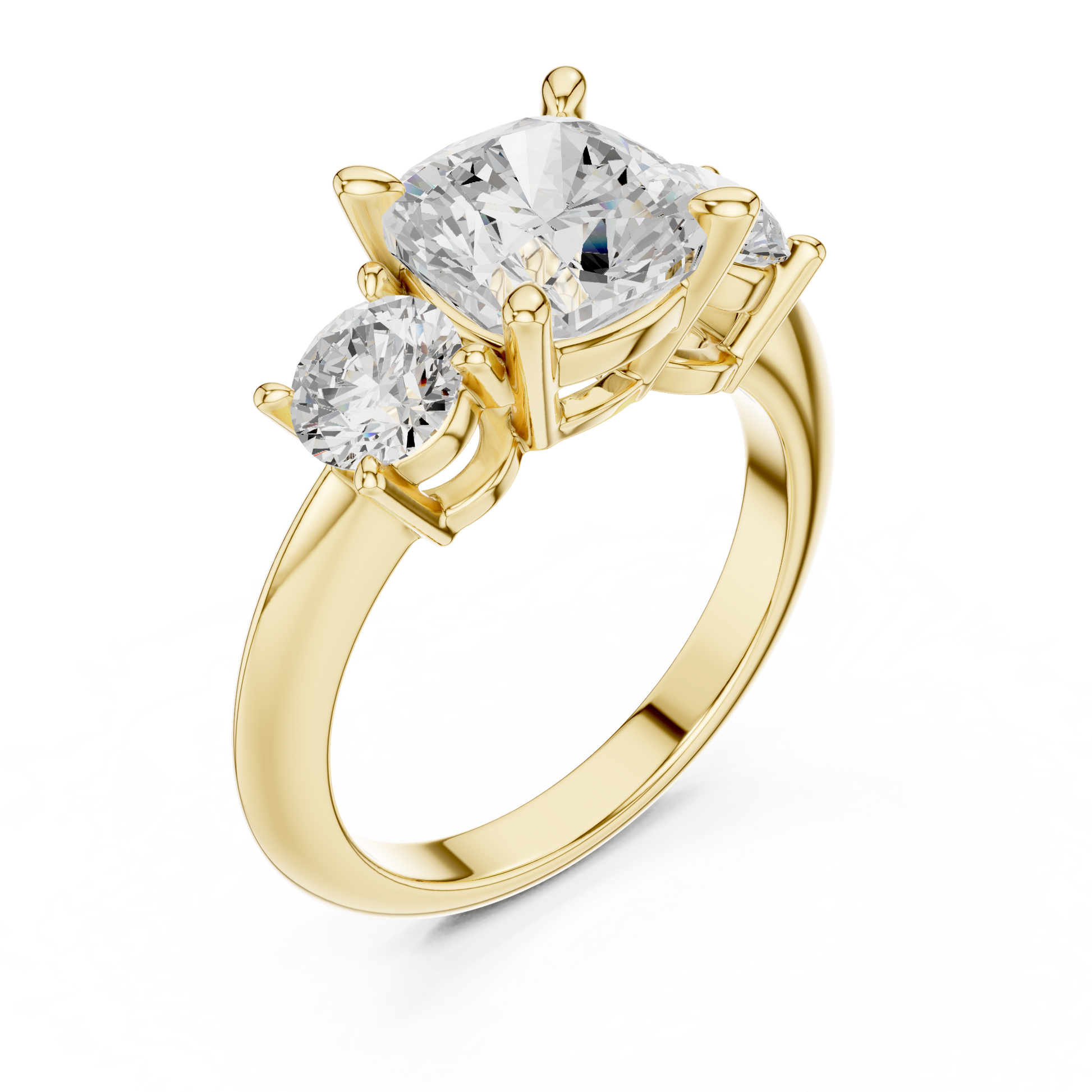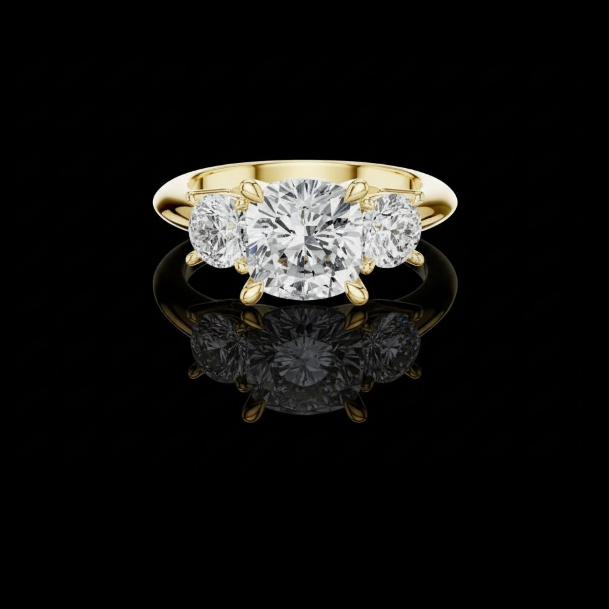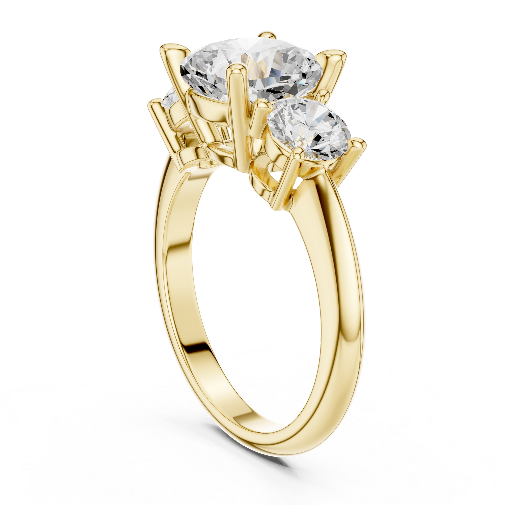 Discover pure luxury with this exquisite Three-Stone Diamond Ring, featuring a radiant round brilliant center diamond flanked by two perfectly matched side diamonds. Crafted in rich Gold, this design symbolizes past, present, and future, making it the ultimate expression of love and commitment. Its exceptional sparkle, flawless craftsmanship, and elegant high-end finish make this piece a true statement of Ivevar Luxury. Perfect for engagements, anniversaries, or any unforgettable moment.