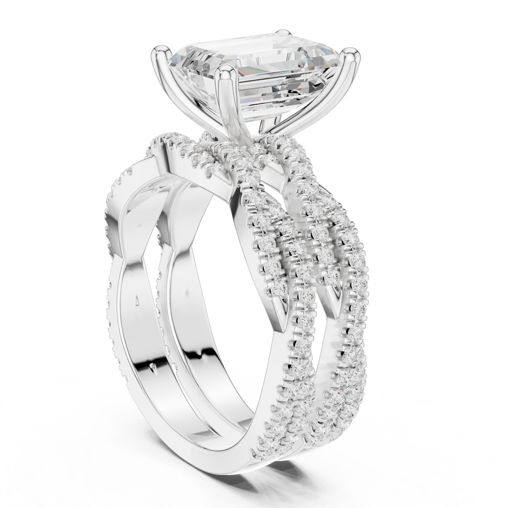 2.50 CT High Luxury Split Shank Emerald Cut Moissanite Diamond Ring with Double Pave Bridal Design