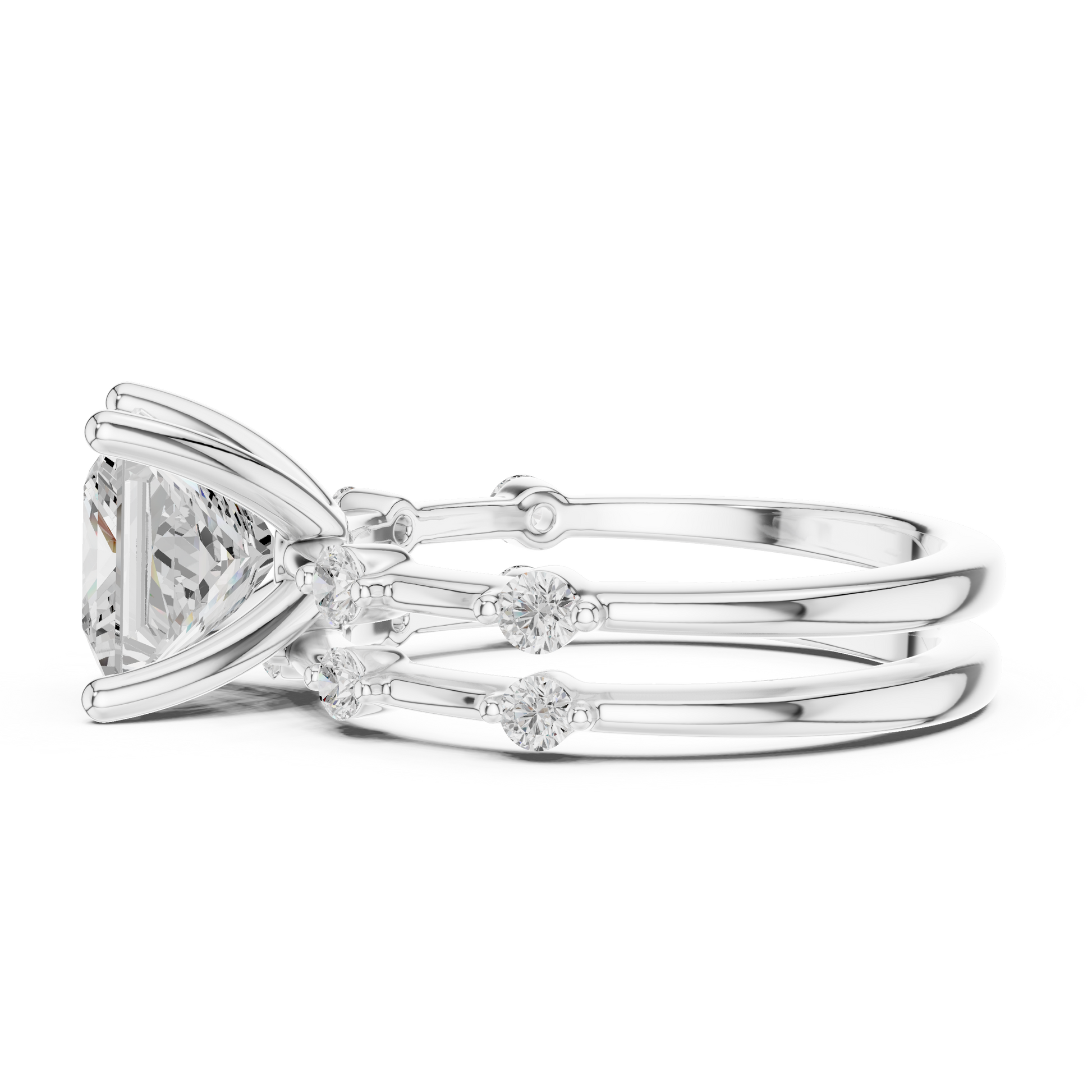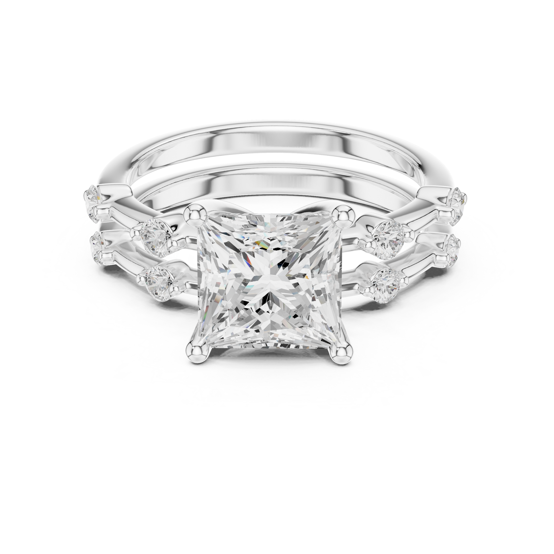 2.50 CT Stylish Princess Cut Lab Grown Diamond Ring with Double Band Design and Round Diamond Accents