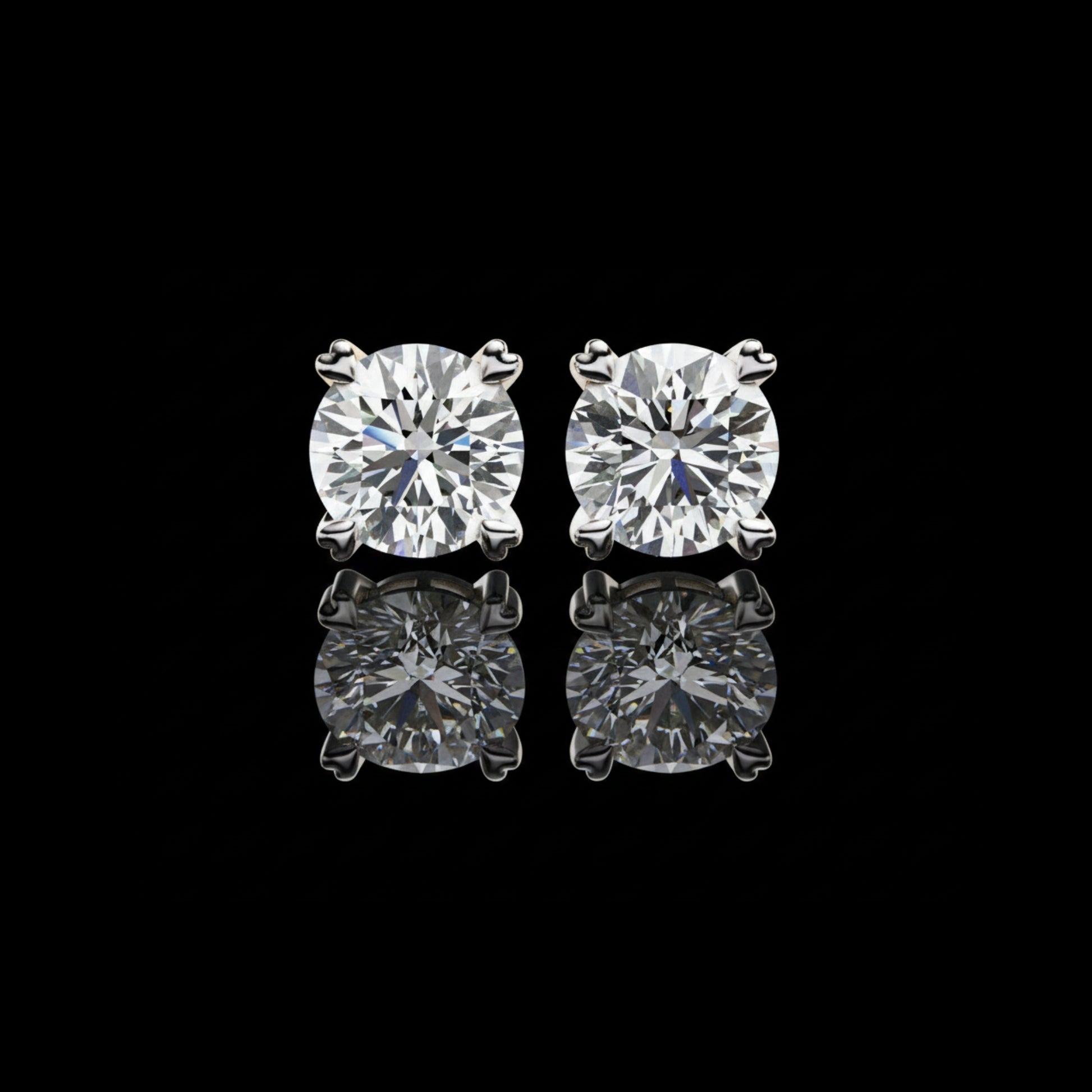 This earring features a pair of elegant round-cut diamond stud earrings set in sleek white gold prongs. The diamonds showcase brilliant sparkle and clarity, making these timeless earrings a perfect accessory for both everyday wear and special occasions. Their minimalist yet luxurious design highlights the natural beauty of the stones.