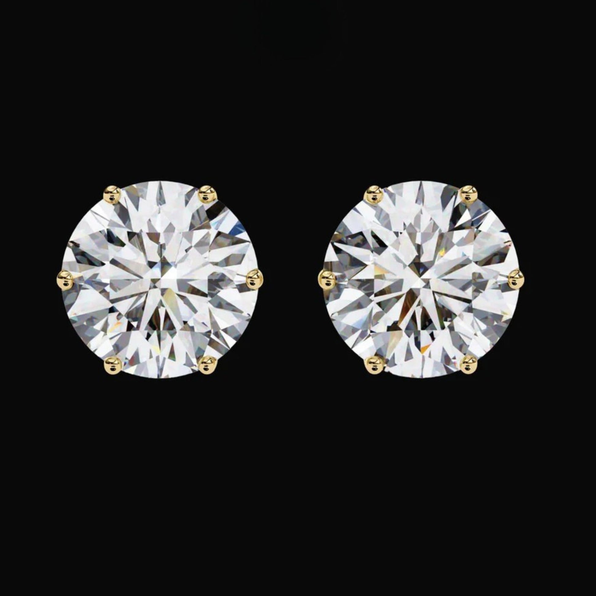 Introducing The Sentinel Studs, a unique take on the classic diamond earring. These feature two magnificent round brilliant-cut diamonds, prized for their superior light performance and dazzling fire. The stones are set using an exceptional eight-prong basket setting, which offers unparalleled security and creates a subtle, petal-like frame around the stone, enhancing its perceived size and brilliance.