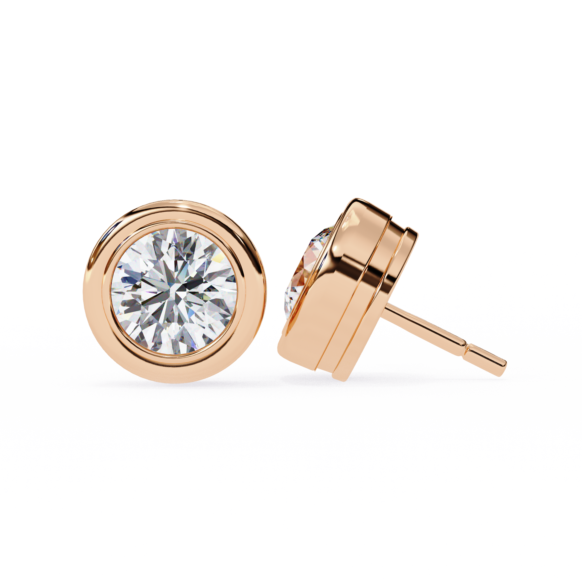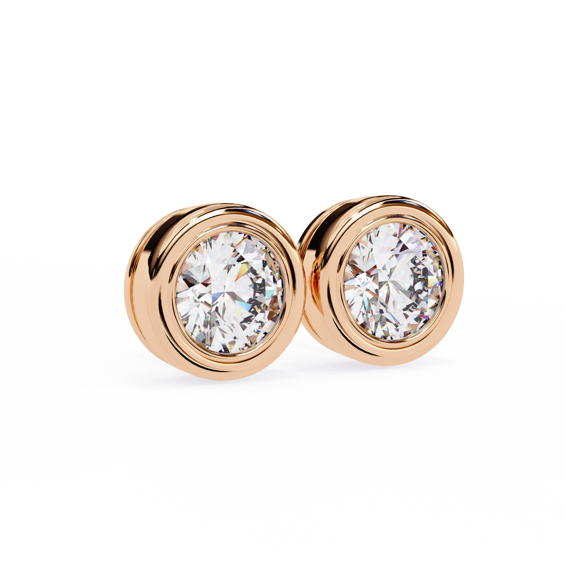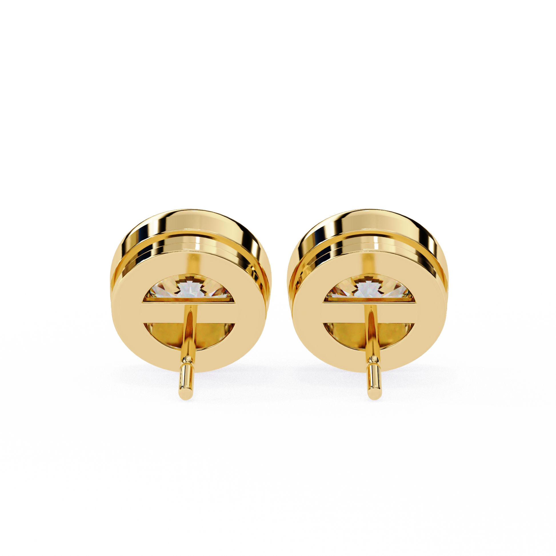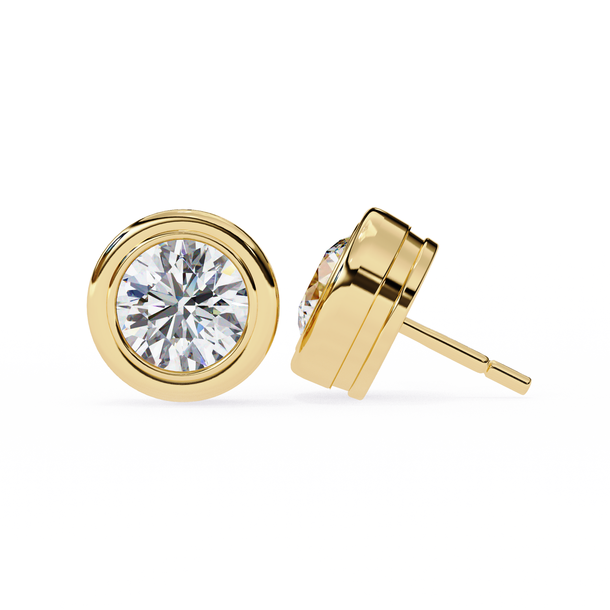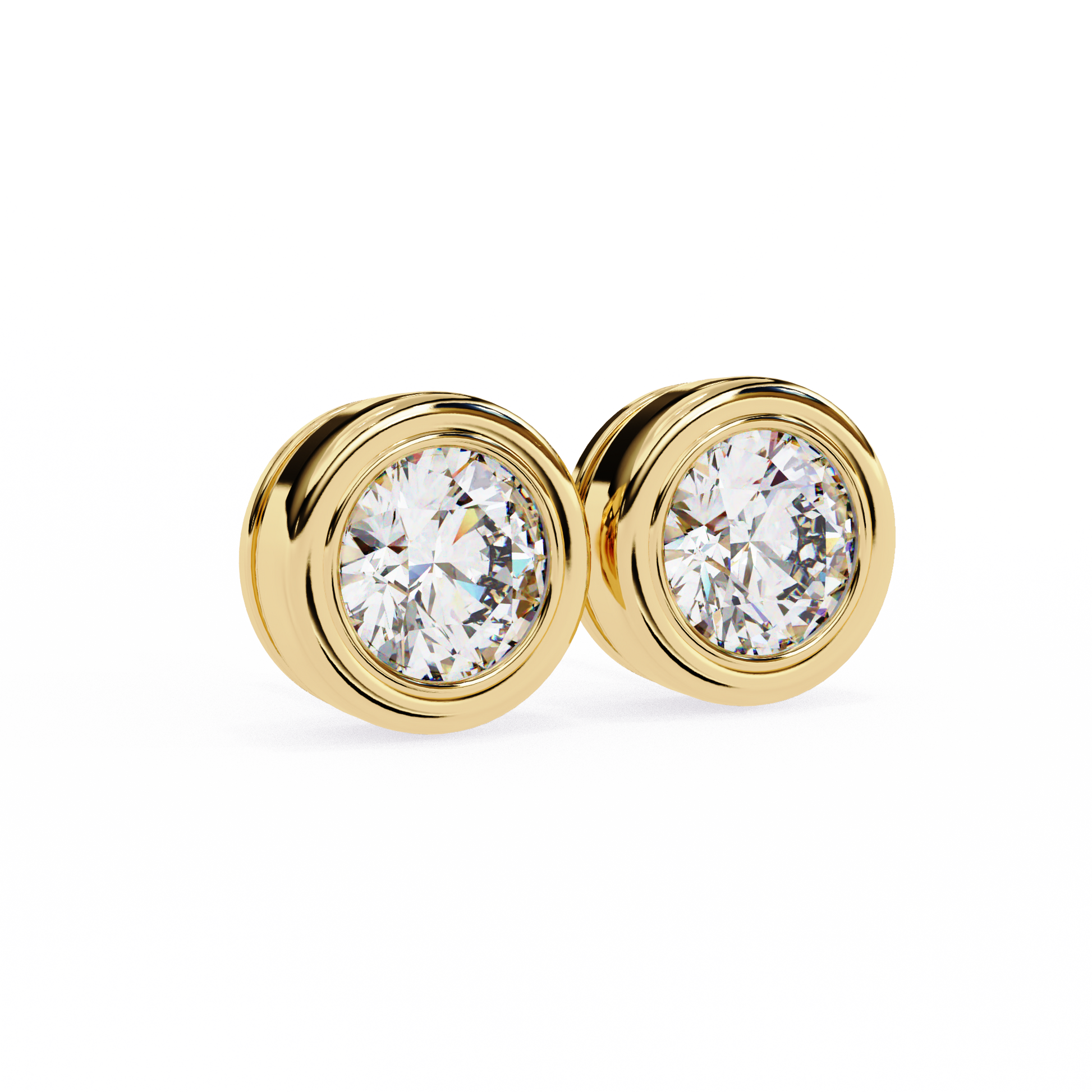 These elegant stud earrings feature brilliant round-cut stones set in smooth, polished gold bezel settings, creating a sleek and modern look with timeless appeal. The bezel design securely frames each sparkling stone, enhancing its radiance while offering a refined, minimalist aesthetic. Perfect for everyday wear or special occasions, these earrings combine sophistication, durability, and understated luxury to elevate any jewelry collection.