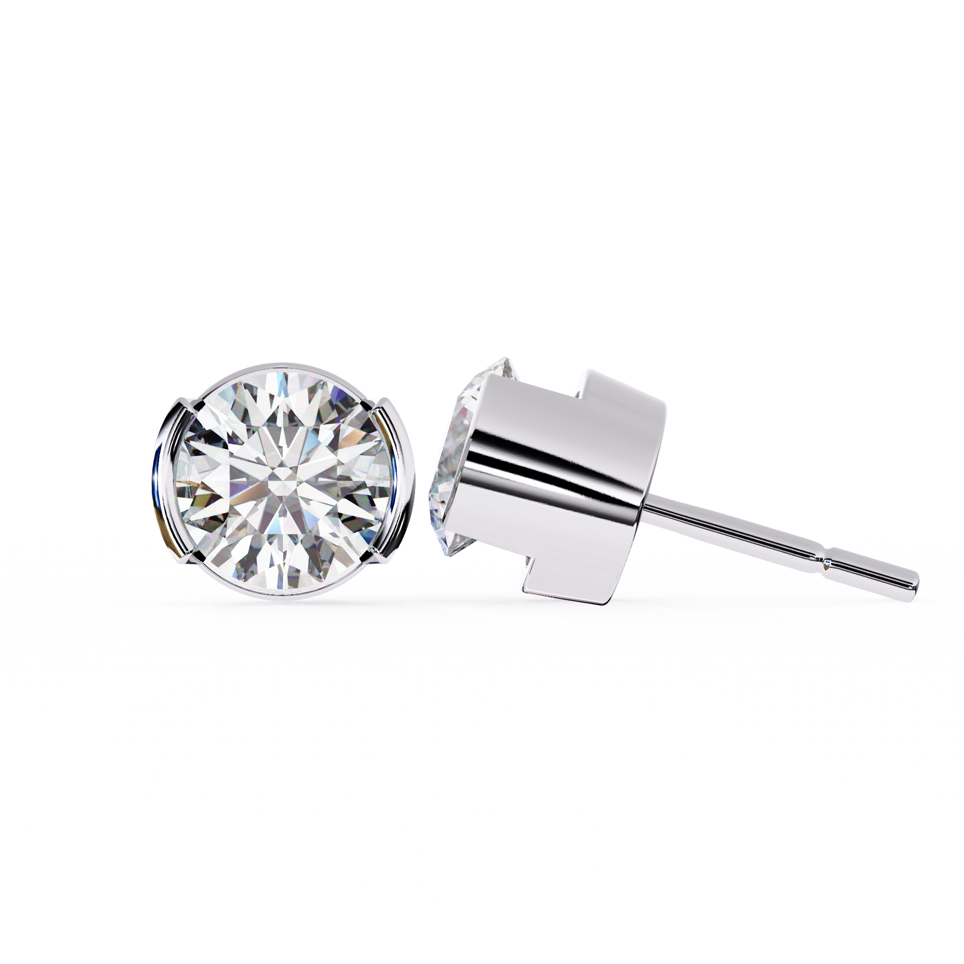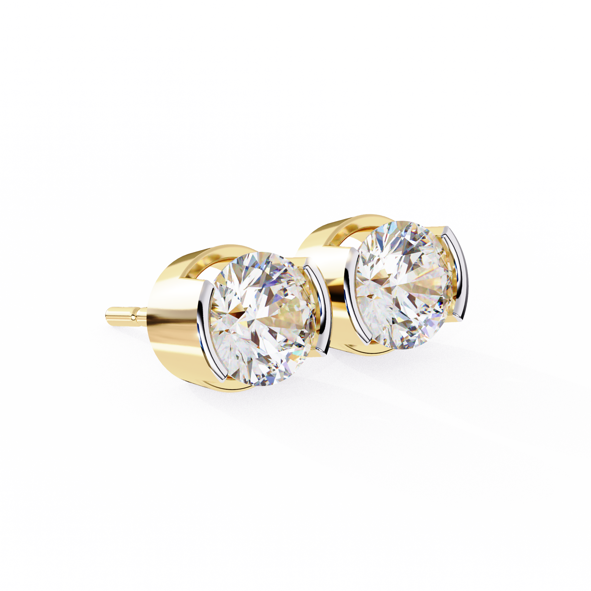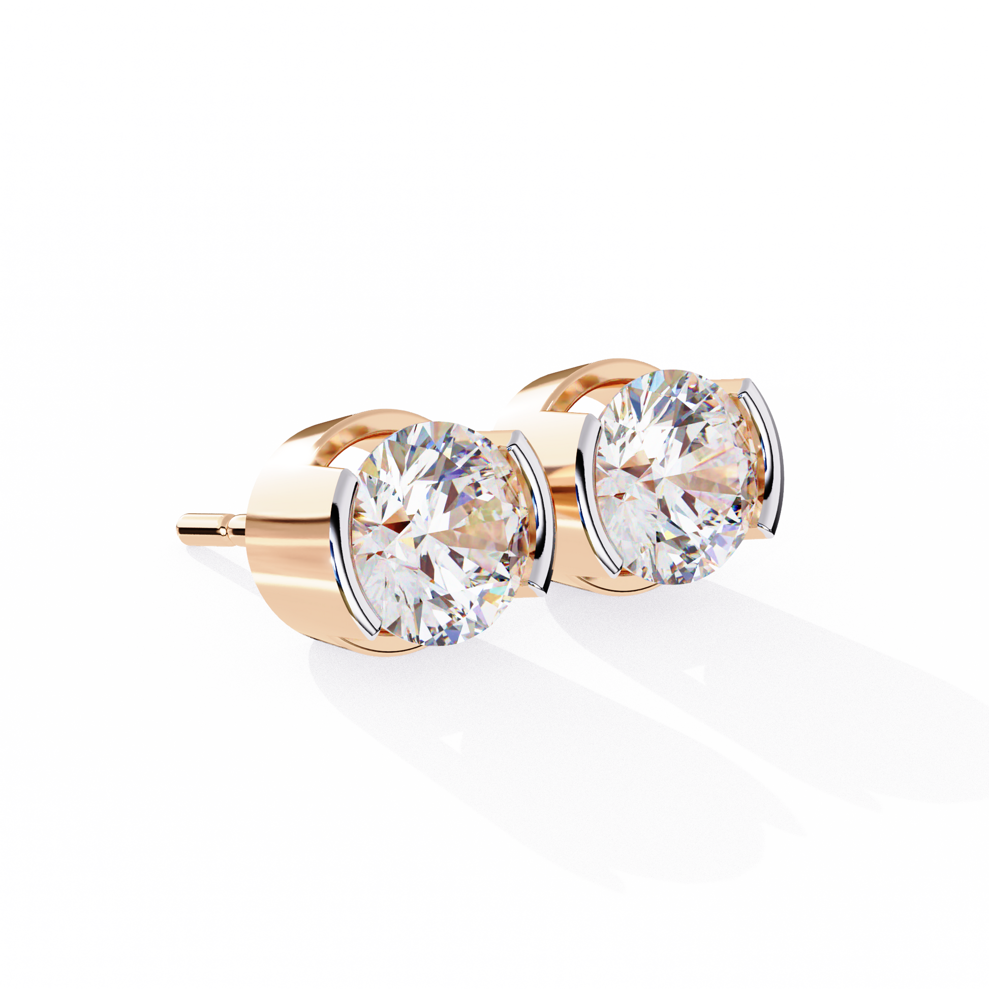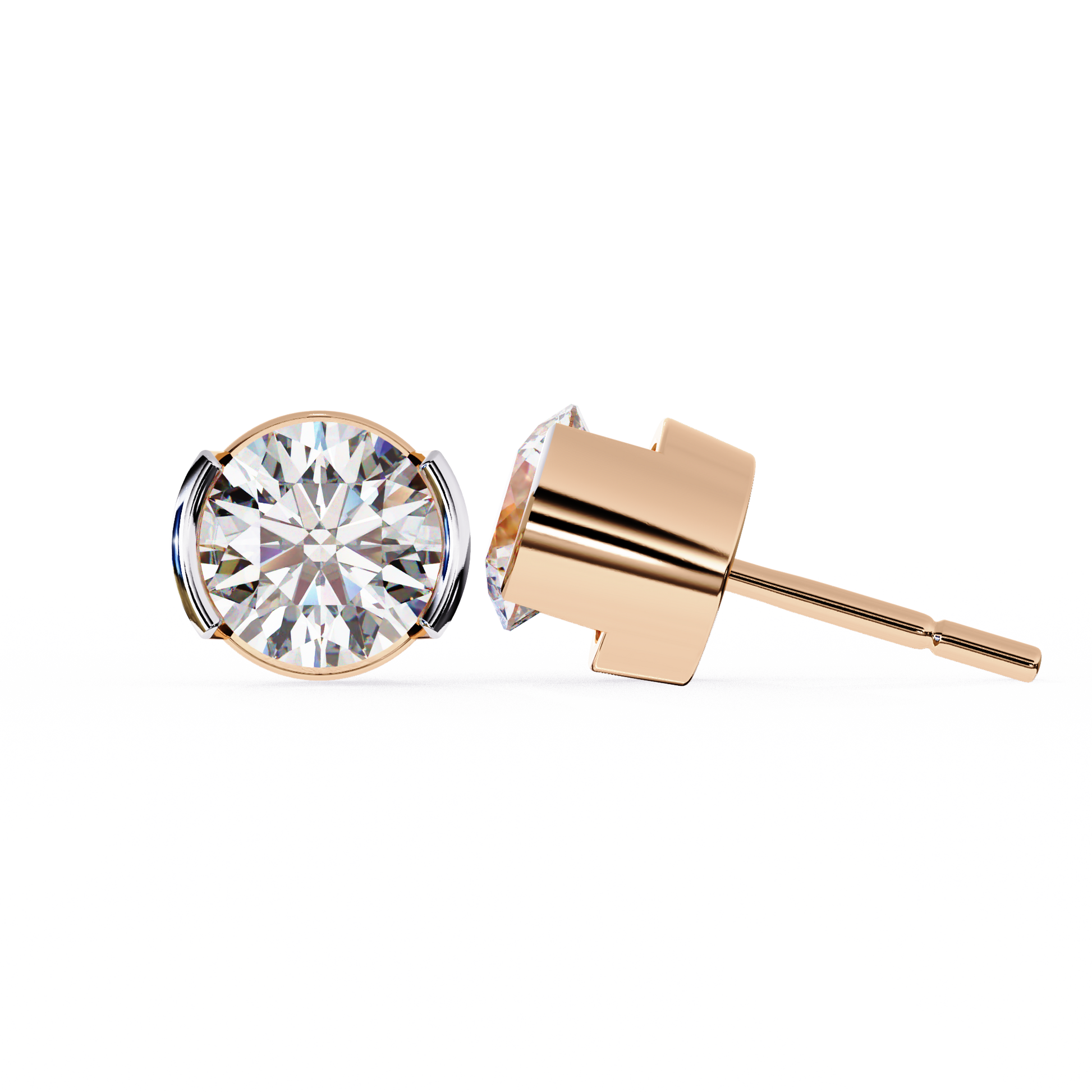 Experience the bold, contemporary elegance of The Bicolor Zenith Studs. These feature two brilliant round-cut diamonds, celebrated for their unmatched fire and sparkle. The diamonds are held in a modern half-bezel or partial tension-style setting, showcasing an artistic fusion of metals: a warm base combined with accents on the sides. This innovative design offers excellent security while maximizing the diamond's visibility and creating a striking visual contrast.