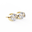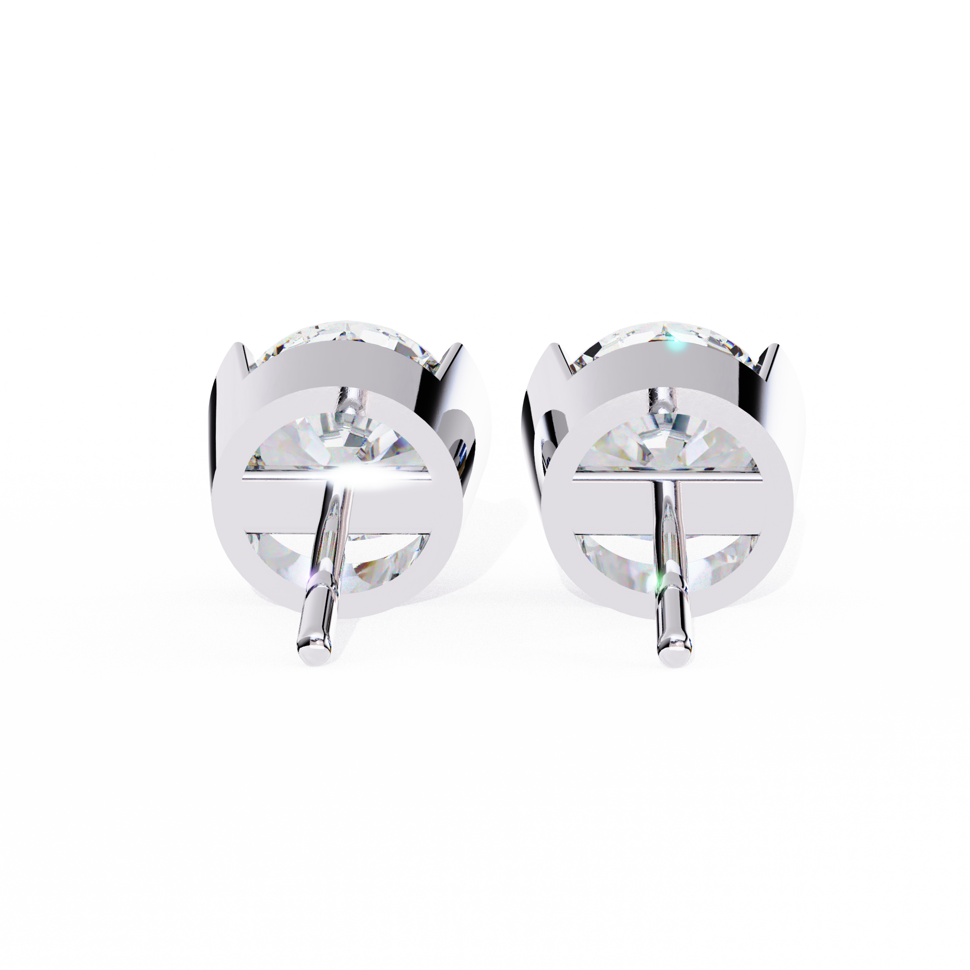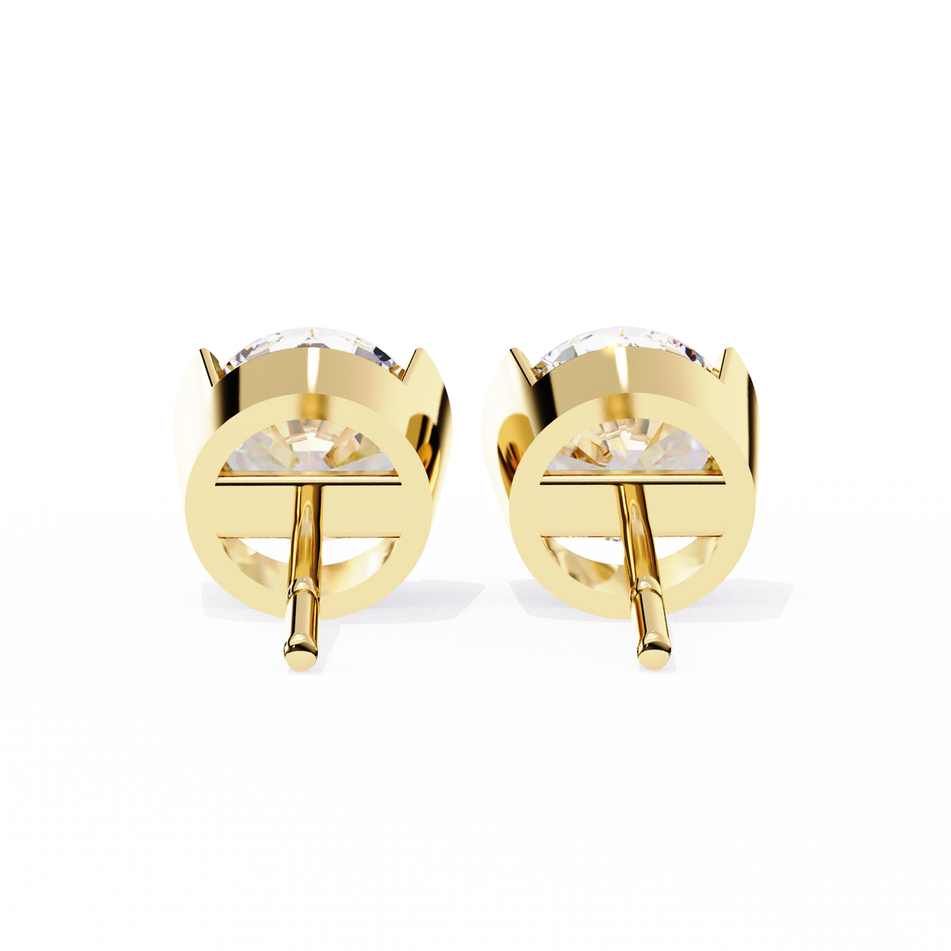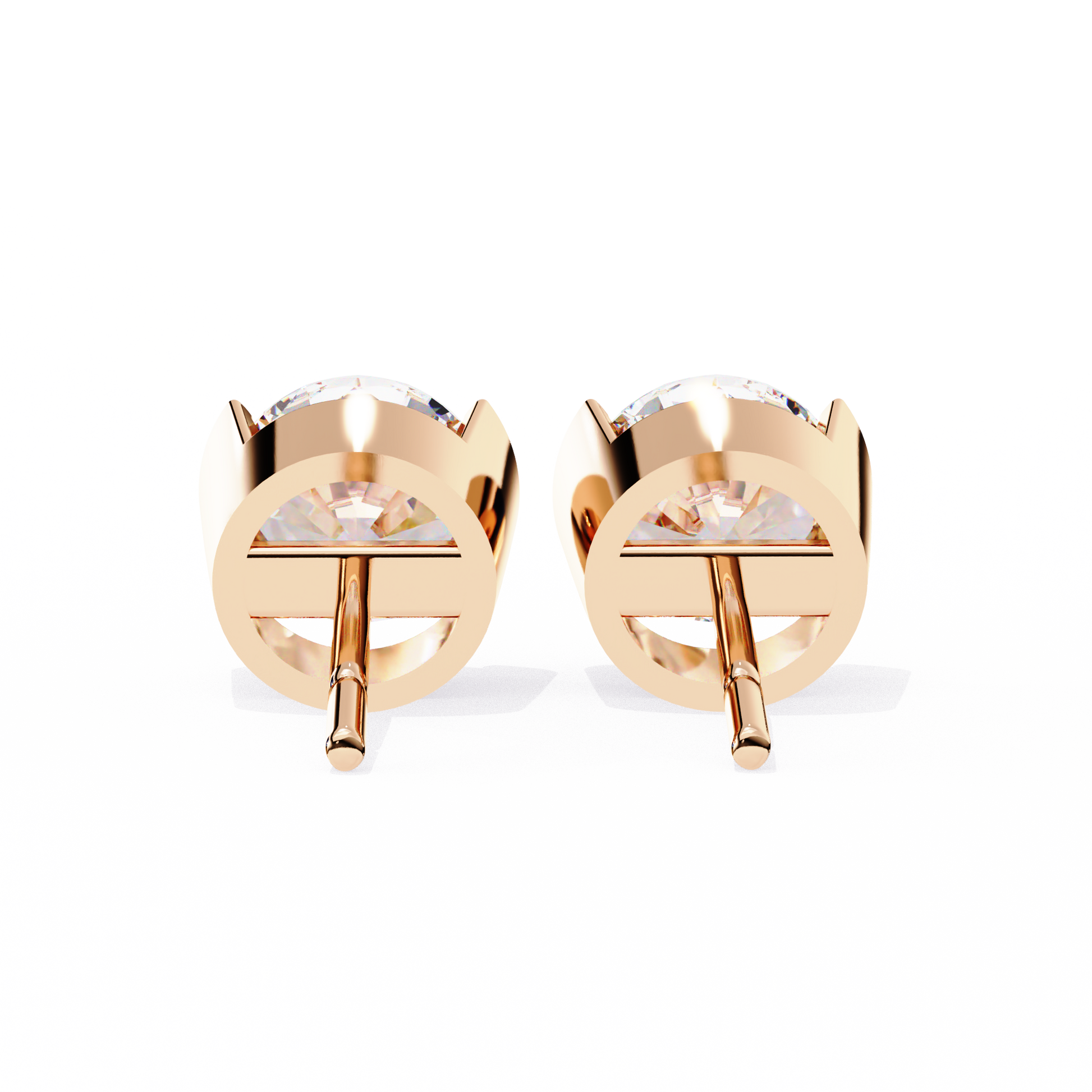 Experience the bold, contemporary elegance of The Bicolor Zenith Studs. These feature two brilliant round-cut diamonds, celebrated for their unmatched fire and sparkle. The diamonds are held in a modern half-bezel or partial tension-style setting, showcasing an artistic fusion of metals: a warm base combined with accents on the sides. This innovative design offers excellent security while maximizing the diamond's visibility and creating a striking visual contrast.