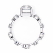 This ring features a striking stunning radiant cut center diamond set in a warm gold band, flanked by two intricately cut pear and round side diamonds that add symmetry and brilliance. Its clean geometric lines contrast beautifully with the rich gold setting, creating a luxurious, modern-classic aesthetic. The mirror-like black background highlights the exceptional clarity and fire of the stones, giving the piece an elegant, high-end presentation.