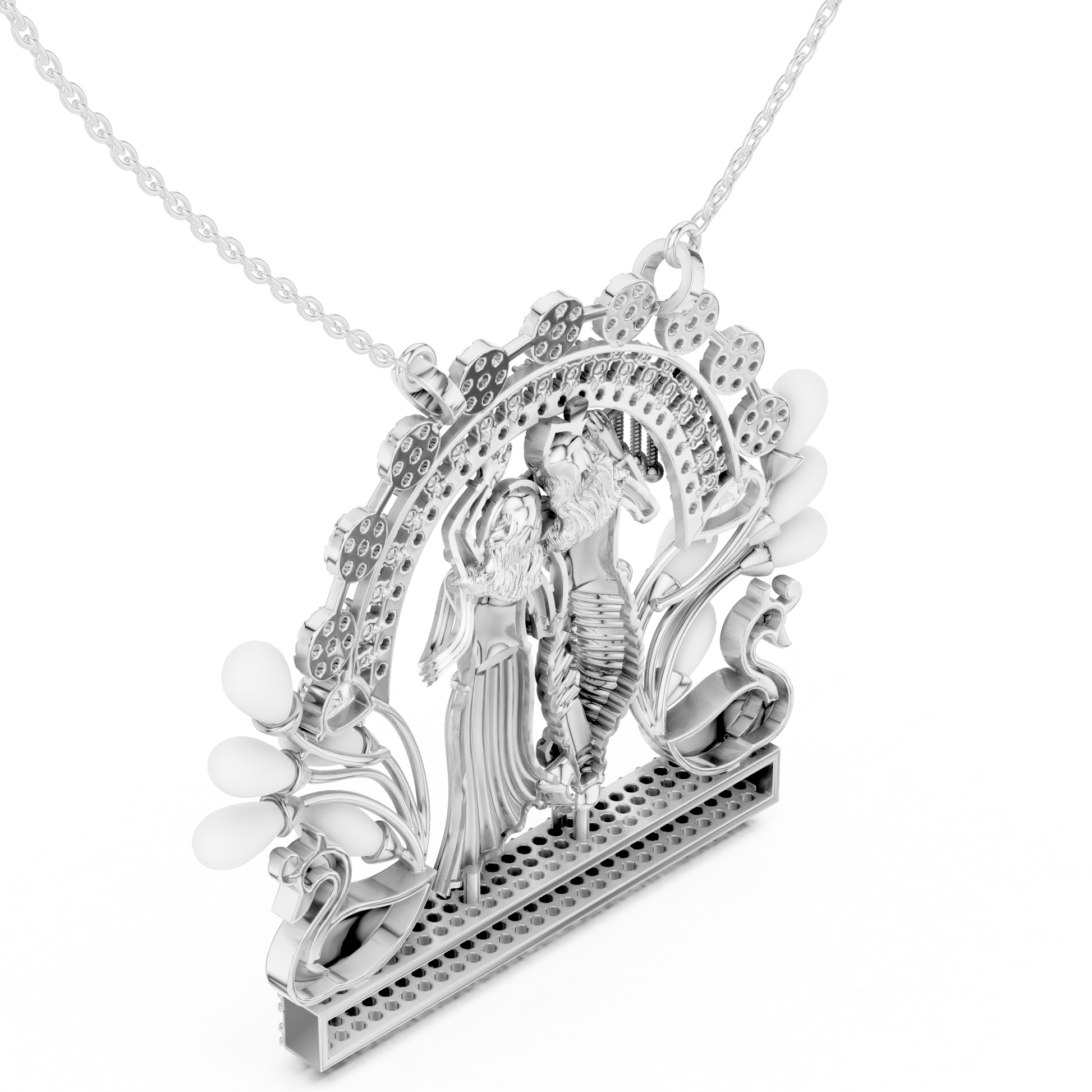 2.84 TCW Shiny Plated Radha Krishna Pendant with Moissanite Diamond Peacock Motif Luxury Spiritual Jewelry