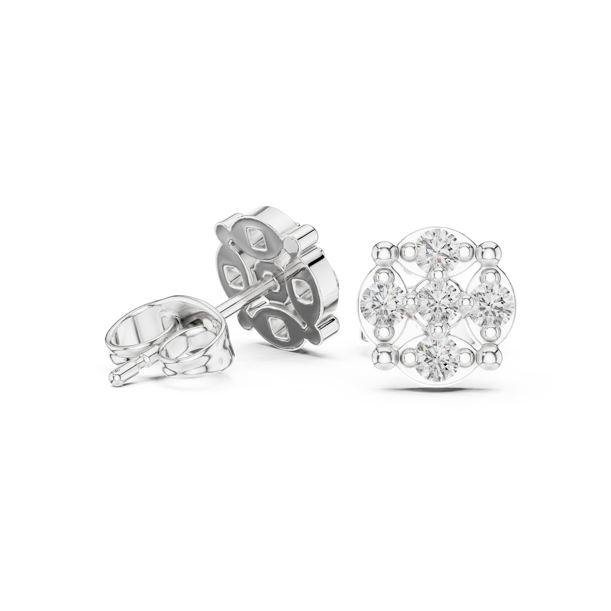 Refined and contemporary, these geometric diamond cluster stud earrings are beautifully crafted in high for a look that blends modern structure with timeless elegance. Each stud showcases a balanced arrangement of round brilliant-cut diamonds, forming a subtle floral-inspired pattern framed by smooth gold contours for added depth and dimension.Designed to deliver maximum sparkle in a compact silhouette, these earrings are perfect for everyday luxury, office wear, or understated evening styling.
