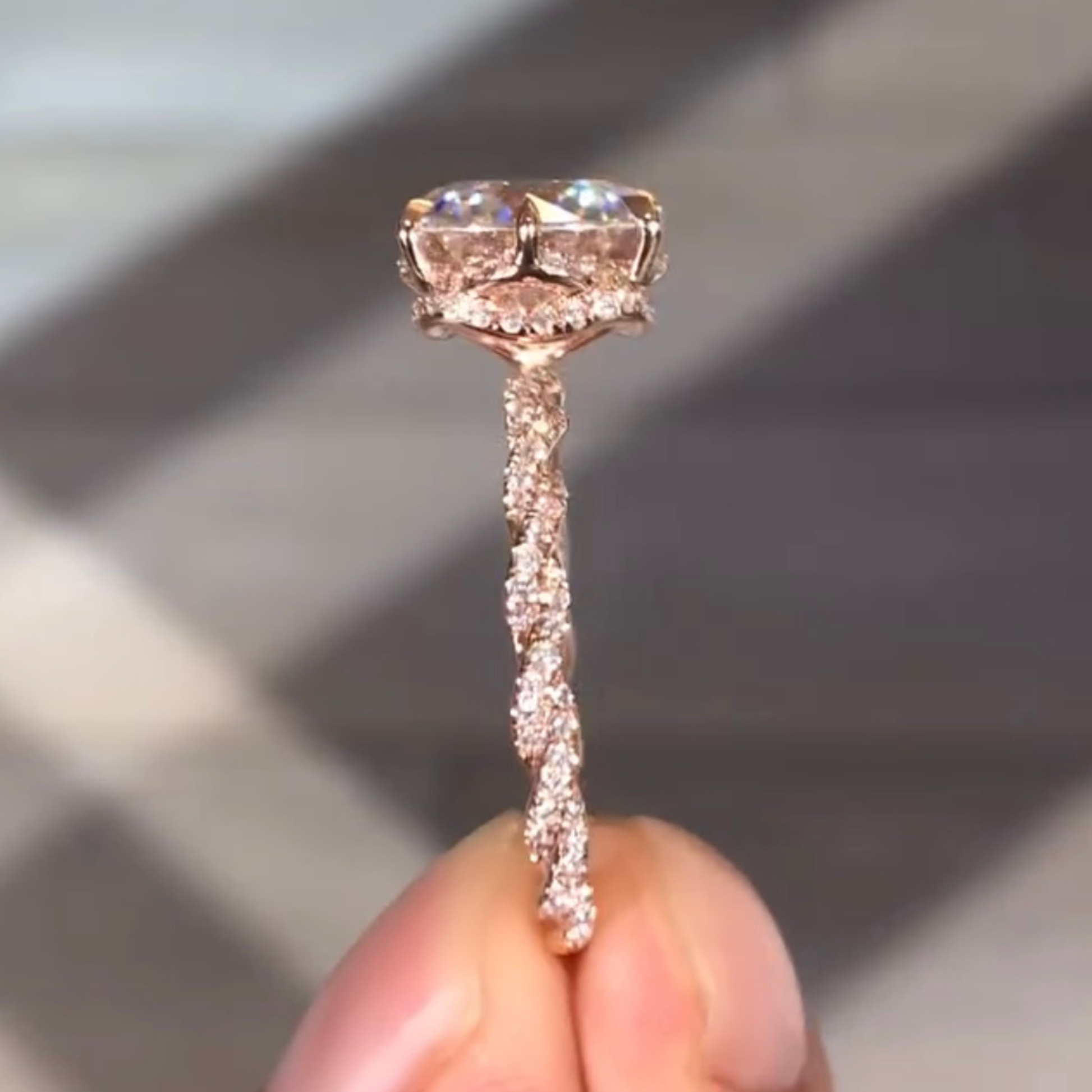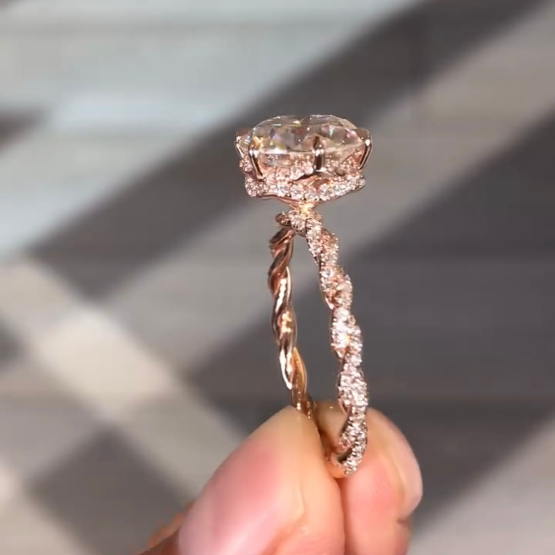 This stunning round diamond engagement ring features a brilliant center stone set in an elevated crown that maximizes light and sparkle. The distinctive twisted band design blends a polished gold strand with a pave set diamond strand, creating a graceful contrast of texture and brilliance. Expertly crafted for elegance and durability, this ring offers a refined balance of modern artistry and timeless romance. Perfect for engagements, anniversaries, or milestone moments, it is designed to captivate from every angle and remain beautiful for a lifetime.