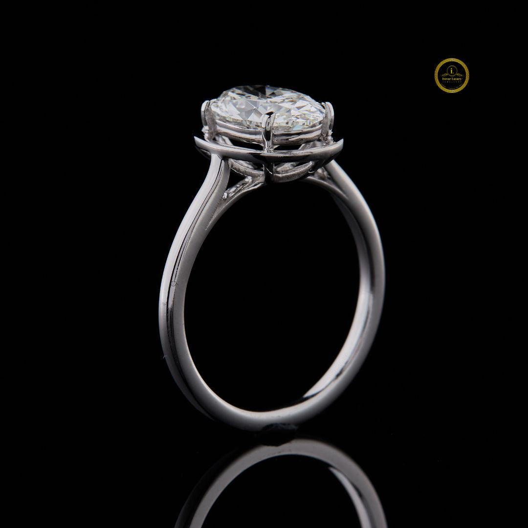 2.00 TCW Elegant Oval Cut Moissanite Diamond Solitaire Ring in Polished White Gold with bezel set Luxury Fine Jewelry Engagement Piece