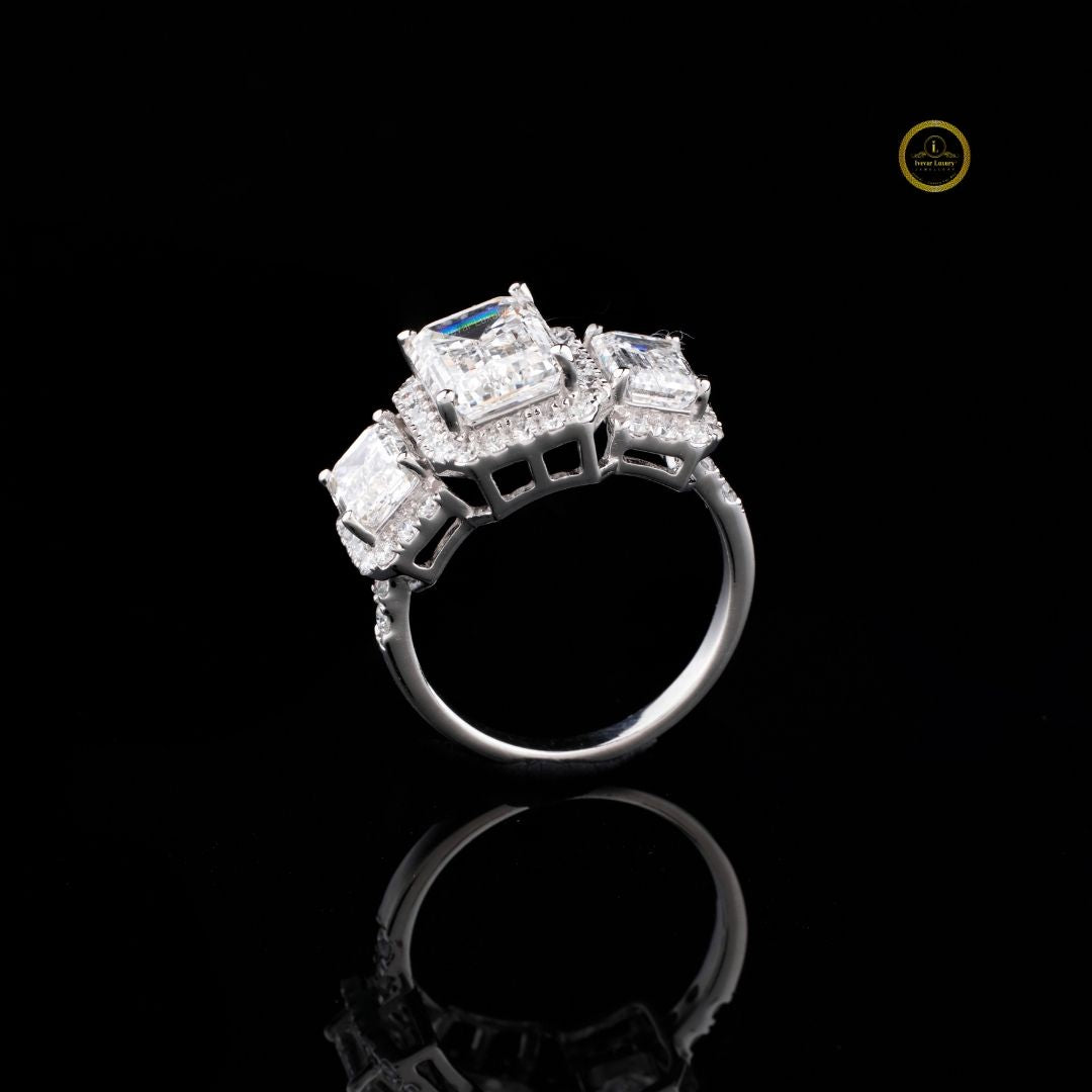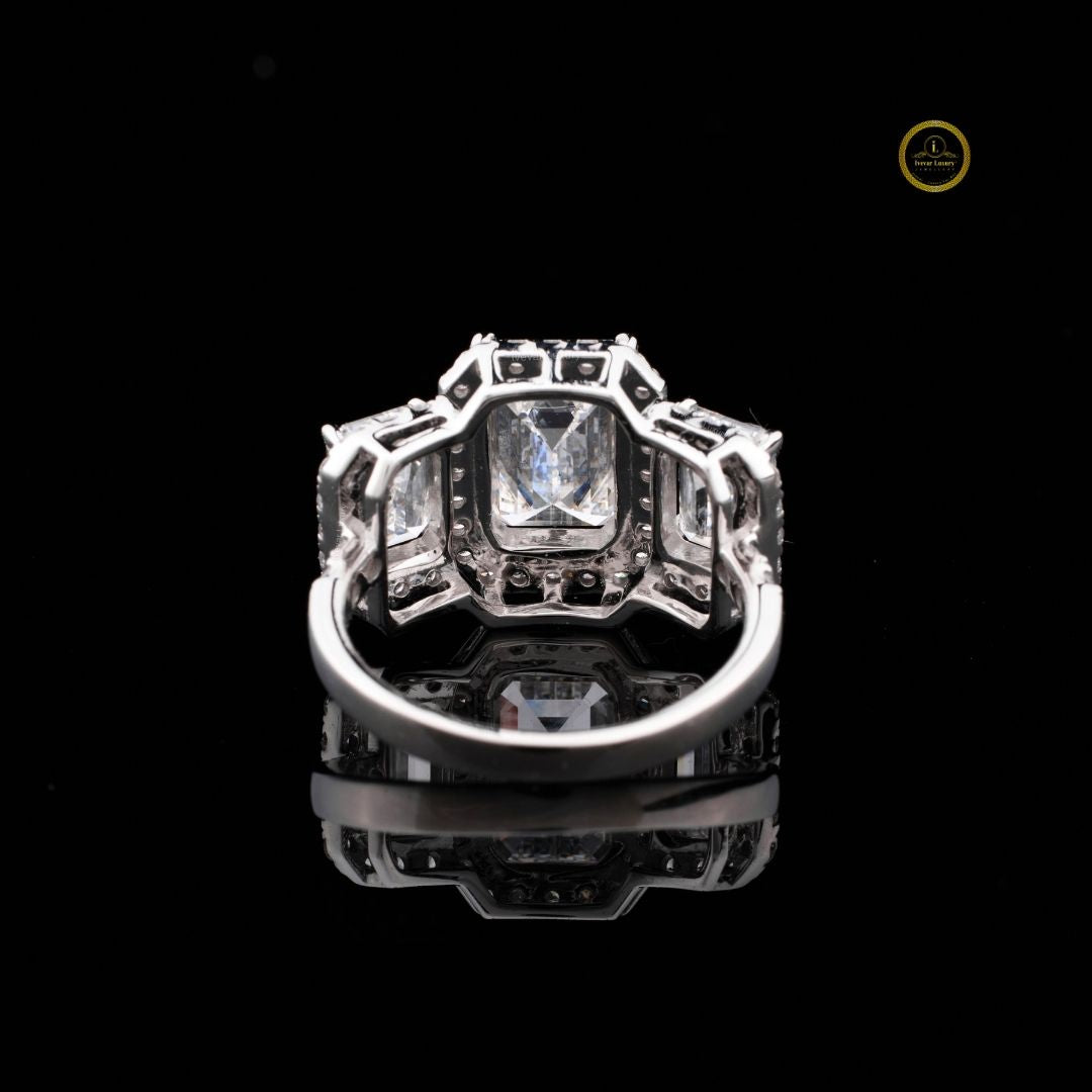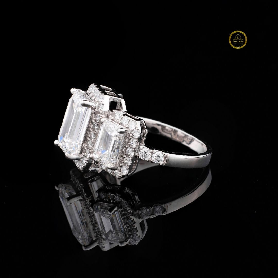 3.00 CT Classic Handcrafted Gold Emerald Cut Moissanite Diamond Three Stone Ring
