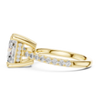 Crafted with exceptional precision, this cushion-cut diamond engagement ring by Ivevar Luxury radiates timeless brilliance and refined elegance. The design features a four-prong cushion solitaire, elevated by a hidden diamond halo that adds sparkle beneath the center stone. A pavé-set diamond band in polished gold enhances its graceful profile while maintaining a delicate silhouette.