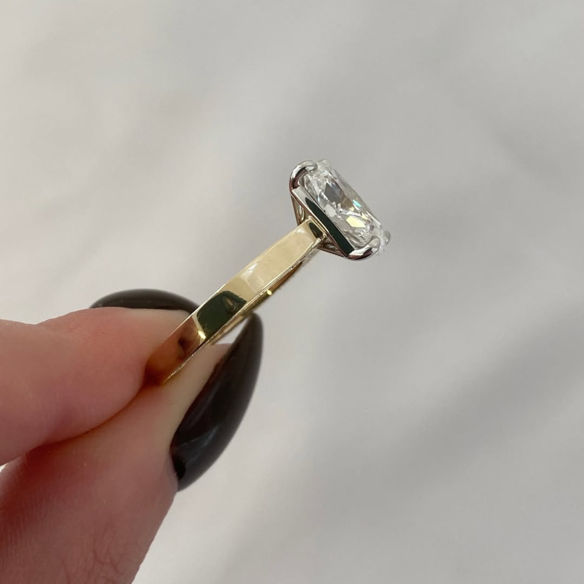 This beautifully crafted ring features a radiant cushion-cut diamond set in a band, secured by a multi-prong setting that enhances both sparkle and stability. The softly rounded square shape delivers a perfect balance of vintage charm and modern brilliance, creating depth and fire from every angle.Designed to stand out without being minimal, this ring offers a bold yet graceful presence, ideal for those who appreciate classic luxury with contemporary refinement. Whether worn as a statement engagement ring or a cherished fine-jewelry piece, it embodies timeless elegance, confidence, and lasting beauty.