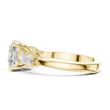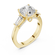 Elegant, radiant, and beautifully balanced—this cushion cut three-stone engagement ring captures brilliance from every angle. The luminous cushion-shaped center diamond is framed by tapered baguette side stones, creating a refined silhouette that blends vintage charm with modern sophistication. Set in rich yellow gold, the design emphasizes clean lines, soft sparkle, and a silhouette that feels both timeless and luxurious. A perfect symbol of past, present, and future love.