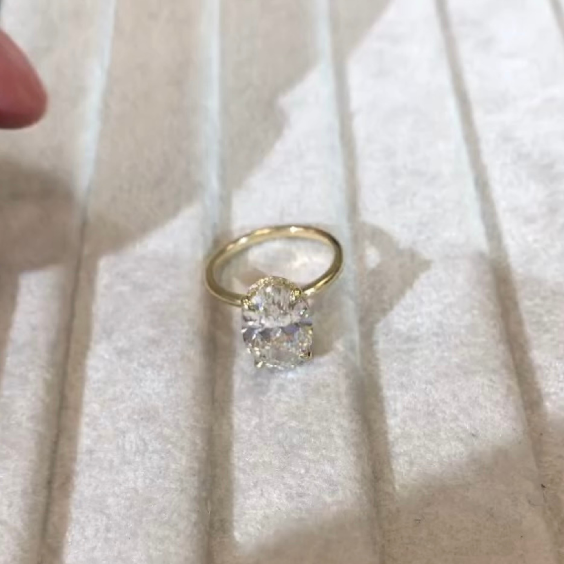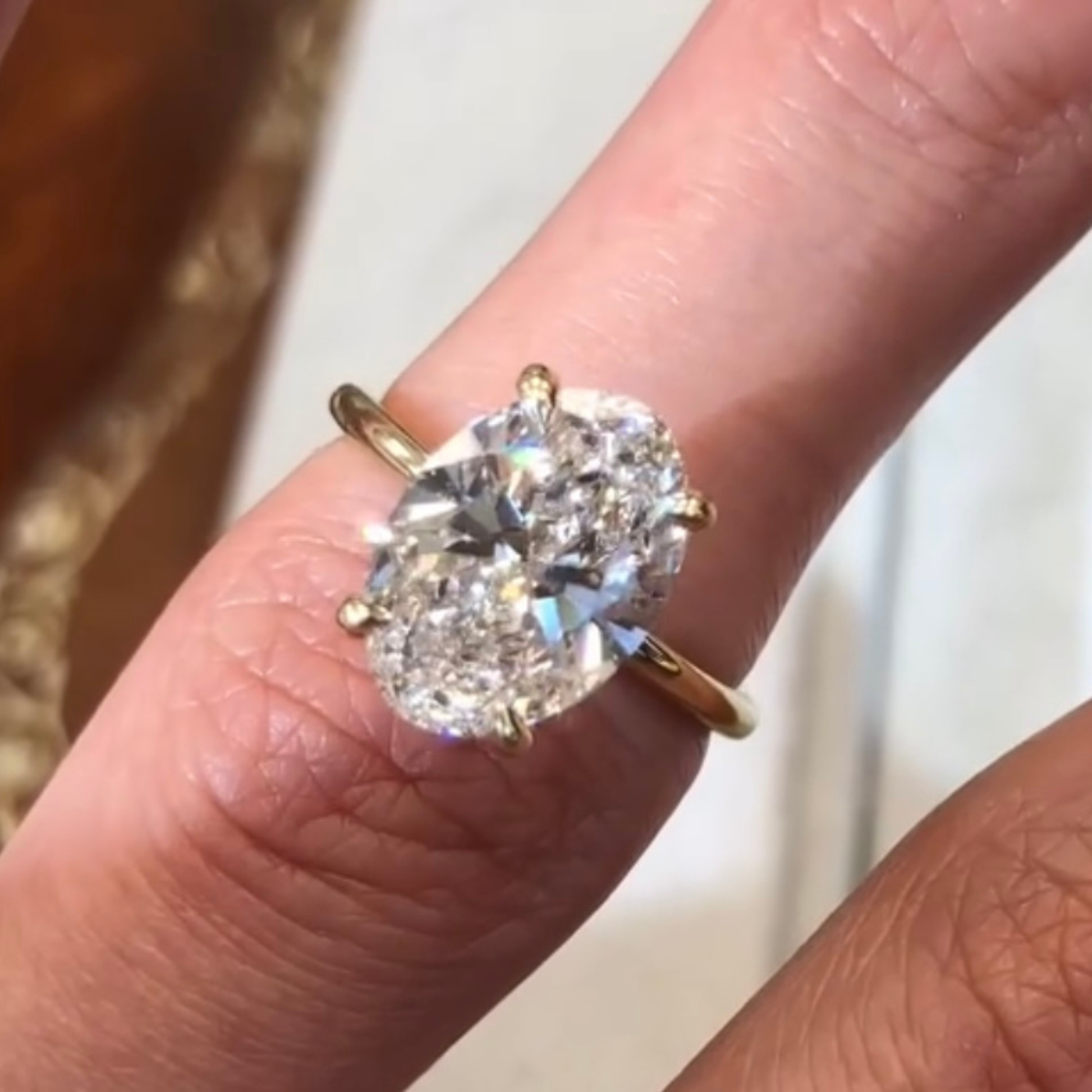 This timeless solitaire ring features a luminous oval-cut diamond, prized for its graceful shape and exceptional brilliance. Secured by elegant gold prongs and set on a slim, polished band, the design highlights the diamond’s fire while adding a touch of warmth and classic charm. The oval silhouette elongates the look of the finger, making this ring both flattering and refined. Perfect for an engagement or a meaningful milestone, this piece blends enduring elegance with understated luxury.