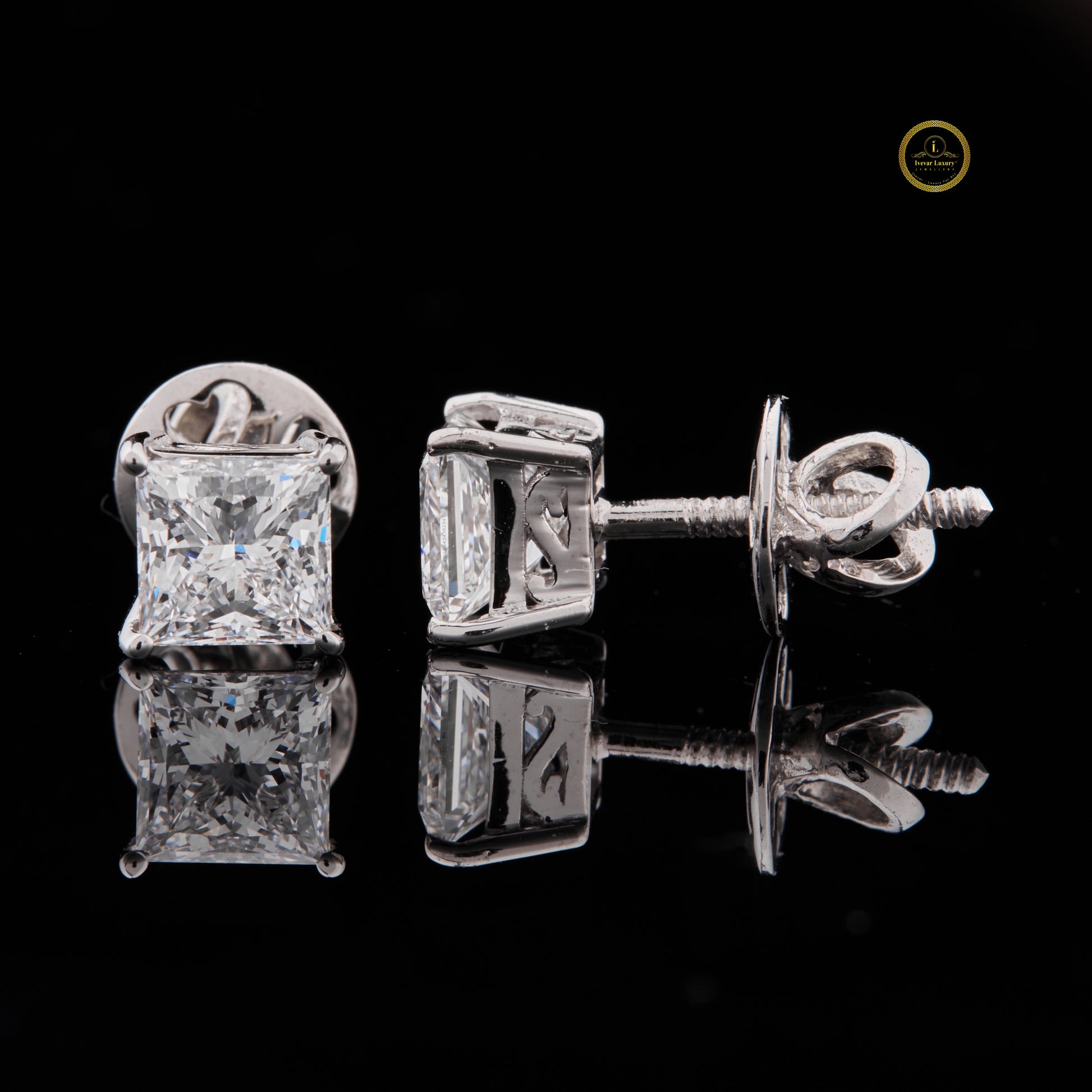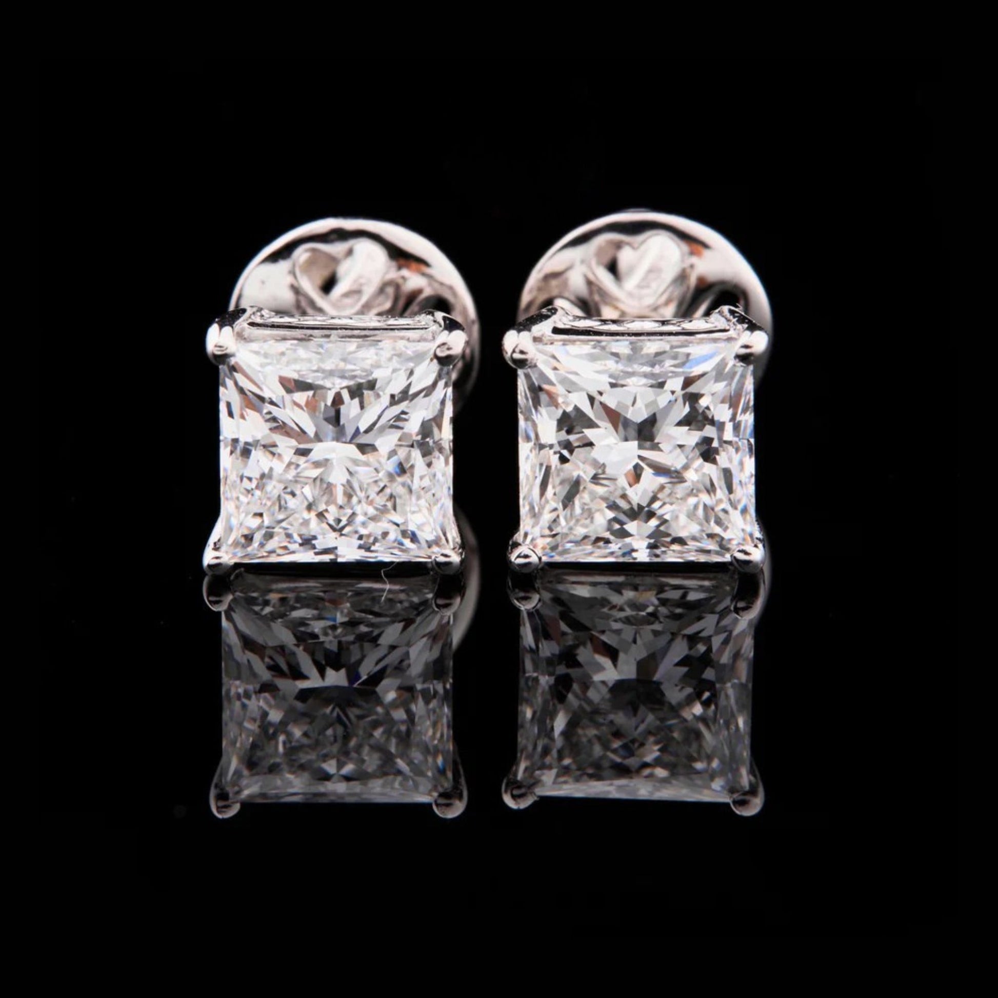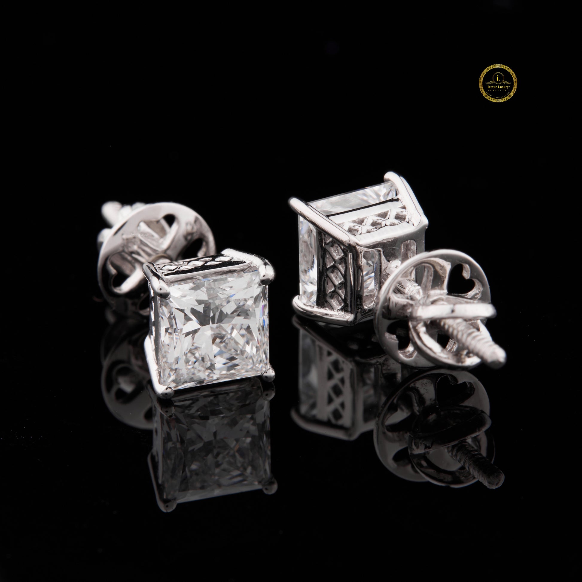 3.00 TCW Premium Princess Cut Moissanite Diamond Stud Earrings in Polished White Gold Brilliant Solitaire Design