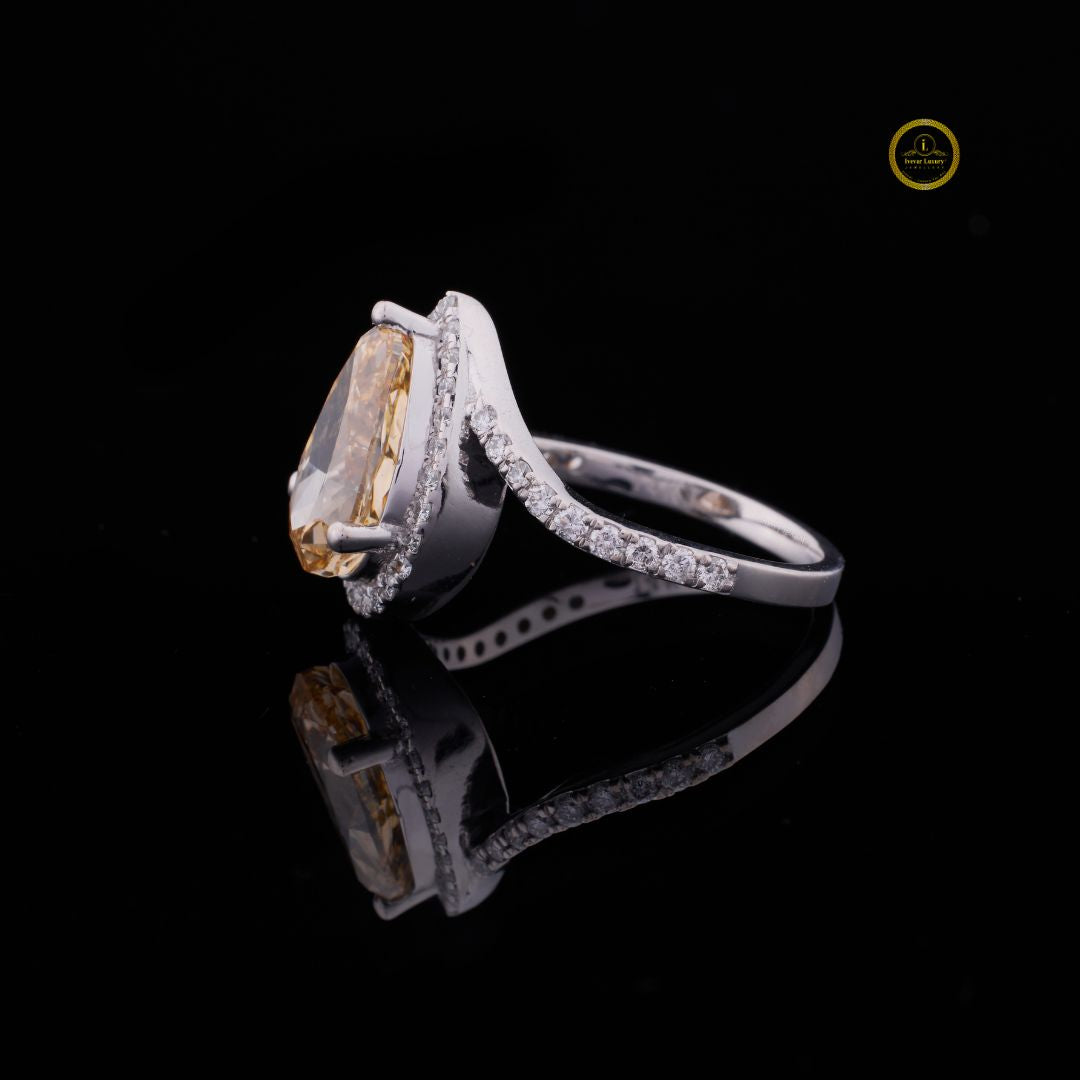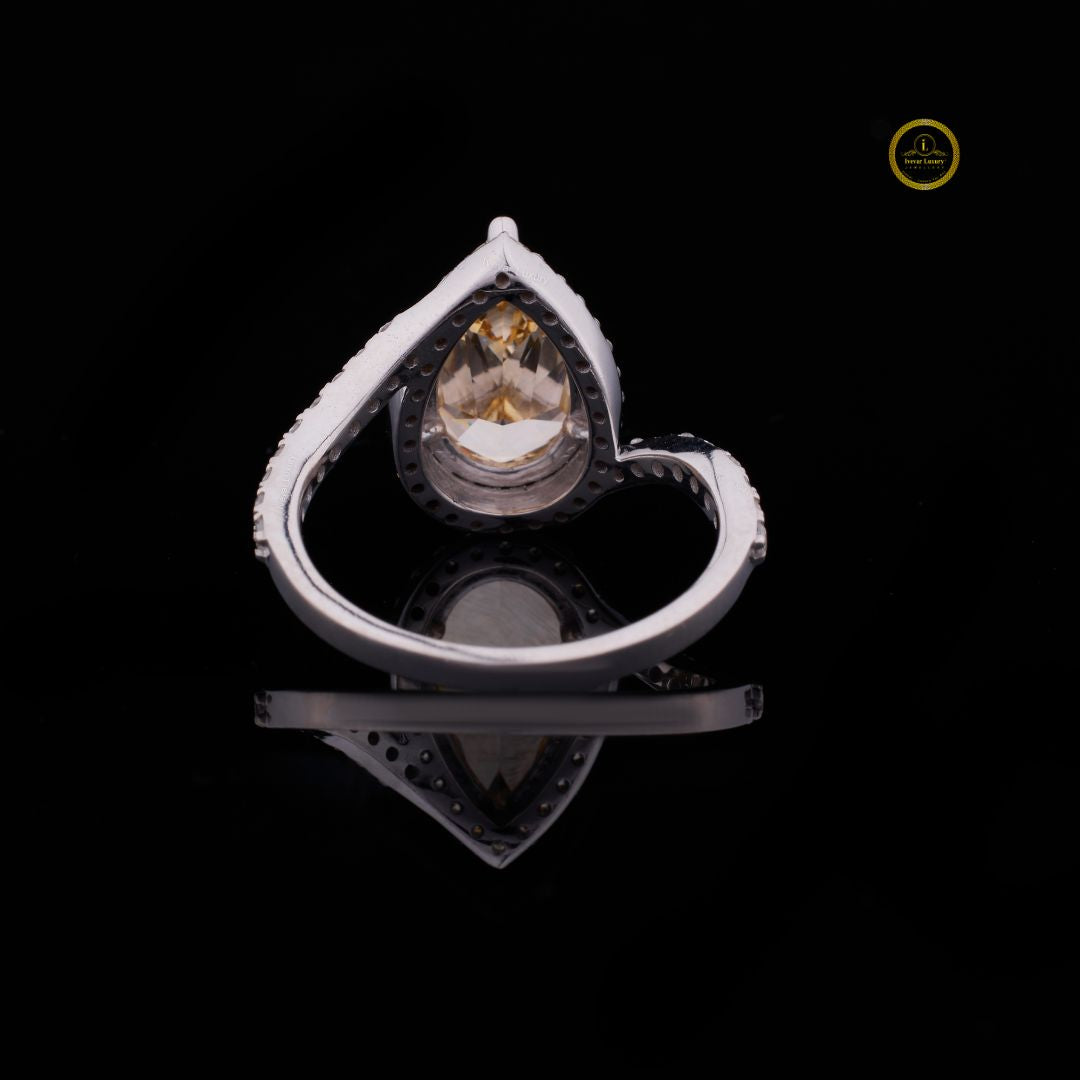 3.02 CT Luxurious Fancy Vivid Yellow Pear Cut Moissanite Diamond Ring in Silver By Ivevar
