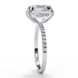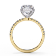 A stunning Radiant-cut diamond graces the center of this luxurious engagement ring, radiating brilliance with its sharp, geometric edges. The band is adorned with pave diamonds, adding extra sparkle and elegance. Set in gold with platinum prongs, this ring offers a harmonious blend of modern style and timeless sophistication from Ivevar Luxury.