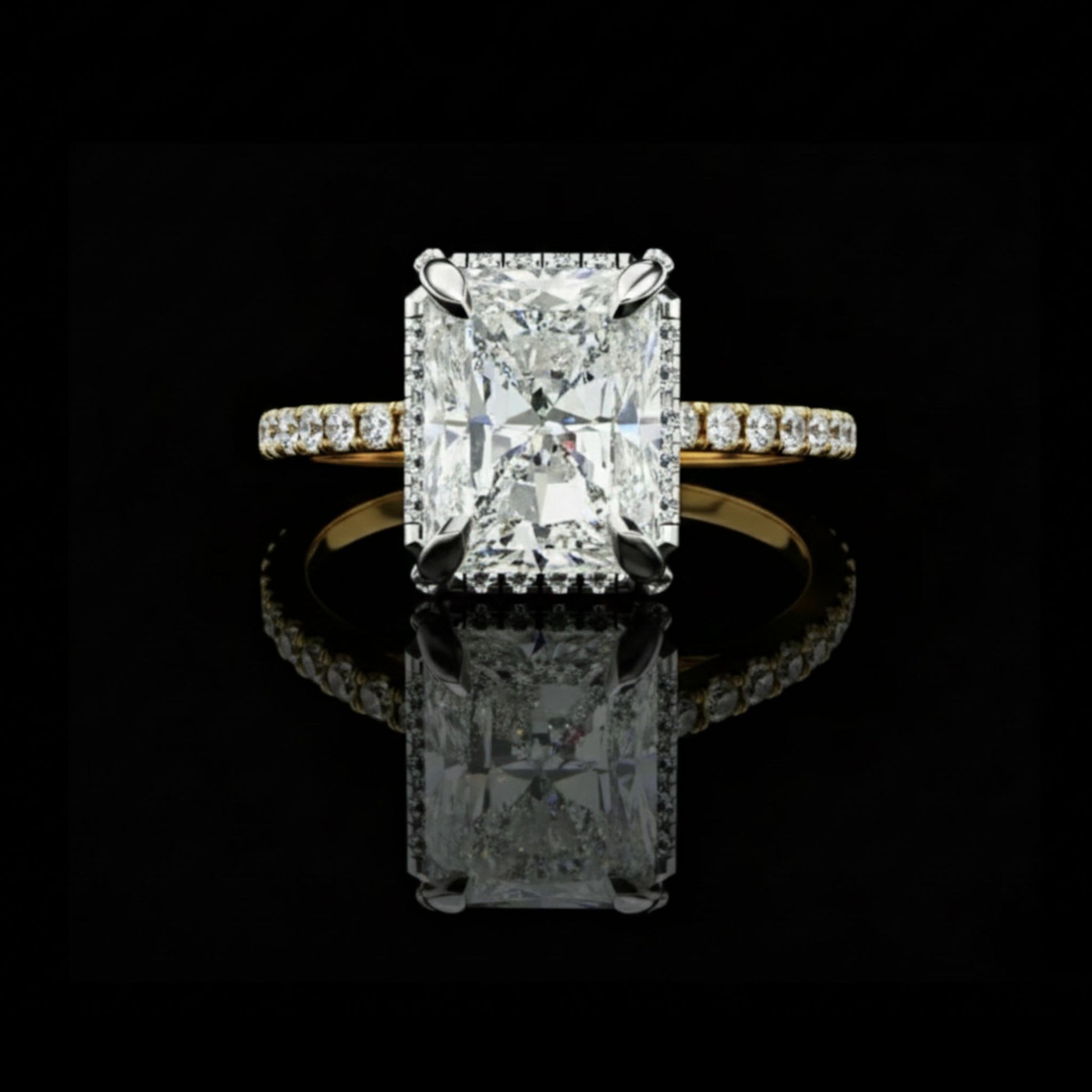 3.03 CT A Symphony of Light Radiant Moissanite Diamond Centerpiece with a Pave Set Gold Band