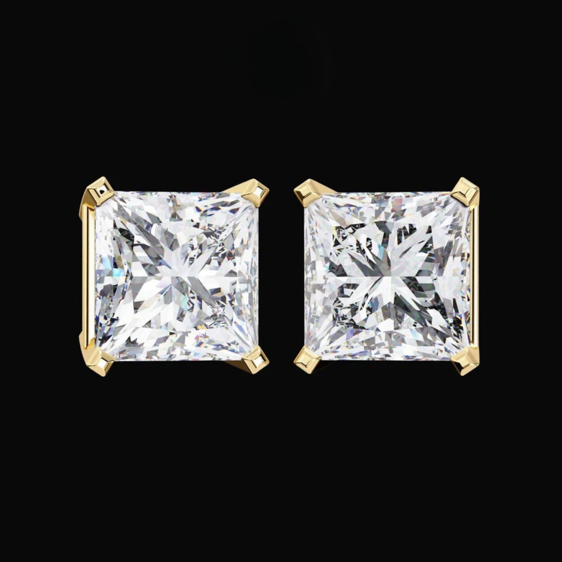 Showcasing sharp geometry and modern luxury, these Princess-Cut Diamond Stud Earrings are a contemporary classic. Each earring features a brilliant, square-cut diamond known for its exceptional, mirror-like faceting and high brilliance. The diamonds are held securely by streamlined V-prongs positioned at the corners, a setting style that protects the sharp points of the princess cut while offering a clean, sophisticated, and polished look.