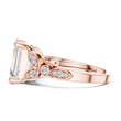 The Imperial Aura Diamond Ring features a striking emerald-cut center stone set in rich gold, framed by intricate sculpted shoulders adorned with sparkling accent diamonds. Its architectural design blends vintage inspiration with modern refinement, creating a bold yet elegant presence. Perfect as an engagement ring or heirloom statement piece, this ring delivers exceptional brilliance, depth, and luxurious character from every angle.