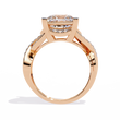 This exquisite ring showcases a stunning princess-cut center stone set in an elegant gold band. The design features a dazzling halo of round brilliant diamonds that frame the centerpiece, enhancing its brilliance and fire. A sophisticated split-shank band—adorned with additional pave diamonds—adds depth, dimension, and luxurious sparkle from every angle. Perfect for engagements, anniversaries, or special occasions, this piece blends timeless elegance with modern artistry, making it a standout statement of refined luxury.